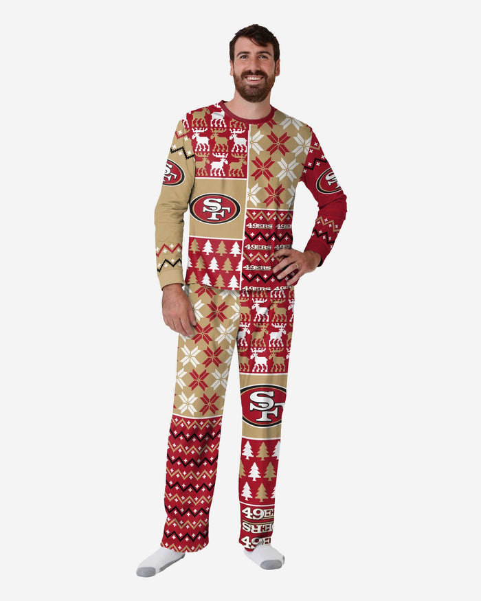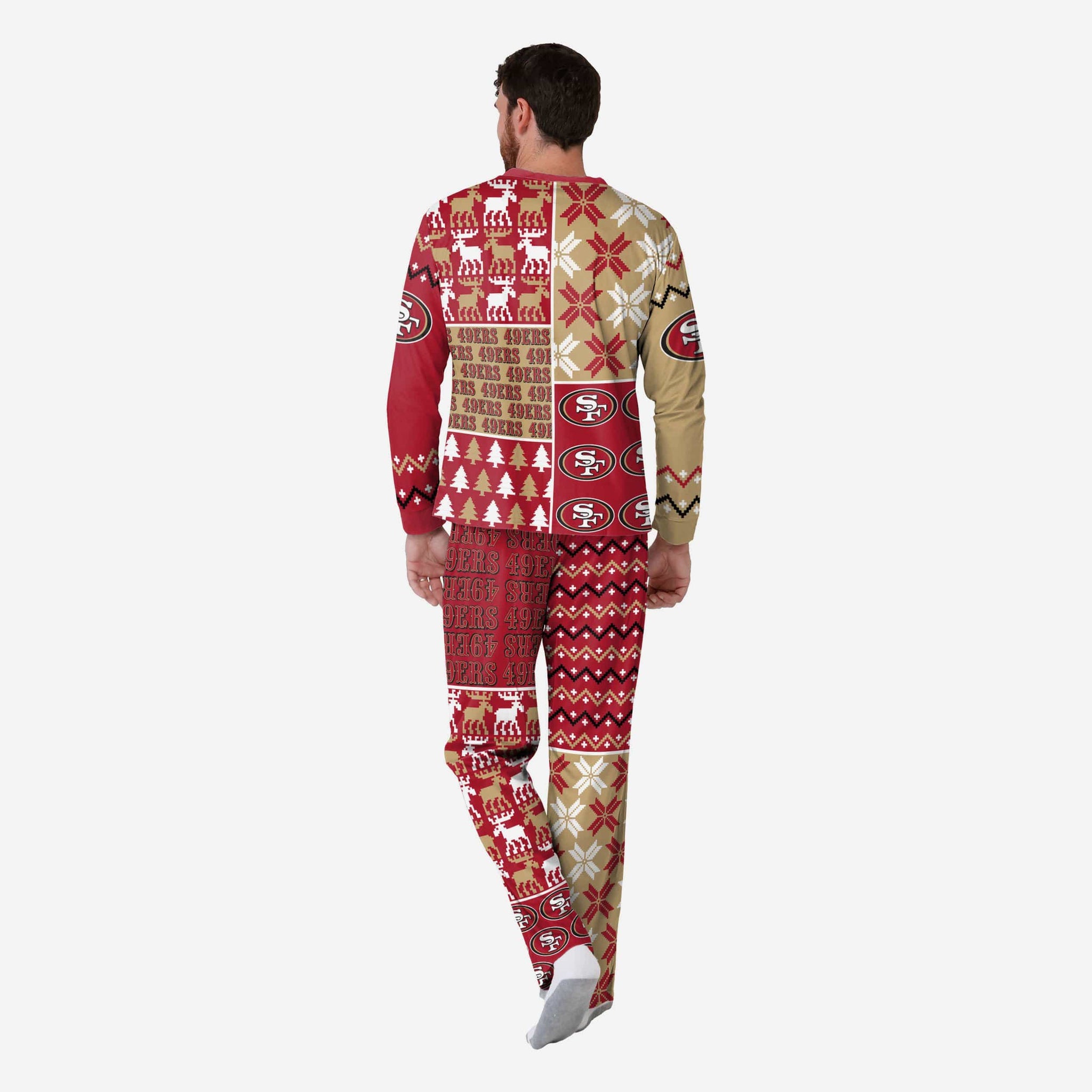 Get some matching family pajamas and dress to impress this holiday season! You won't want to miss these men's team pajamas! These men's PJ's are comfortable and show off your team spirit in the form of some sweet men's jammies. Introducing the San Francisco 49ers Men's Busy Block Family Holiday Pajamas! Don't forget to take your holiday photo with the whole family wearing matching Christmas pajamas!