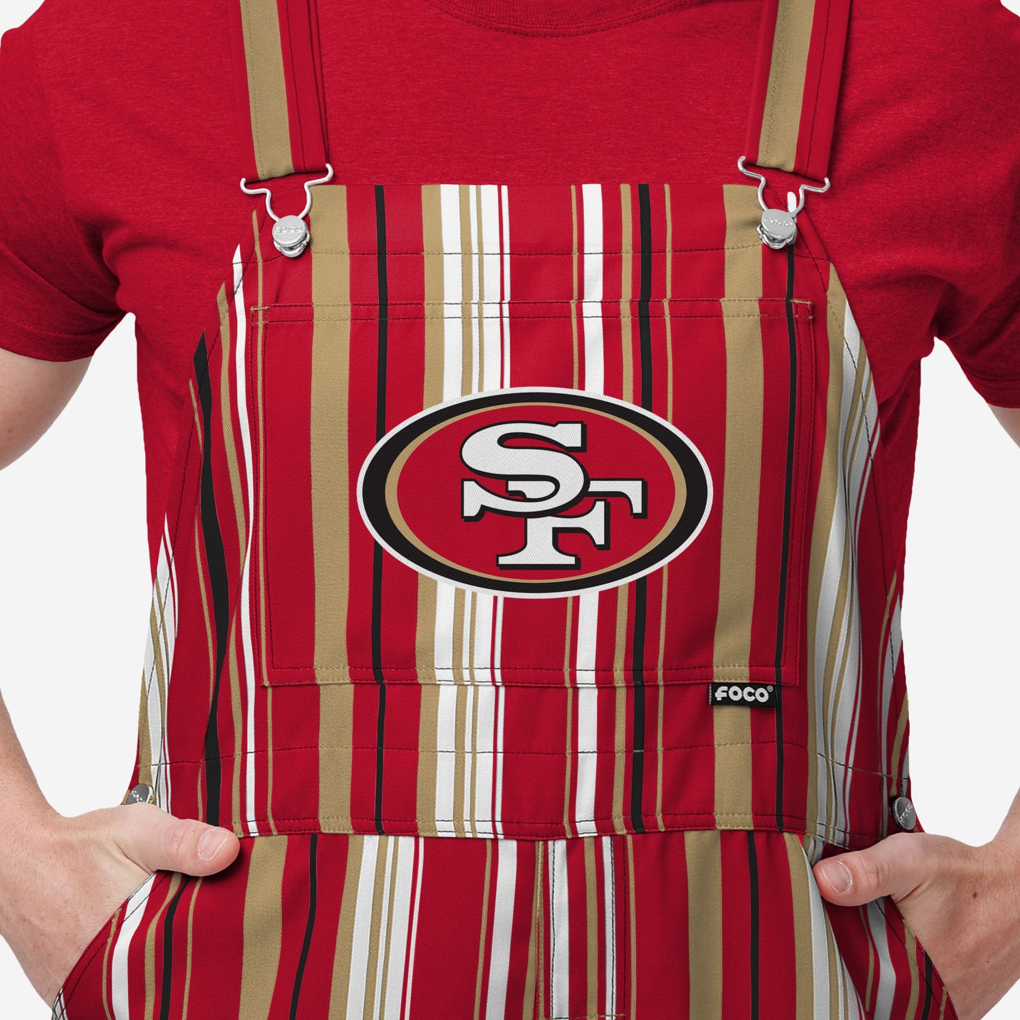 - All-over team-colored design: These overalls are covered in the official San Francisco 49ers colors, so you can show your team spirit with pride.
