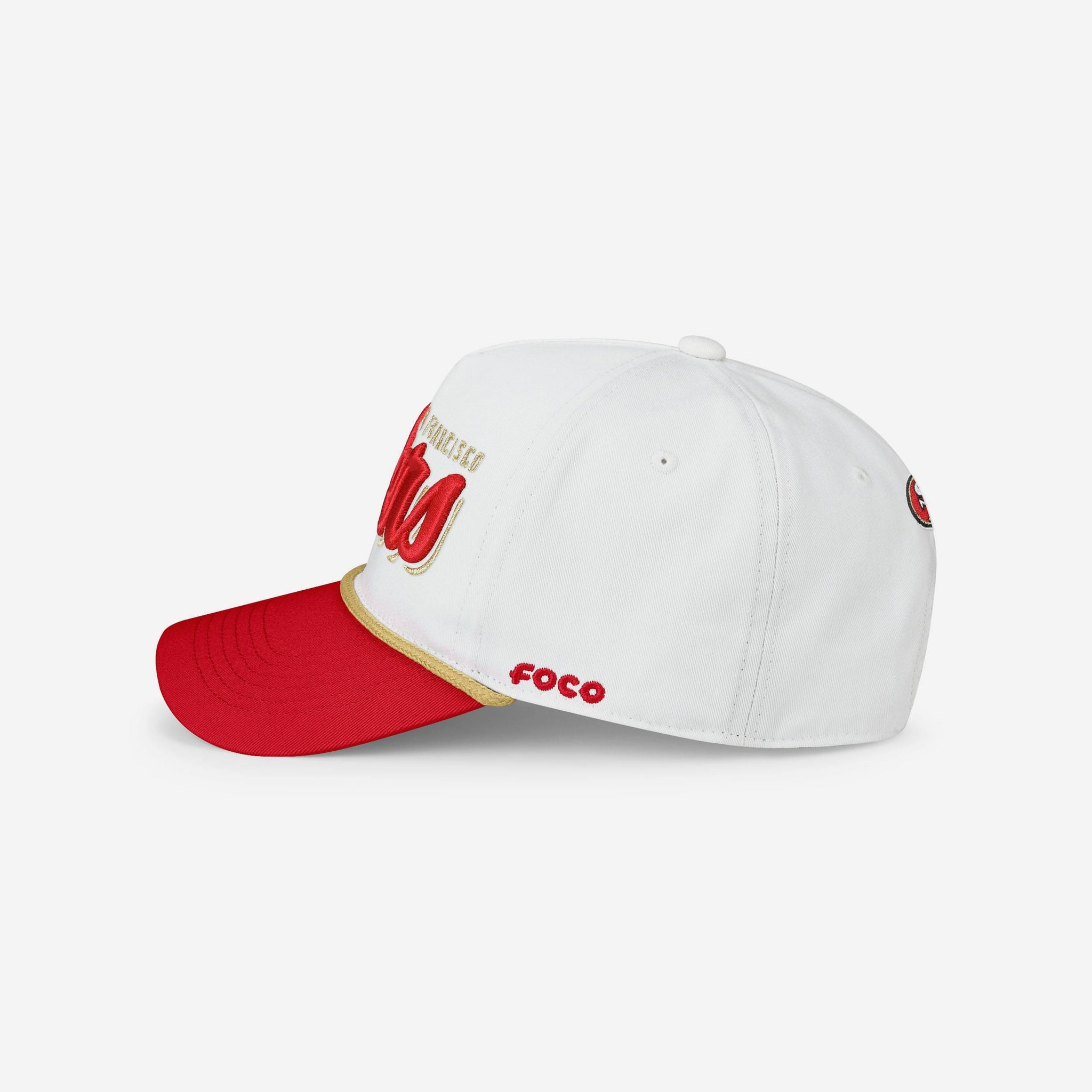 Wear it for all the world to see. Your team spirit will be front and center, when you hitch it to the San Francisco 49ers Monty Script Marquee RF Cap. With an embroidered team logo display and unstructured design featuring a soft curve visor and mid crown, your tailgate fashion just got an upgrade. An adjustable snapback snap closure lets you quickly and easily adjust the fit for the most comfortable feel.
