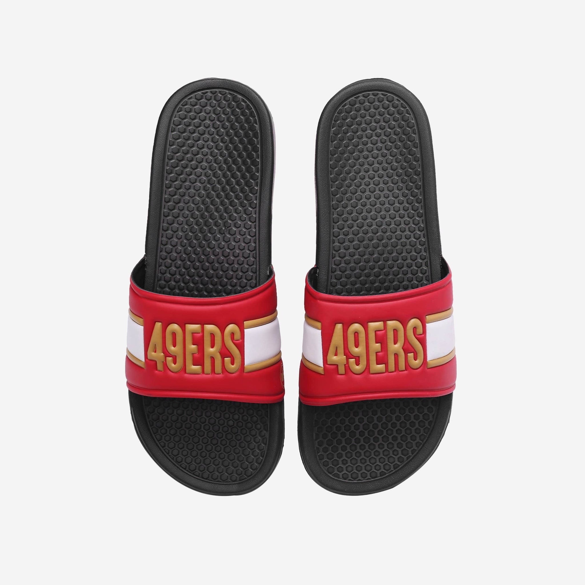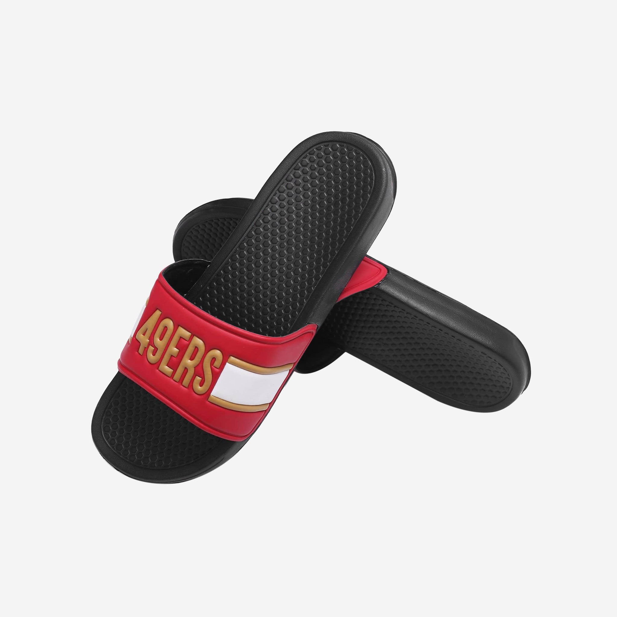 Raise the bar with every step. These San Francisco 49ers Raised Wordmark Slides feature all the style and comfort your phenomenal fan feet so rightly deserve.