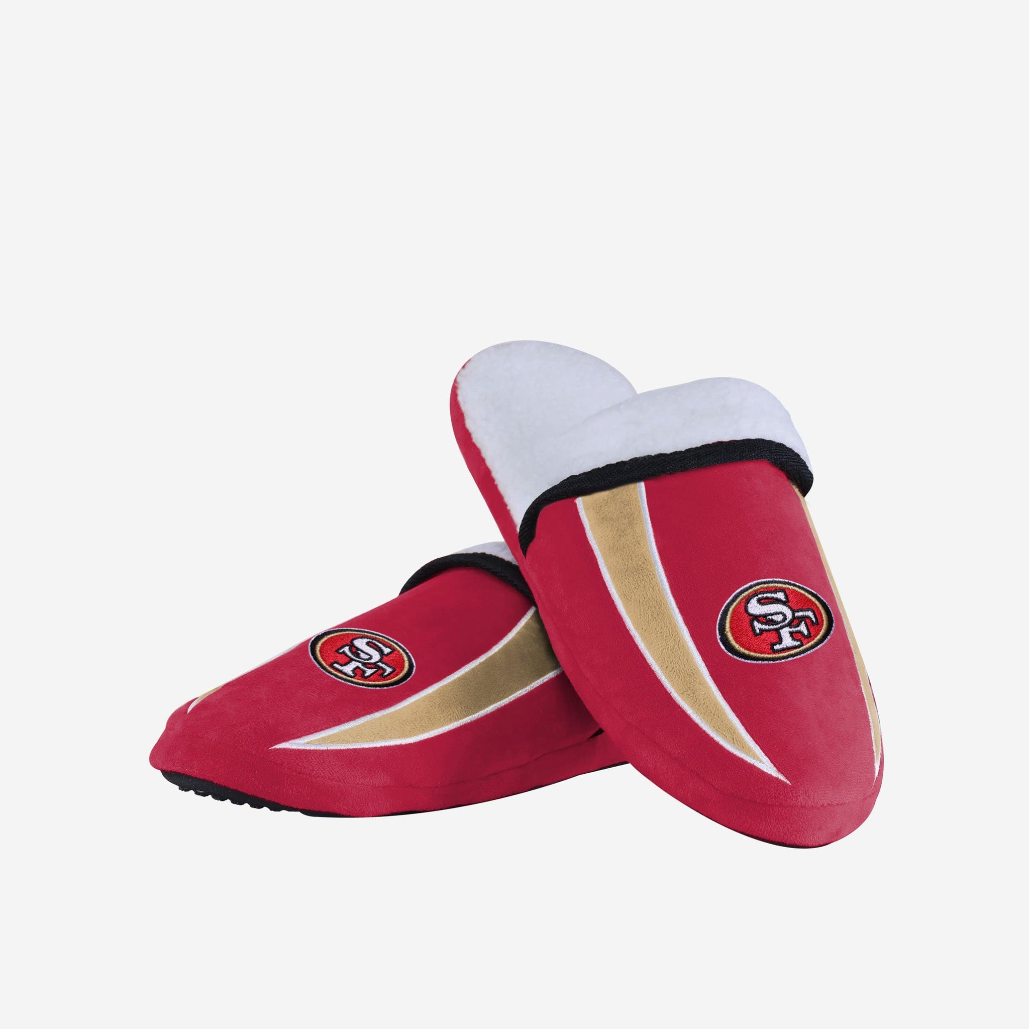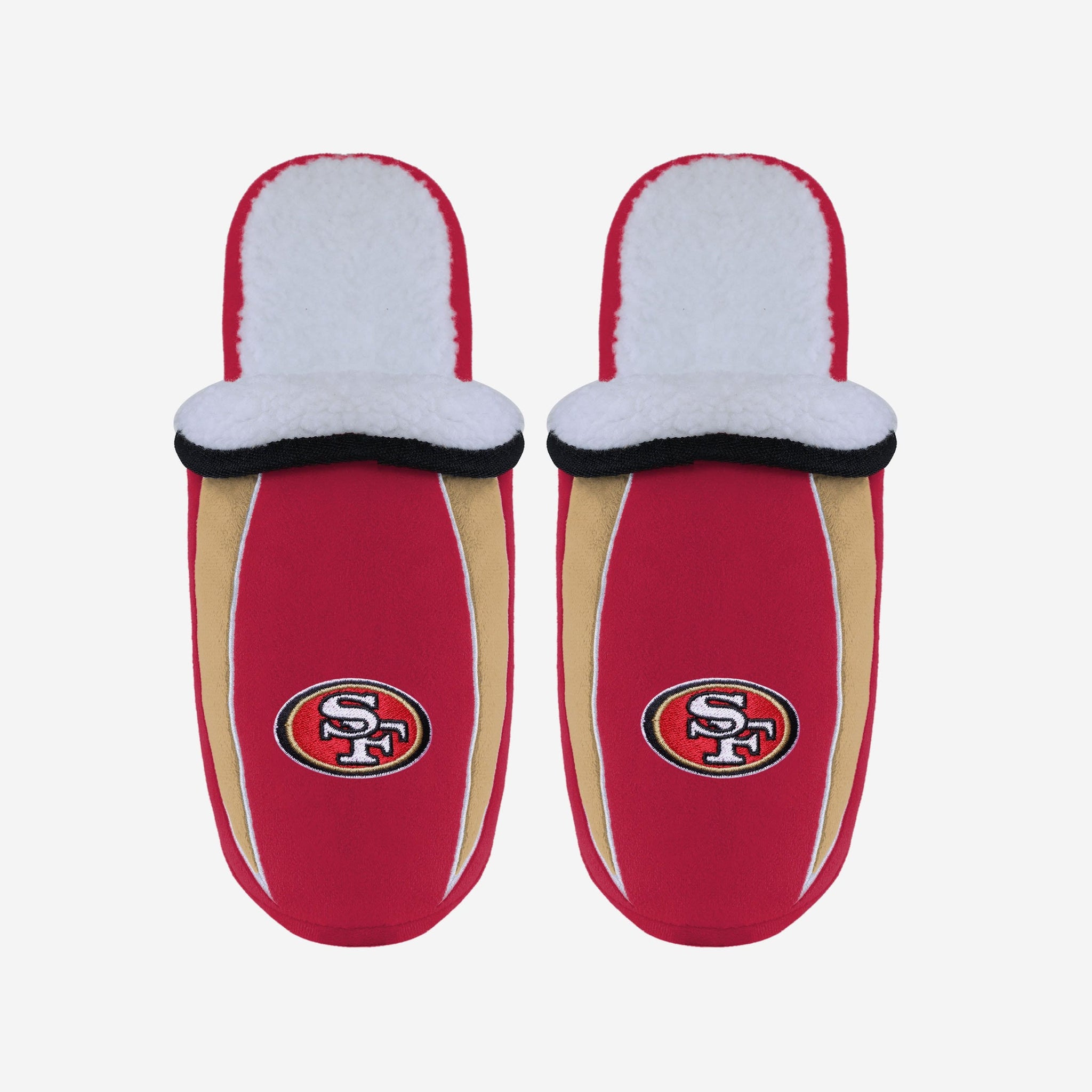 Kicking back, putting your feet up and watching the big game on the big screen in the fancave is great. You know what's even greater? Doing all that while wearing these San Francisco 49ers Men's Sherpa Slide Slippers. Step into some serious fan comfort.