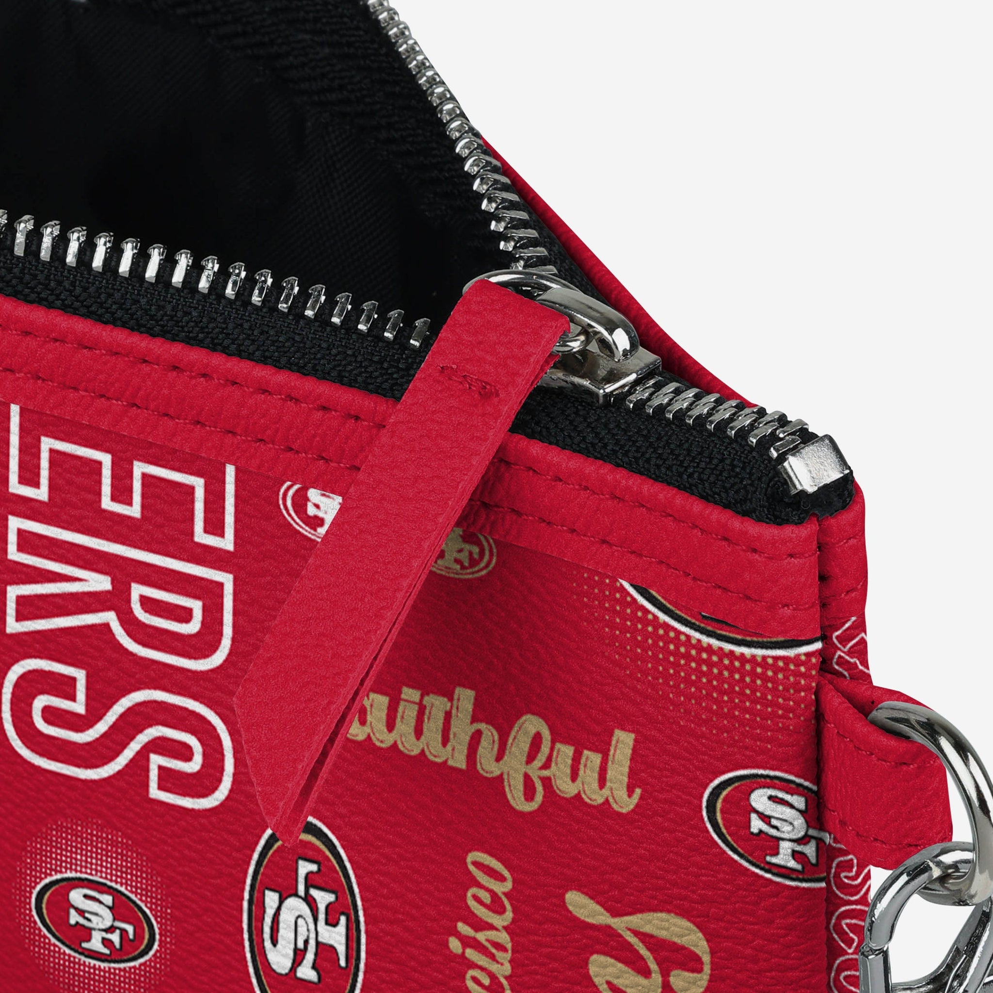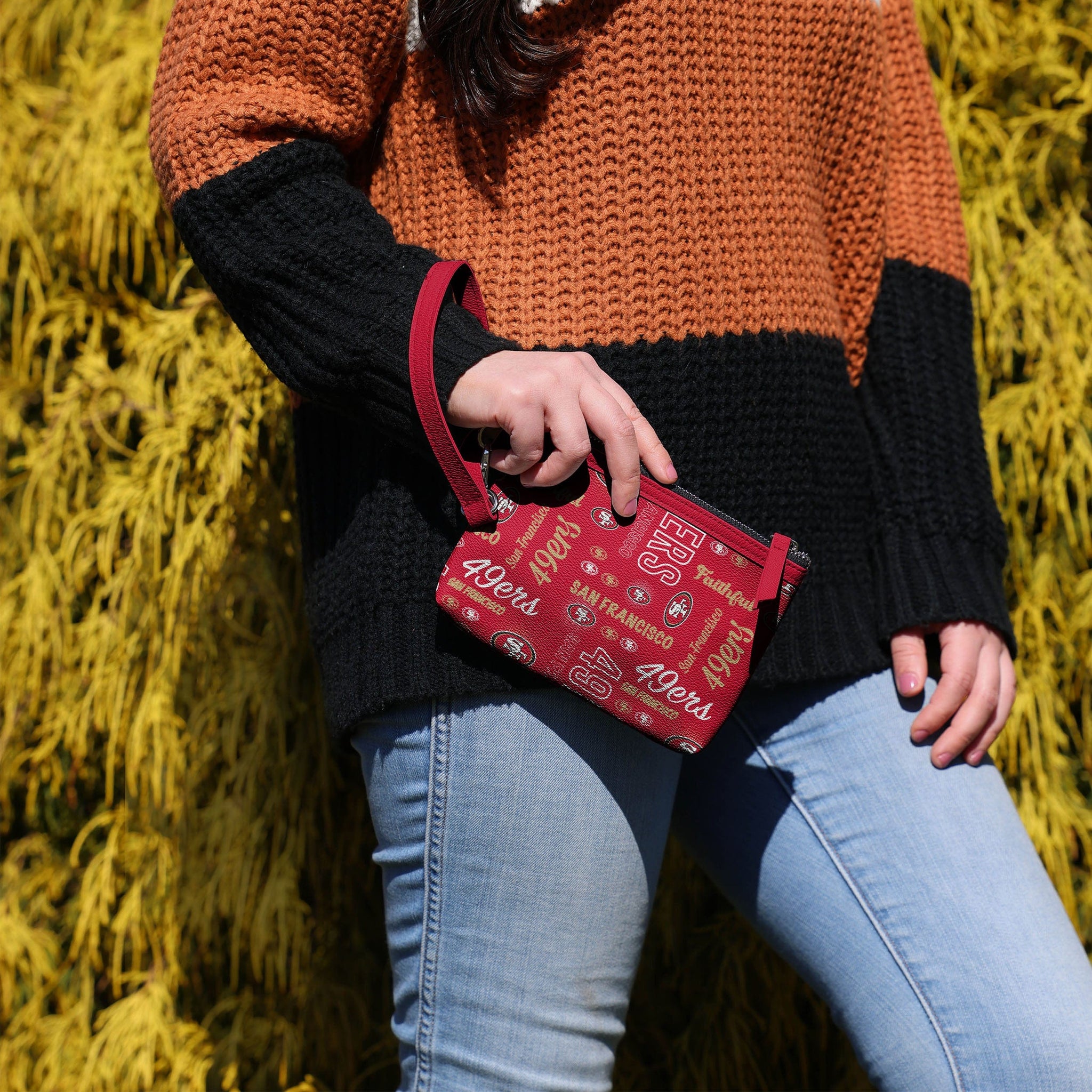 Gamedays on the go are easier and more fashionable than ever before thanks to this San Francisco 49ers Spirited Style Printed Collection Repeat Logo Wristlet.