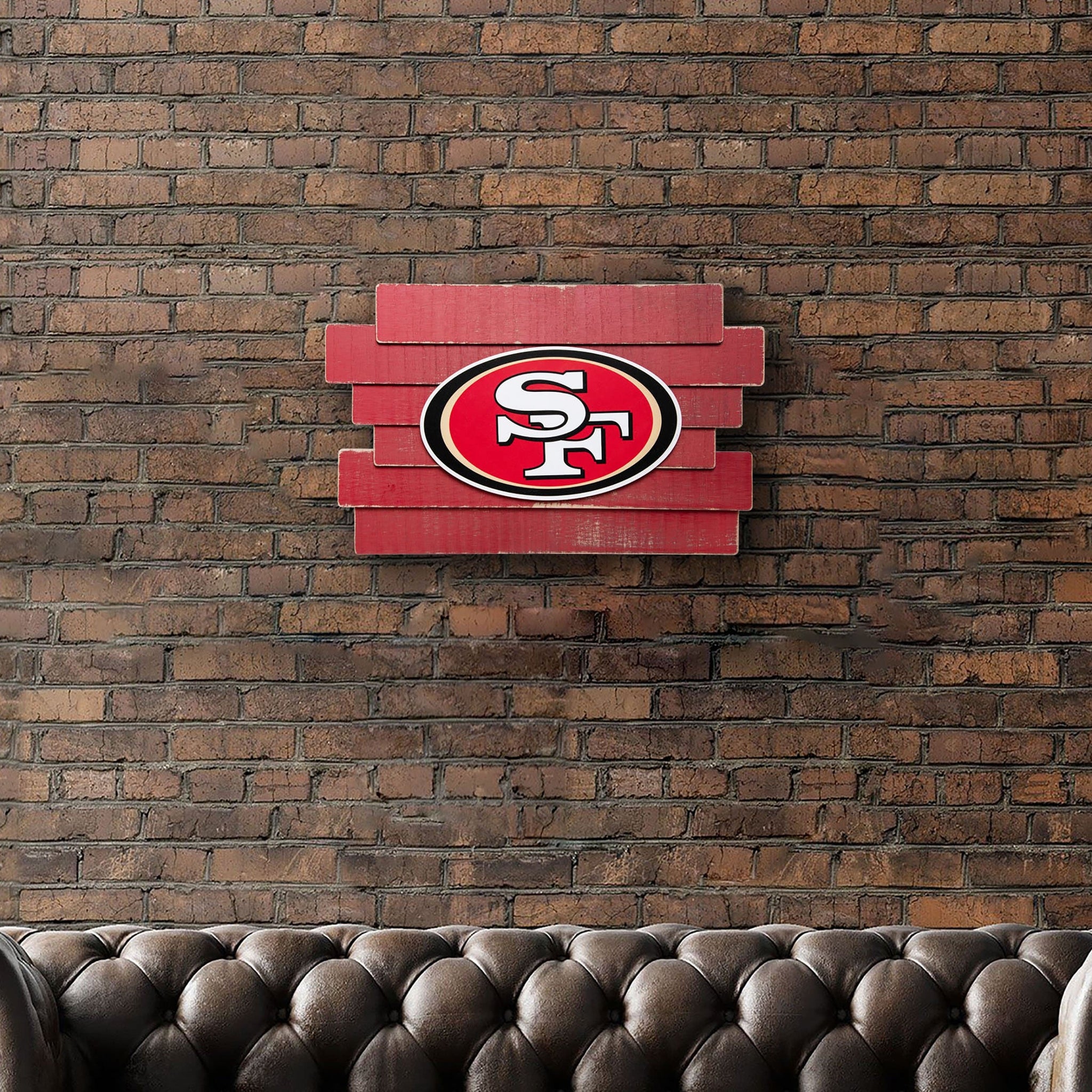 It's time to take your fancave from very good, to MVP status. Hang up this San Francisco 49ers Staggered Wood Logo Sign and make sure all of your guests coming over to watch the big game know where your allegiances lie.