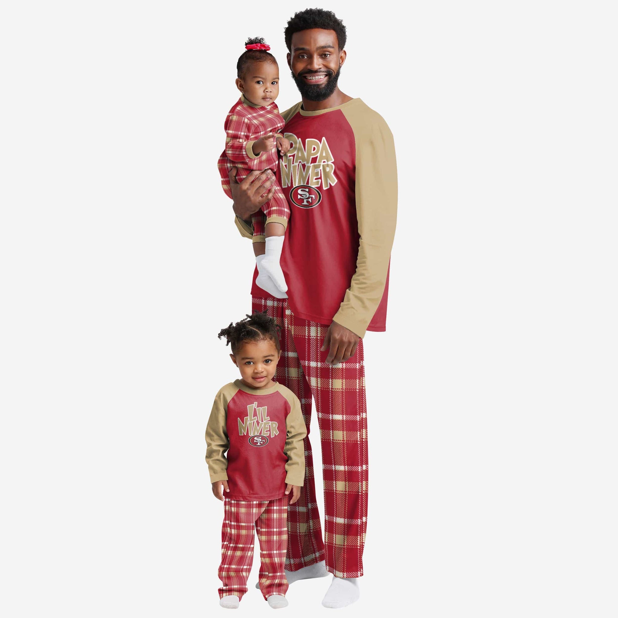 Get some matching family pajamas and dress to impress this holiday season! You won't want to miss these kids' team pajamas! These youth PJ's are comfortable and show off your team spirit in the form of some sweet youth jammies. Introducing the San Francisco 49ers Toddler Plaid Family Holiday Pajamas! Don't forget to take your holiday photo with the whole family wearing matching Christmas pajamas!