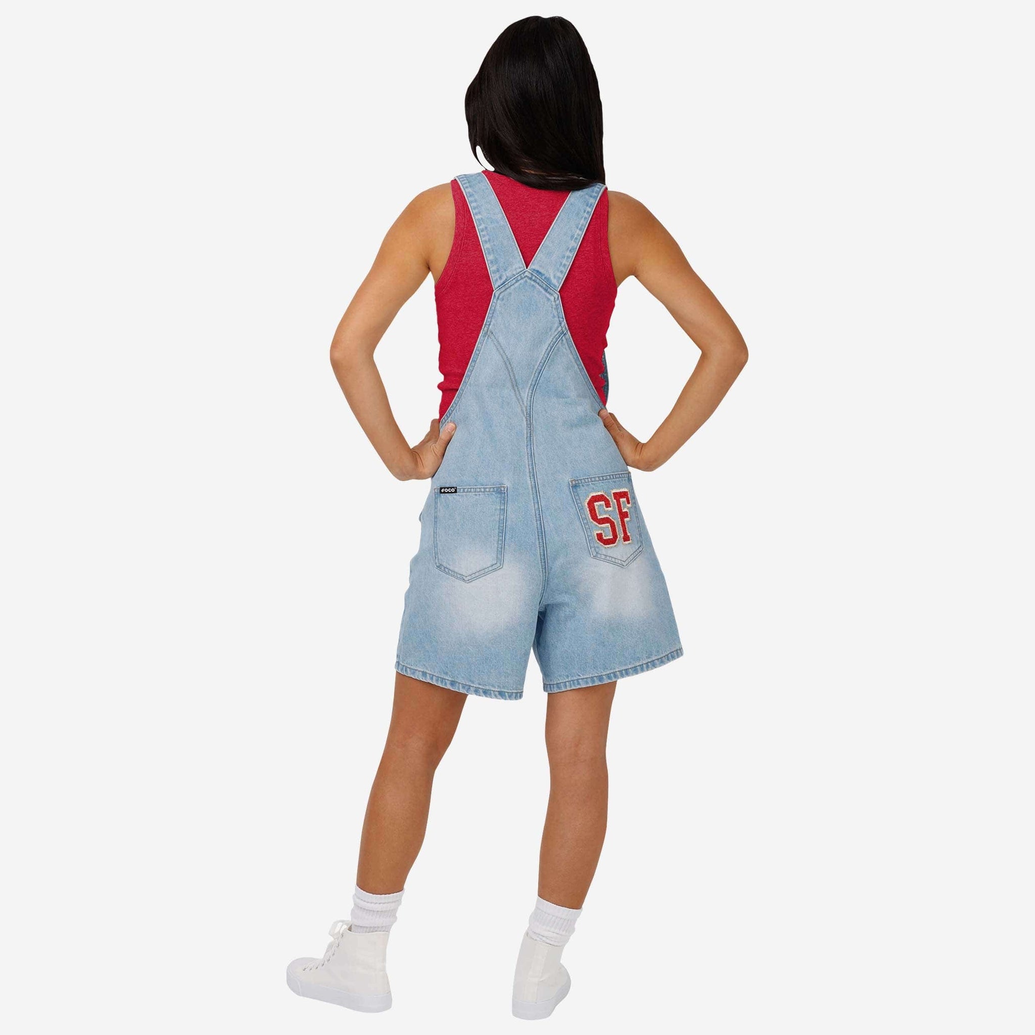 San Francisco 49ers Womens Big Logo Denim Bib Shortalls FOCO XS - FOCO.com