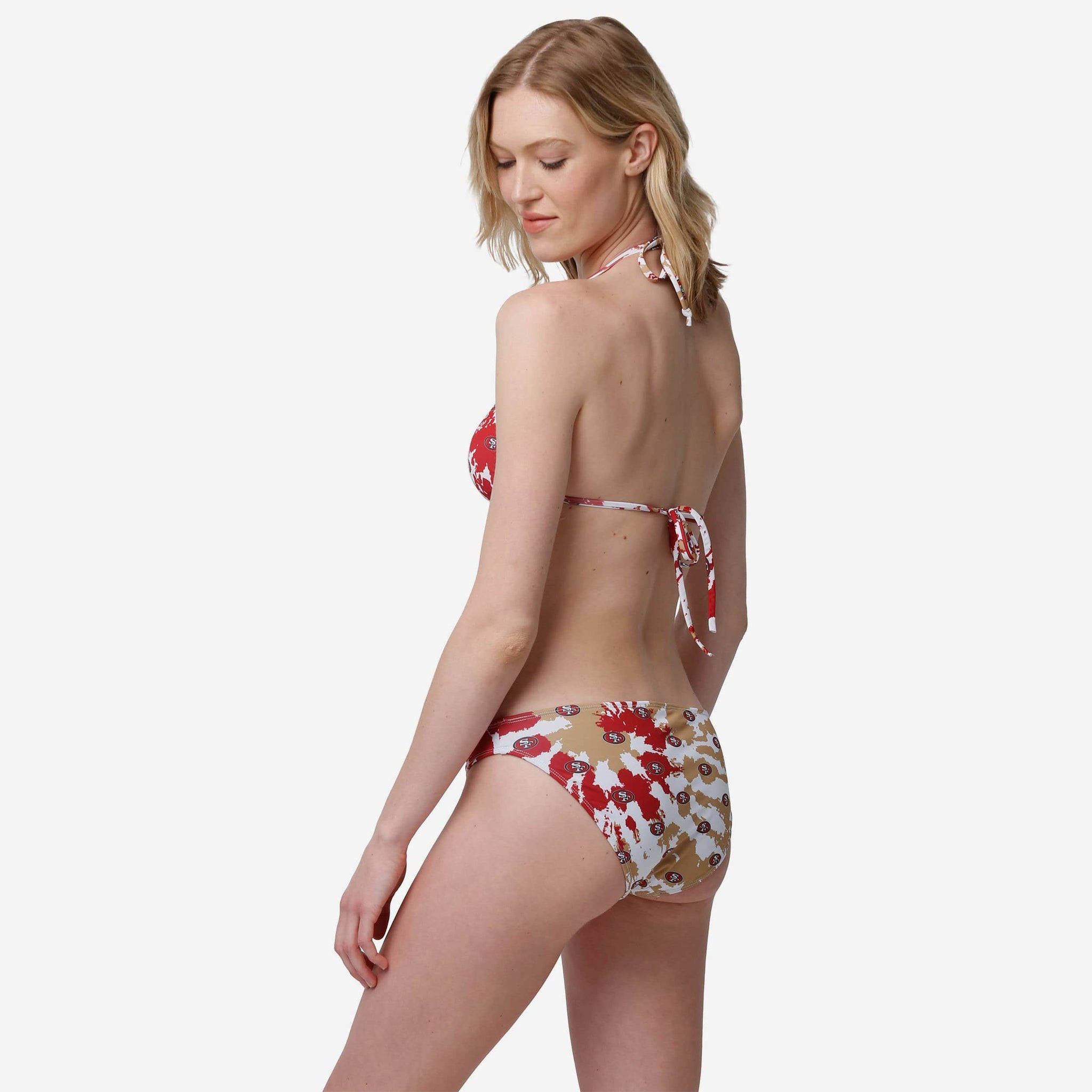 Lounging around on a summer day? Make sure everyone knows your fandom doesn't take a vacation by wearing this San Francisco 49ers Women's Paint Splash Bikini Top!
