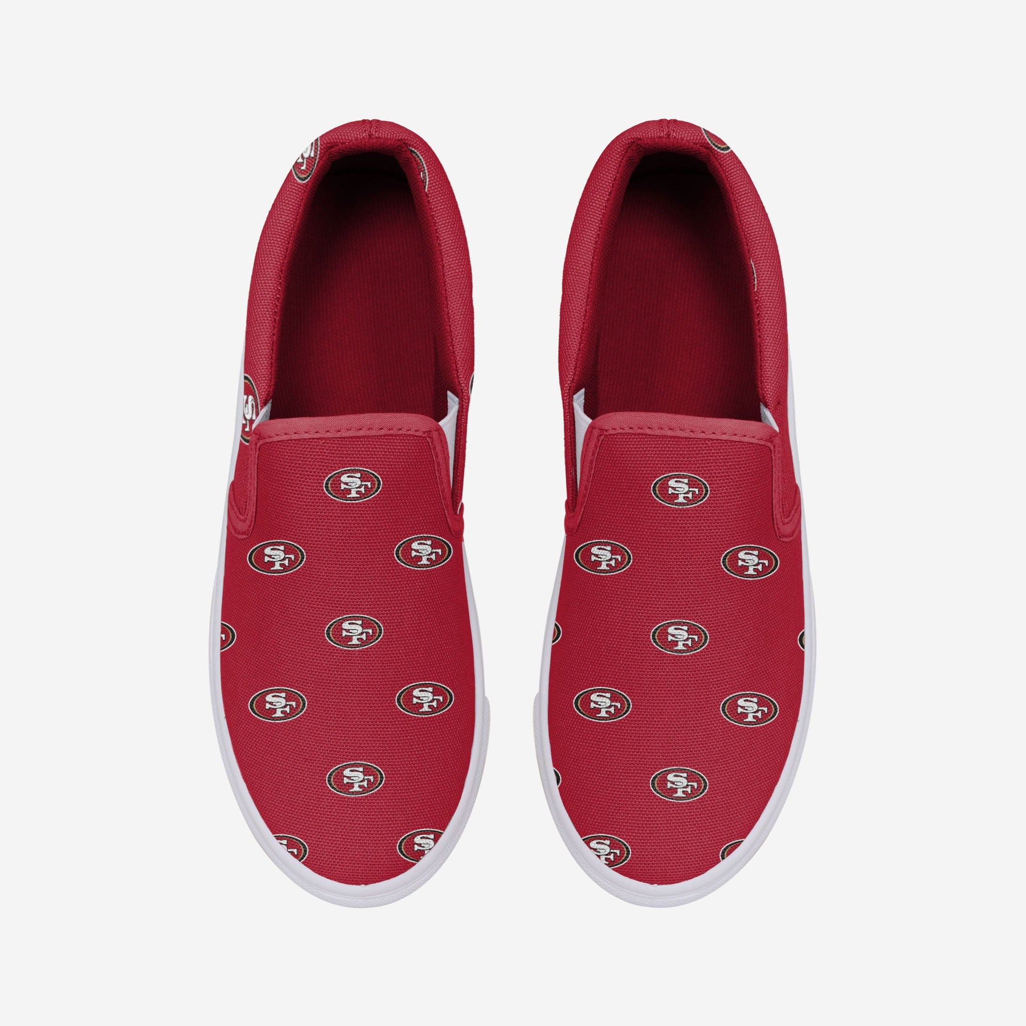 With all this team spirit on display, no words are necessary. But we'll use a few anyway. Make a stylish statement when you step out in these San Francisco 49ers Women's Repeat Logo Slip-On Canvas Shoes!