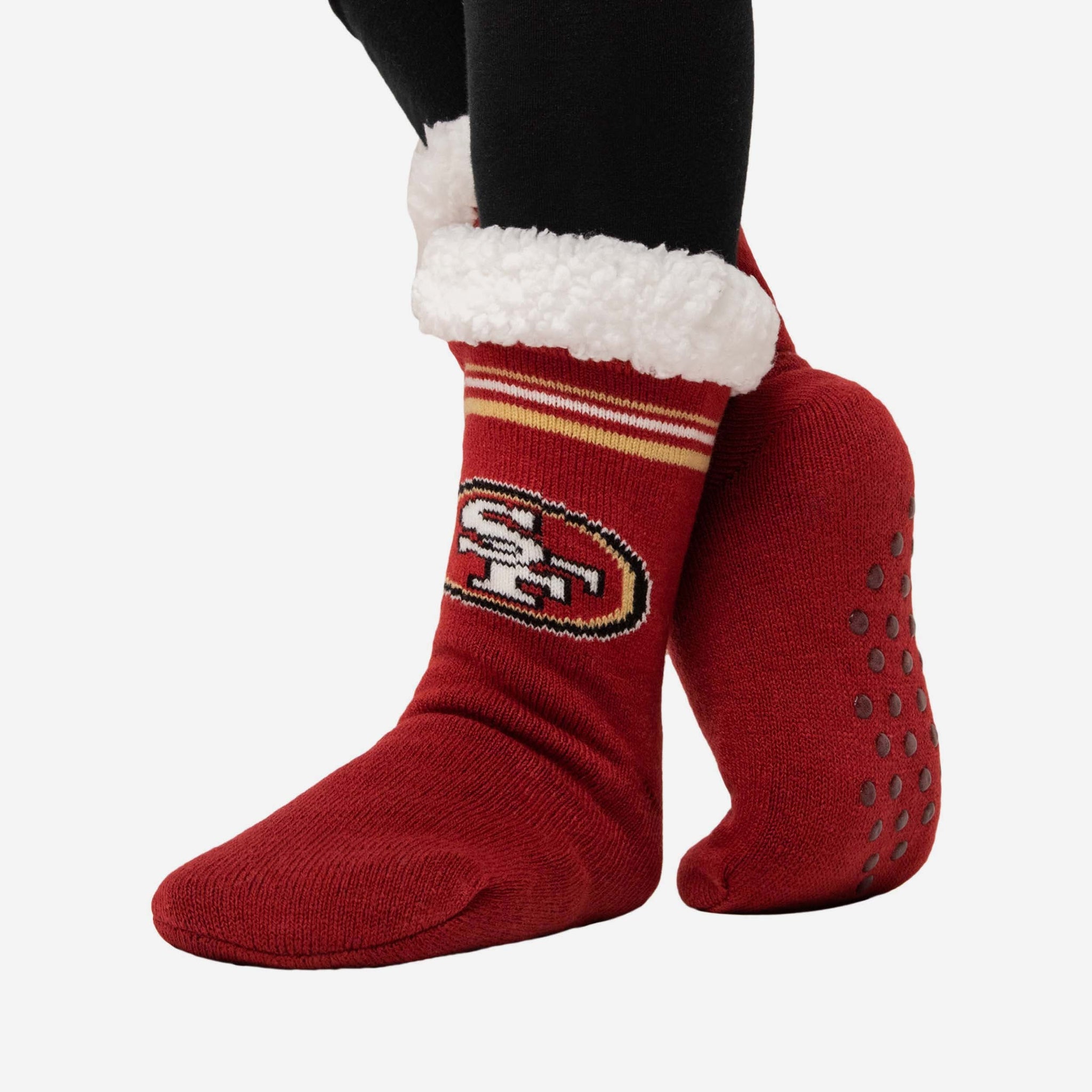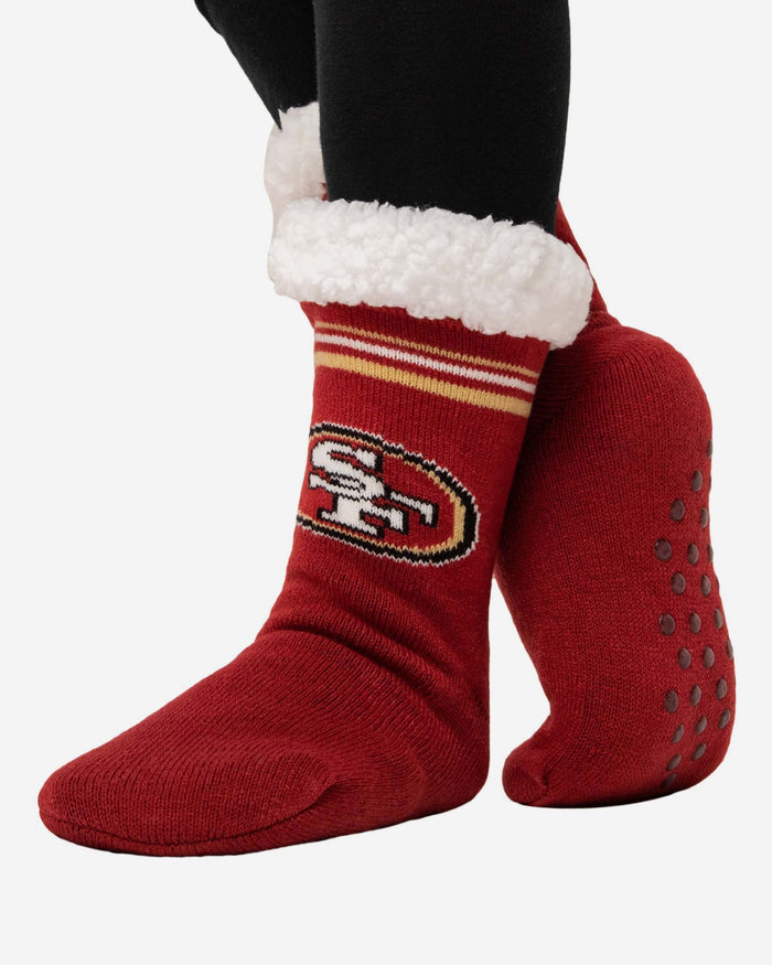 Name a more dynamic duo than the comfort and team spirit on display in these San Francisco 49ers Stripe Logo Tall Footy Slipper Socks. We'll wait.