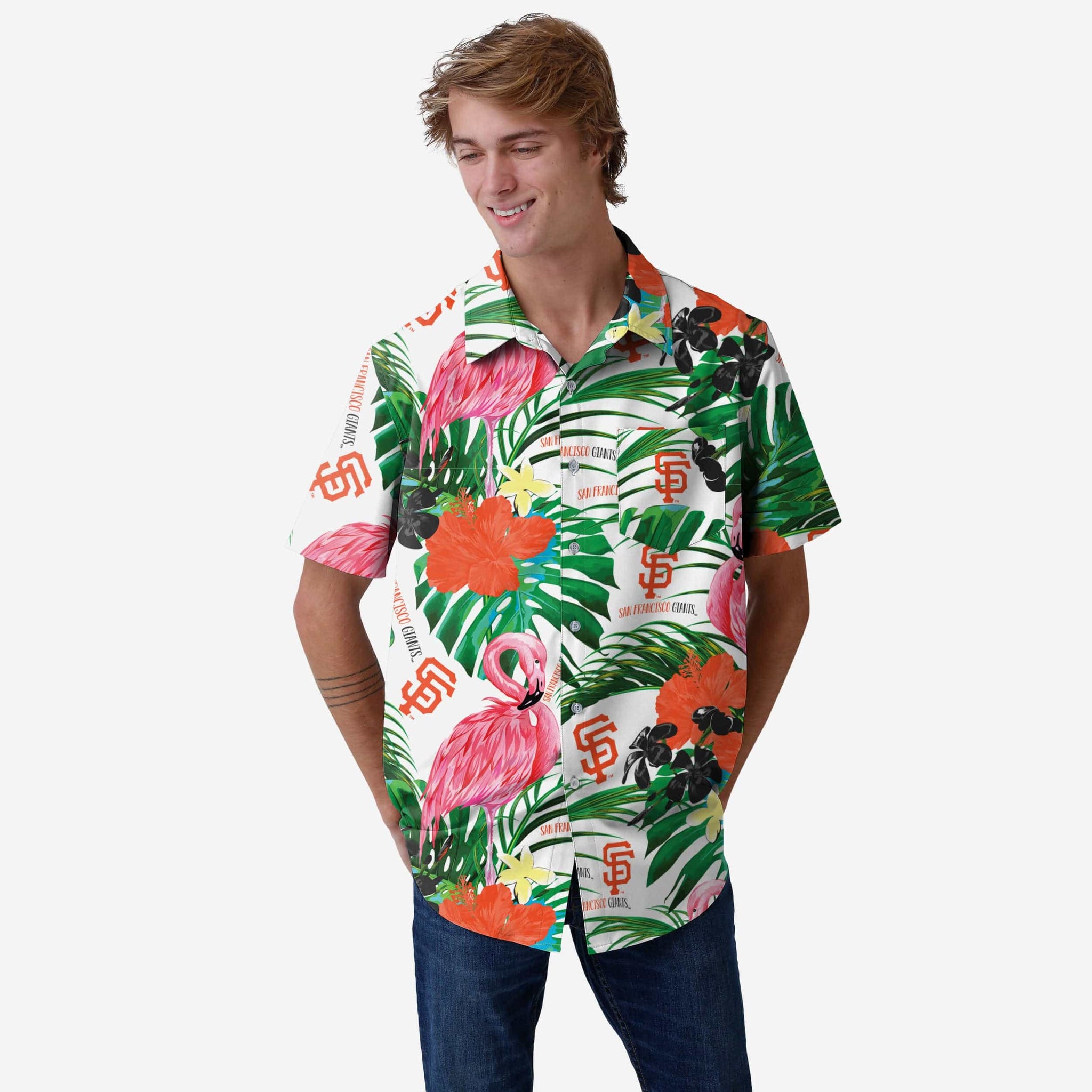 San Francisco Giants Flamingo Button Up Shirt FOCO - FOCO.com