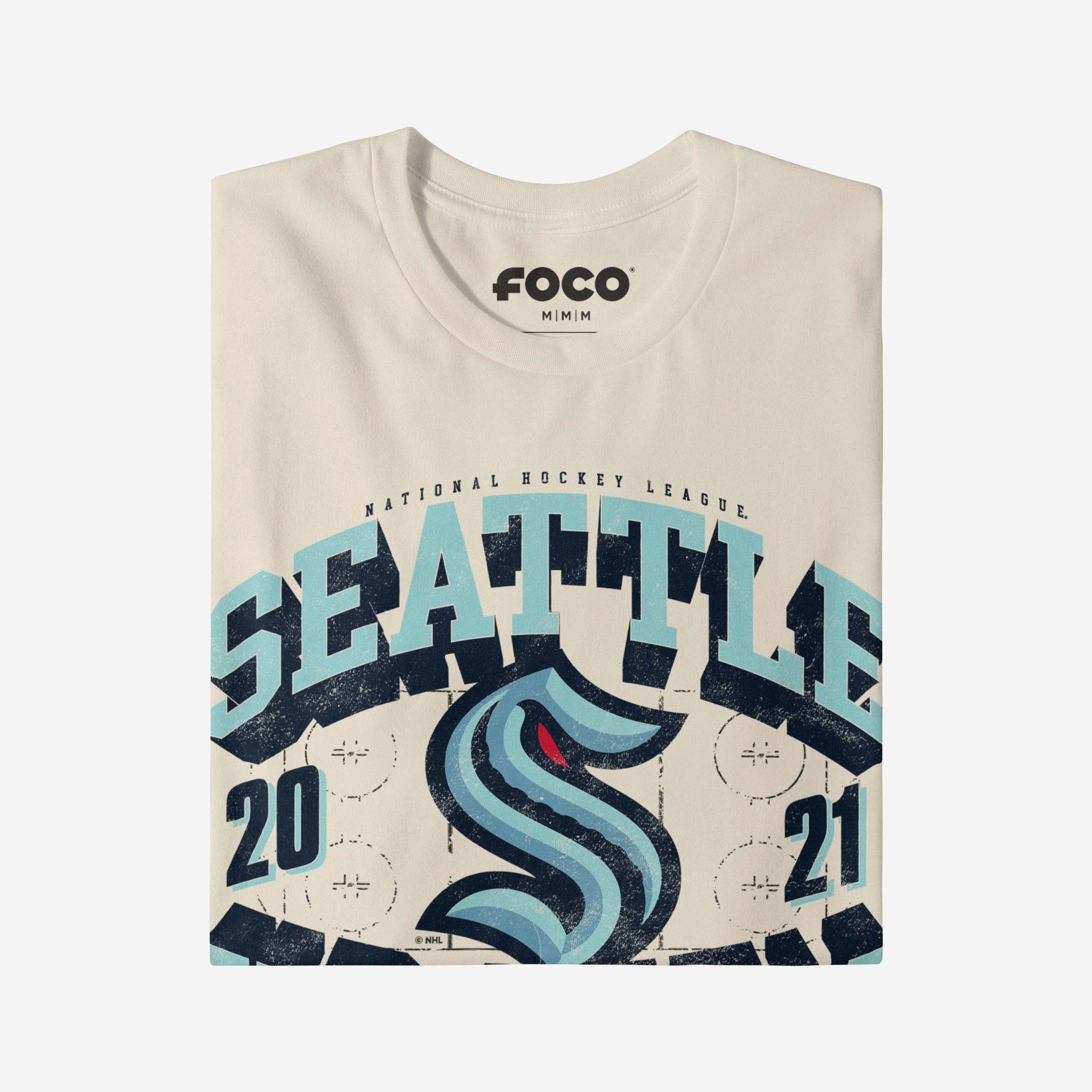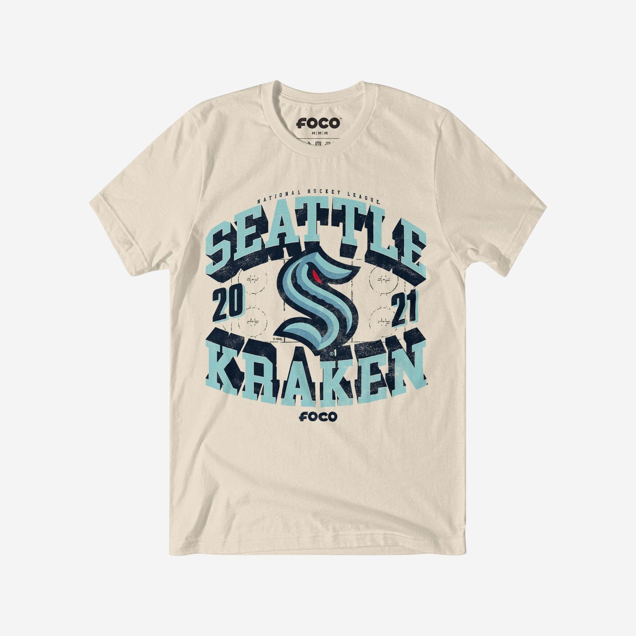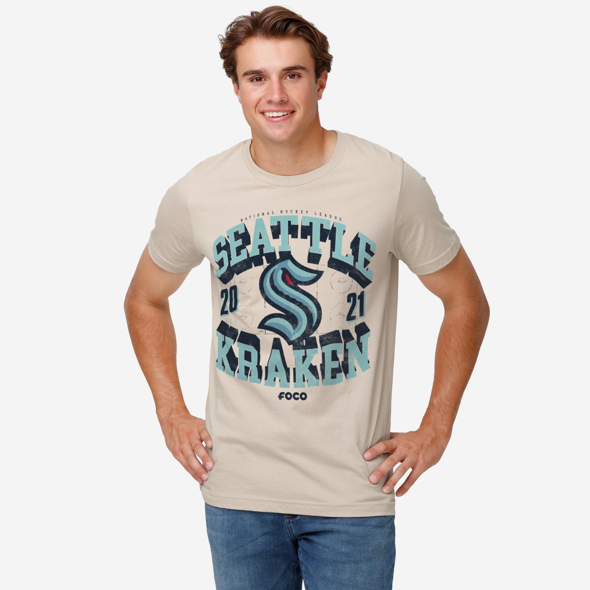 This top features a design that showcases your all-important team colors, a bold team logo display, an arched team wordmark name display, a league wordmark name display, and year of team establishment, meaning this t-shirt will prove your unmatched dedication to the Seattle Kraken when you’re at the game or watching at home with your friends. In other words, this graphic tee is about to be your new favorite teammate.