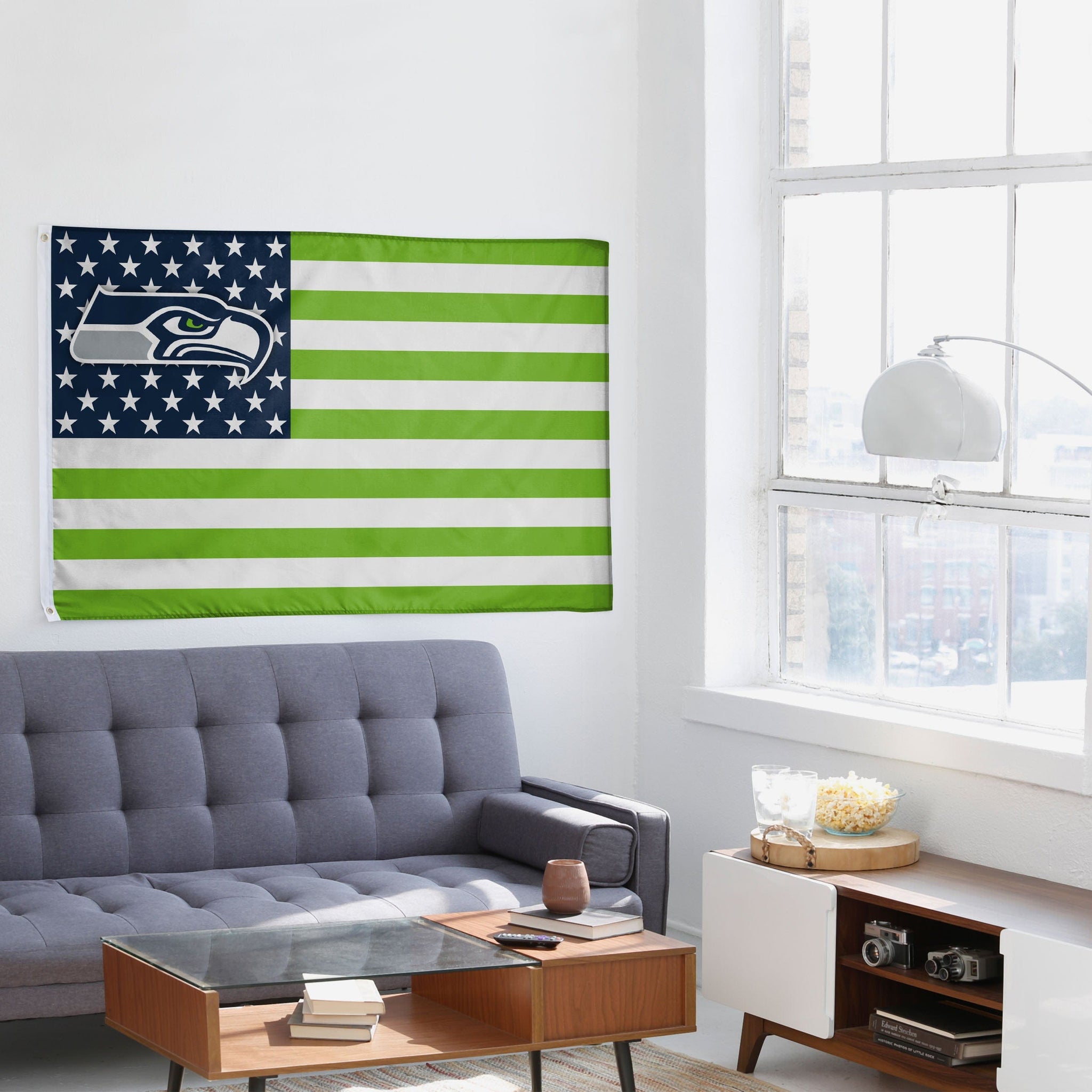 When you add this Seattle Seahawks American Stars Horizontal Flag to your fancave, you and your fellow fans will be ready to celebrate some stars, stripes, and team spirit.