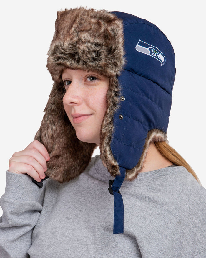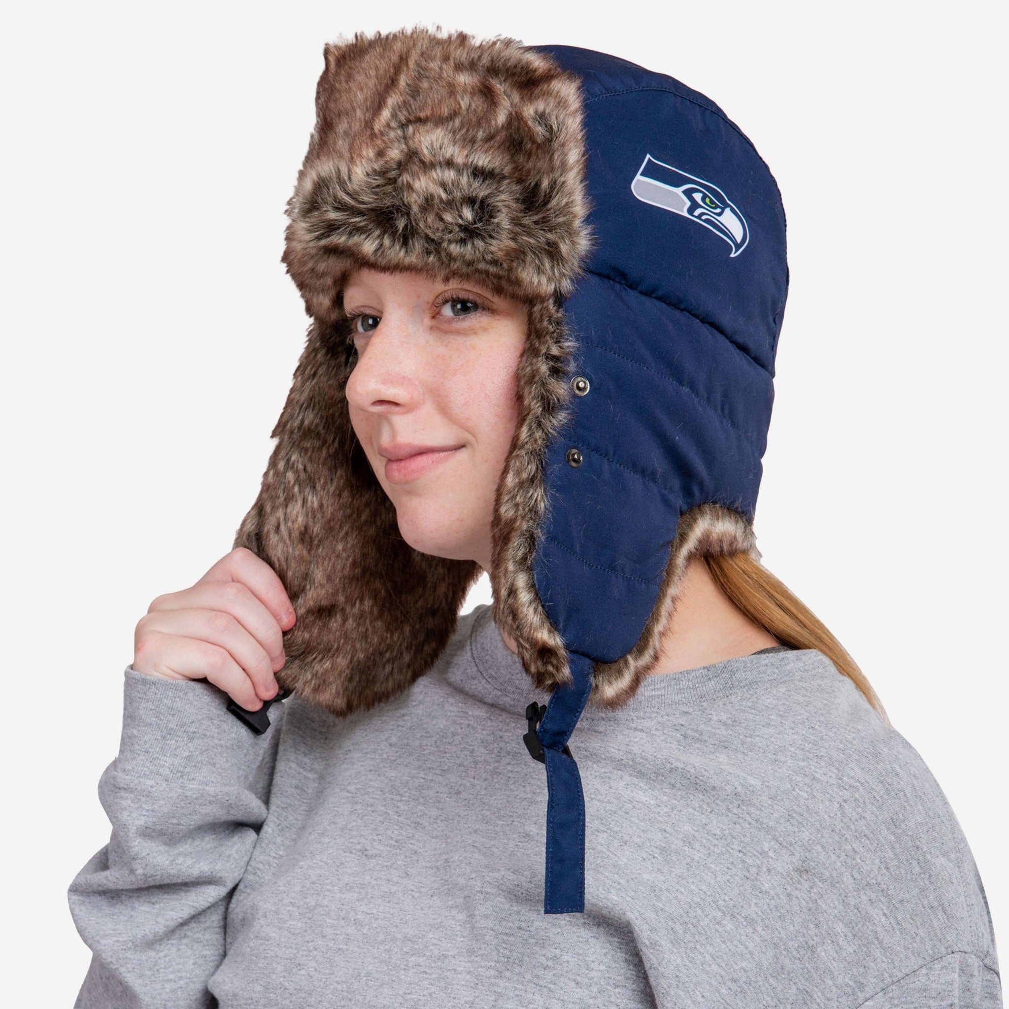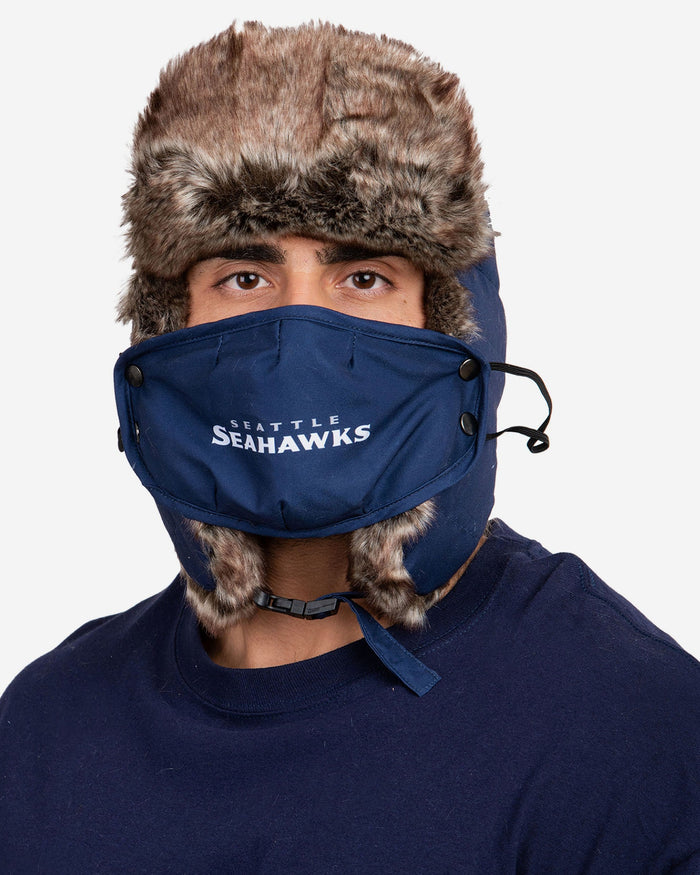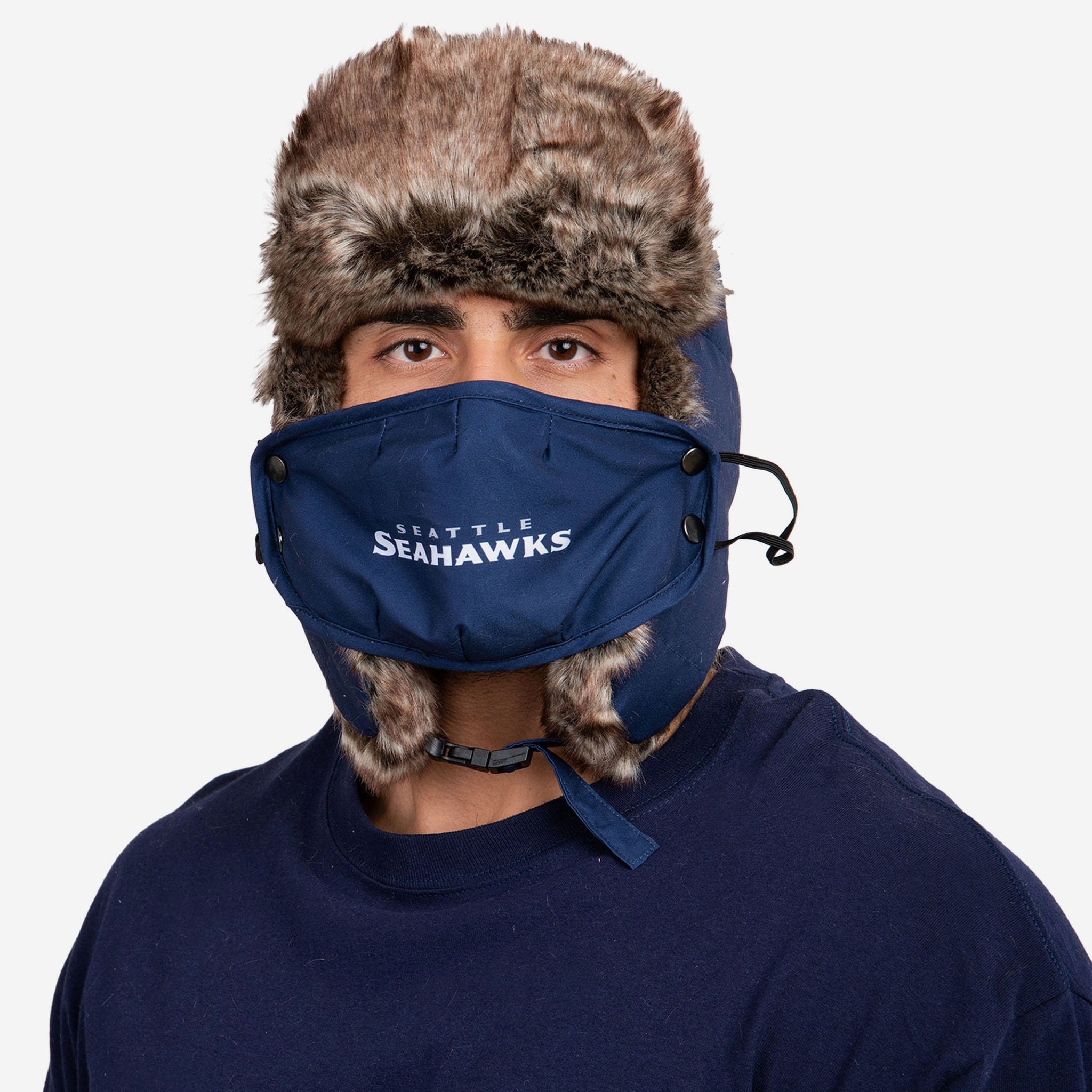 Getting chilly out? Don't worry. We've got you covered! Look cool and stay nice and warm in this Seattle Seahawks Big Logo Trapper Hat with Face Cover!