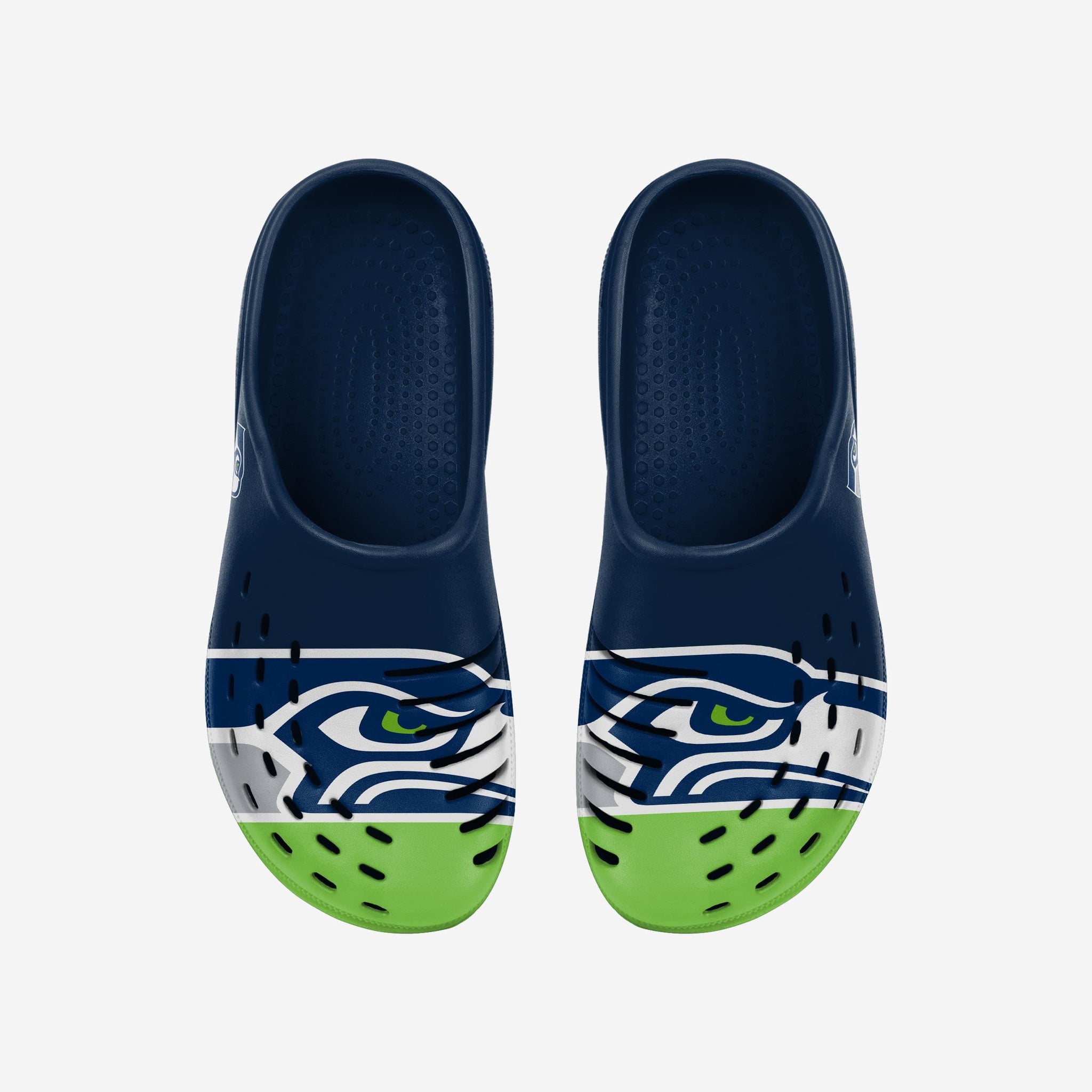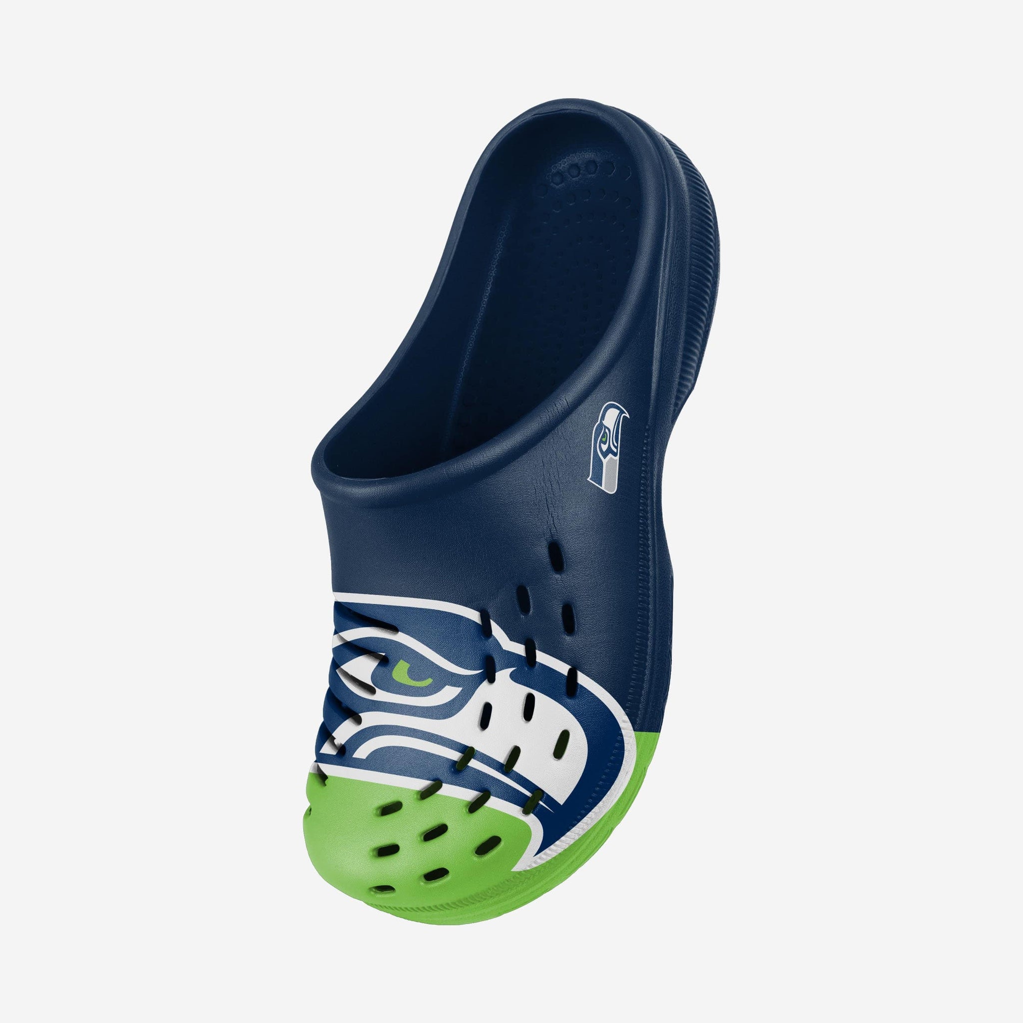 Whether you're walking around the house, in the park, or to your favorite seat in the stadium ready to cheer your team on to victory, do it in style by rocking these Seattle Seahawks Colorblock Big Logo Clogs!
