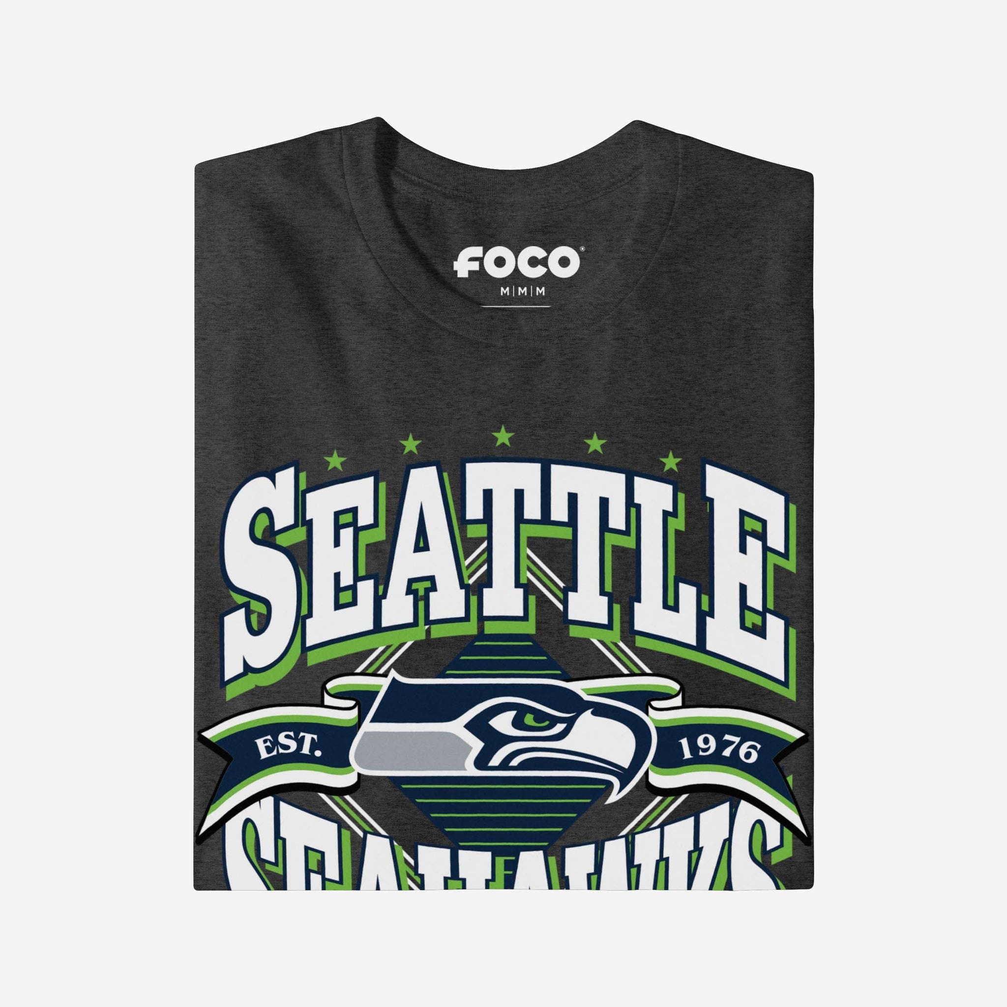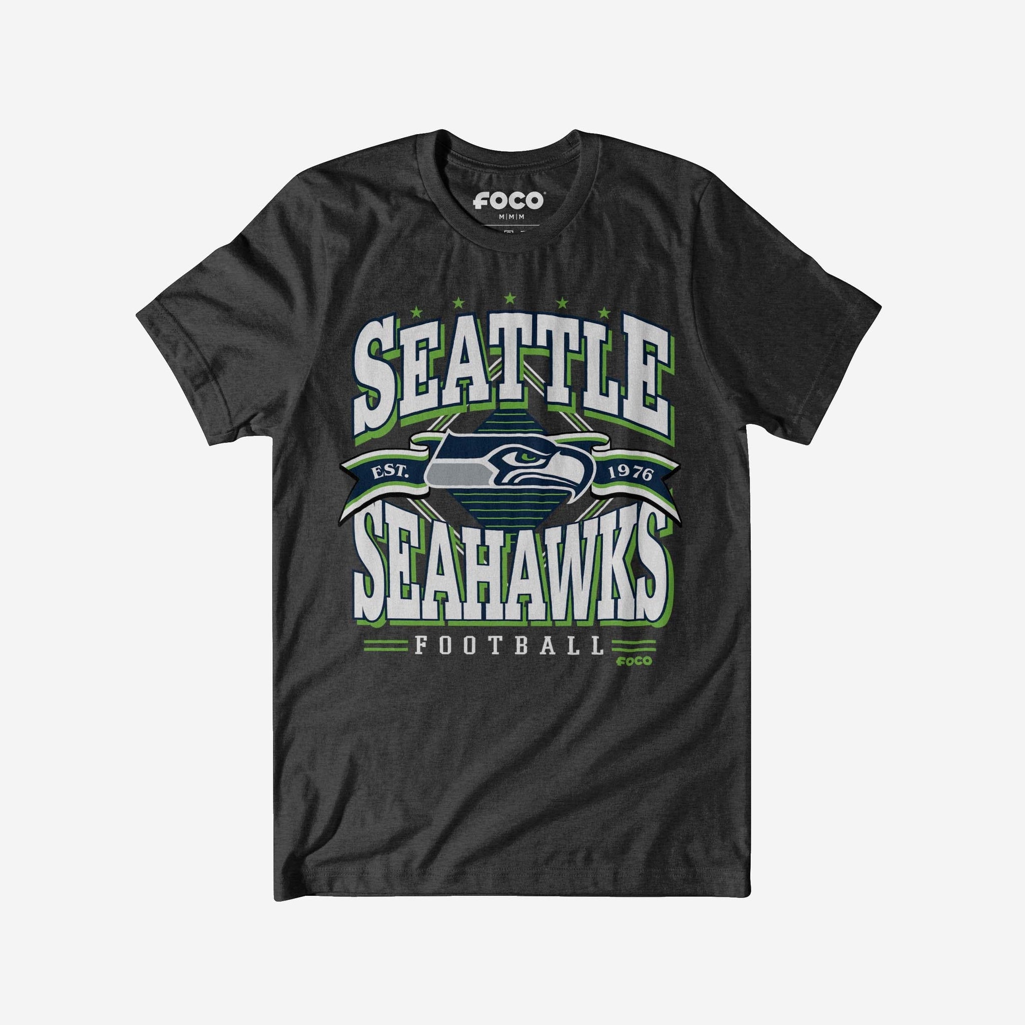 Tired of having to answer questions like, “Who’s your favorite team?” Here’s a shirt that will answer them for you. Show off your fandom and celebrate your team’s decades-spanning awesomeness with the Seattle Seahawks Established Banner T-Shirt.