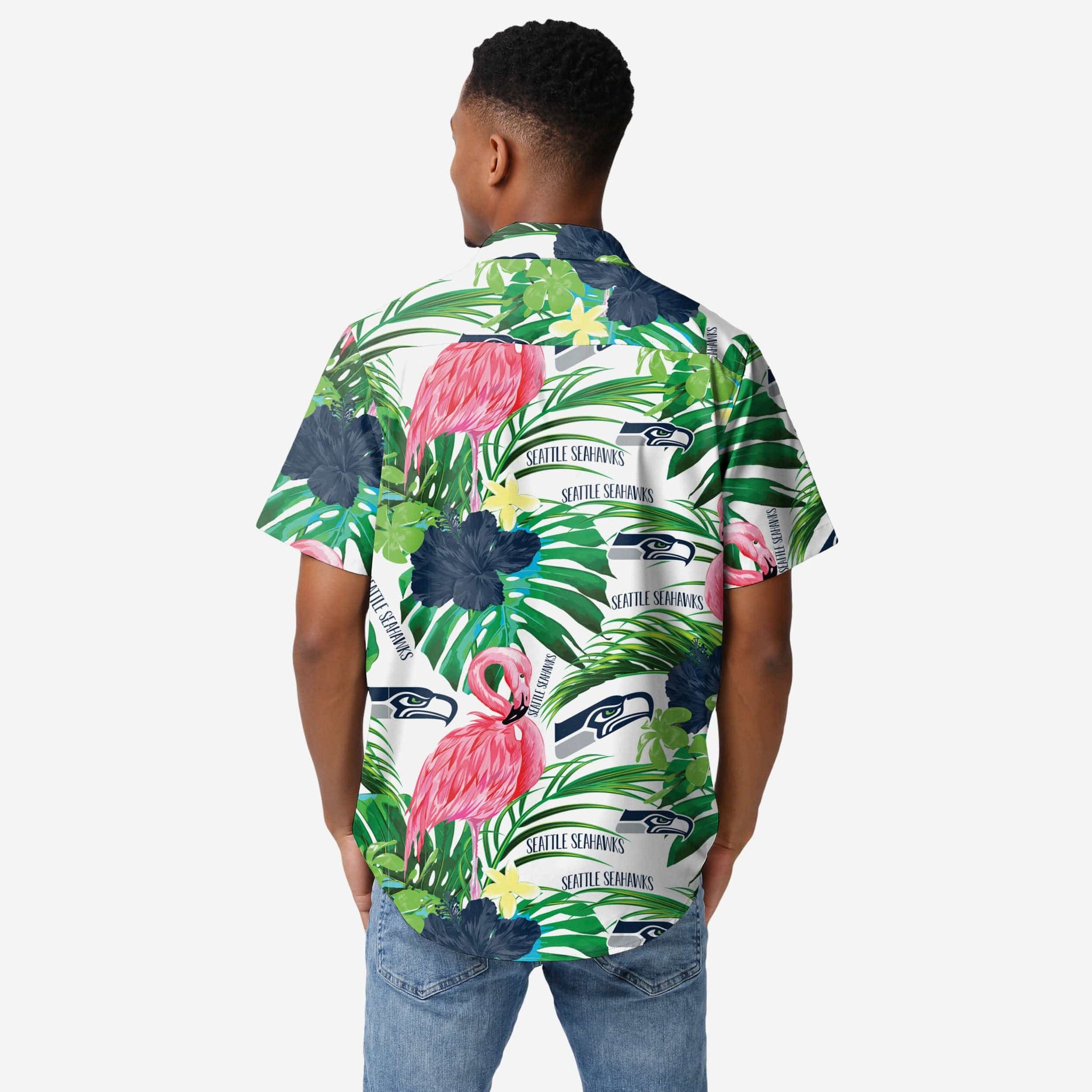 Aloha, party people! No need to set your watch - You're always on island time when you're rocking this Seattle Seahawks Flamingo Button Up Shirt.