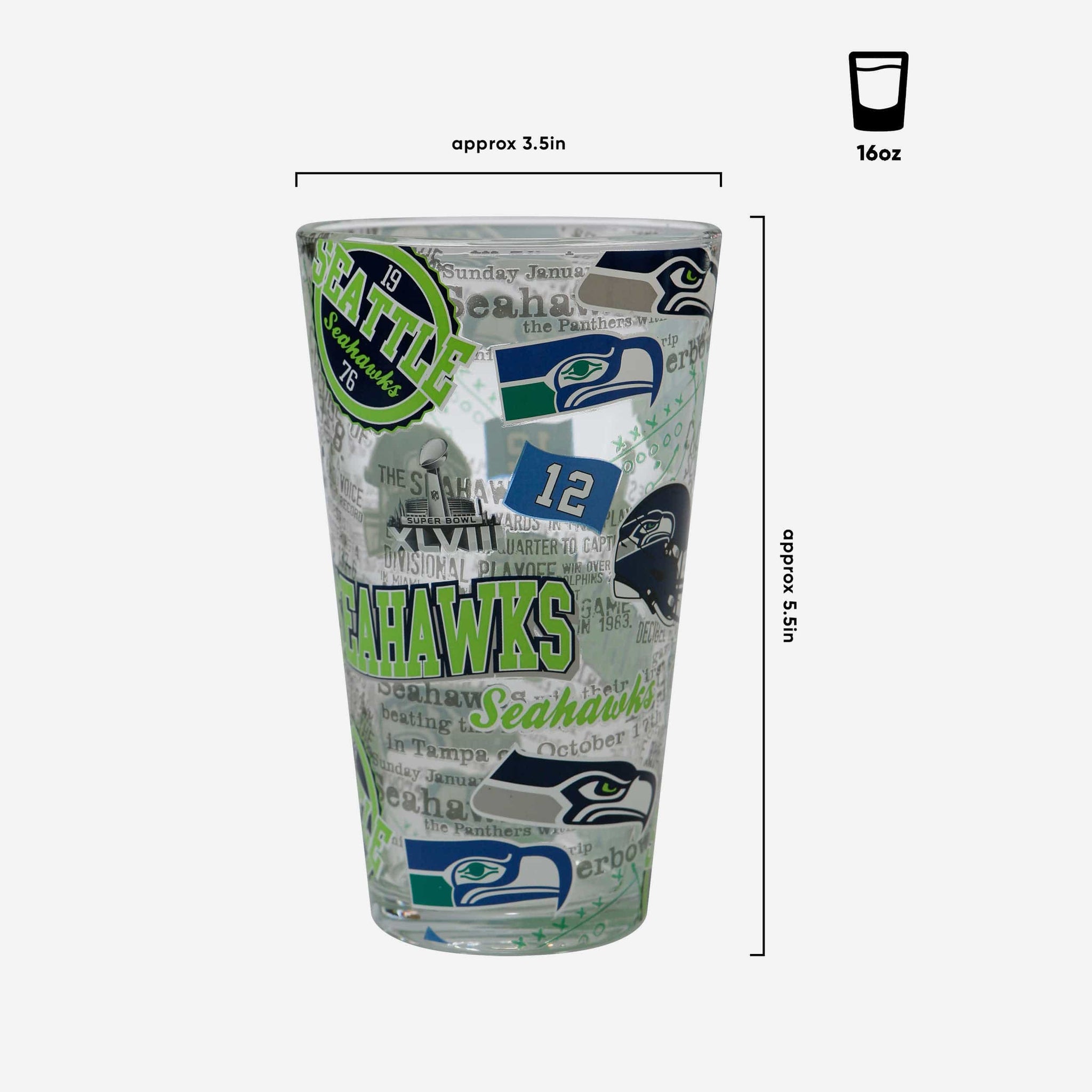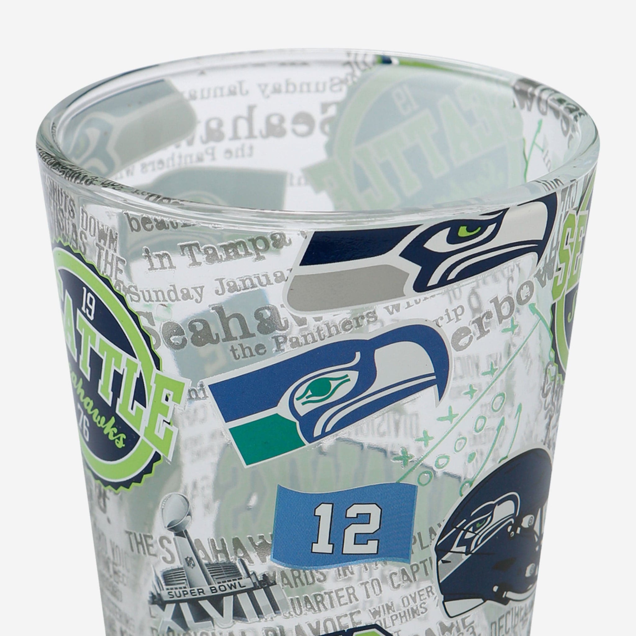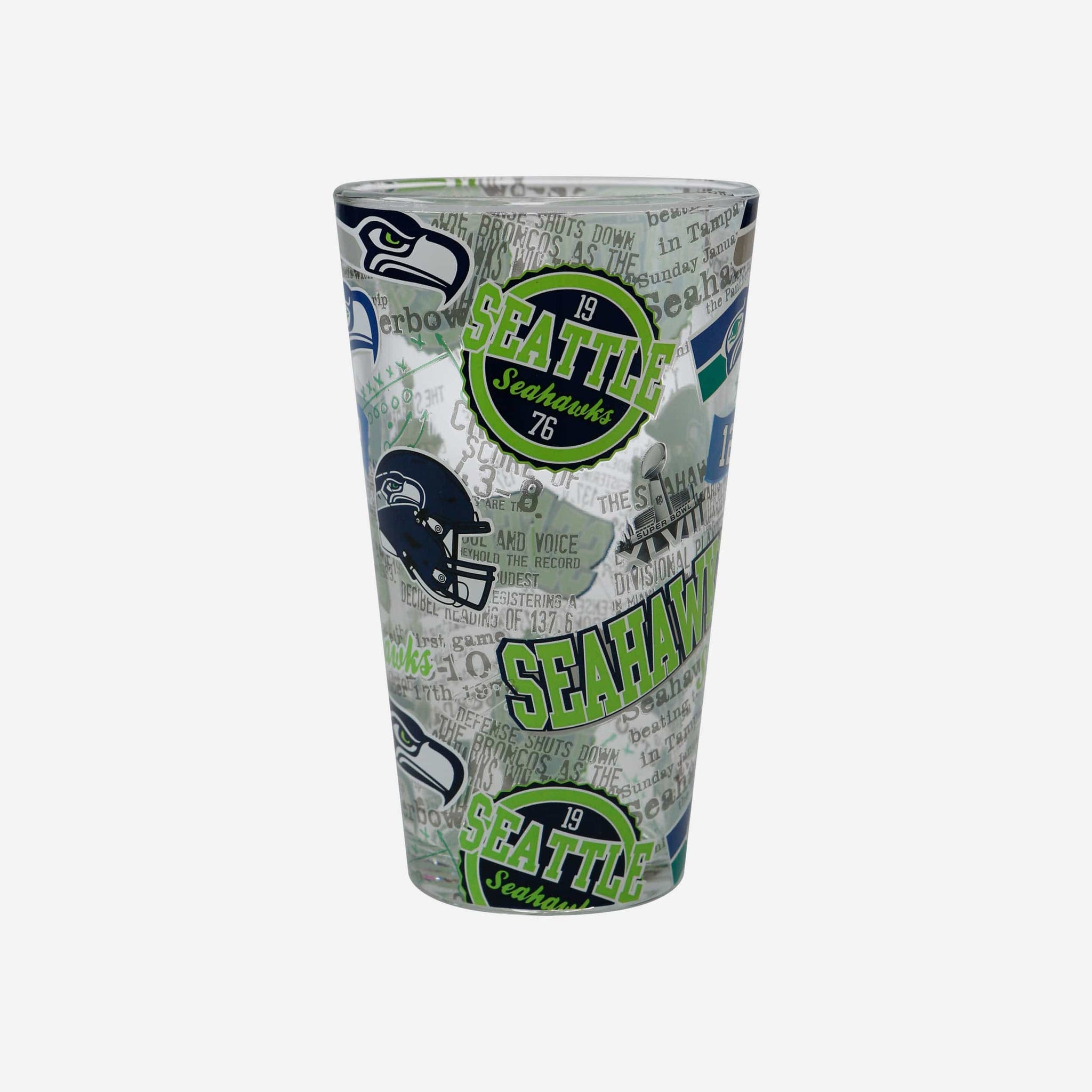 A blast from the past served in one fine pint. Introducing the Seattle Seahawks Historic Print Pint Glass. Let's make history.