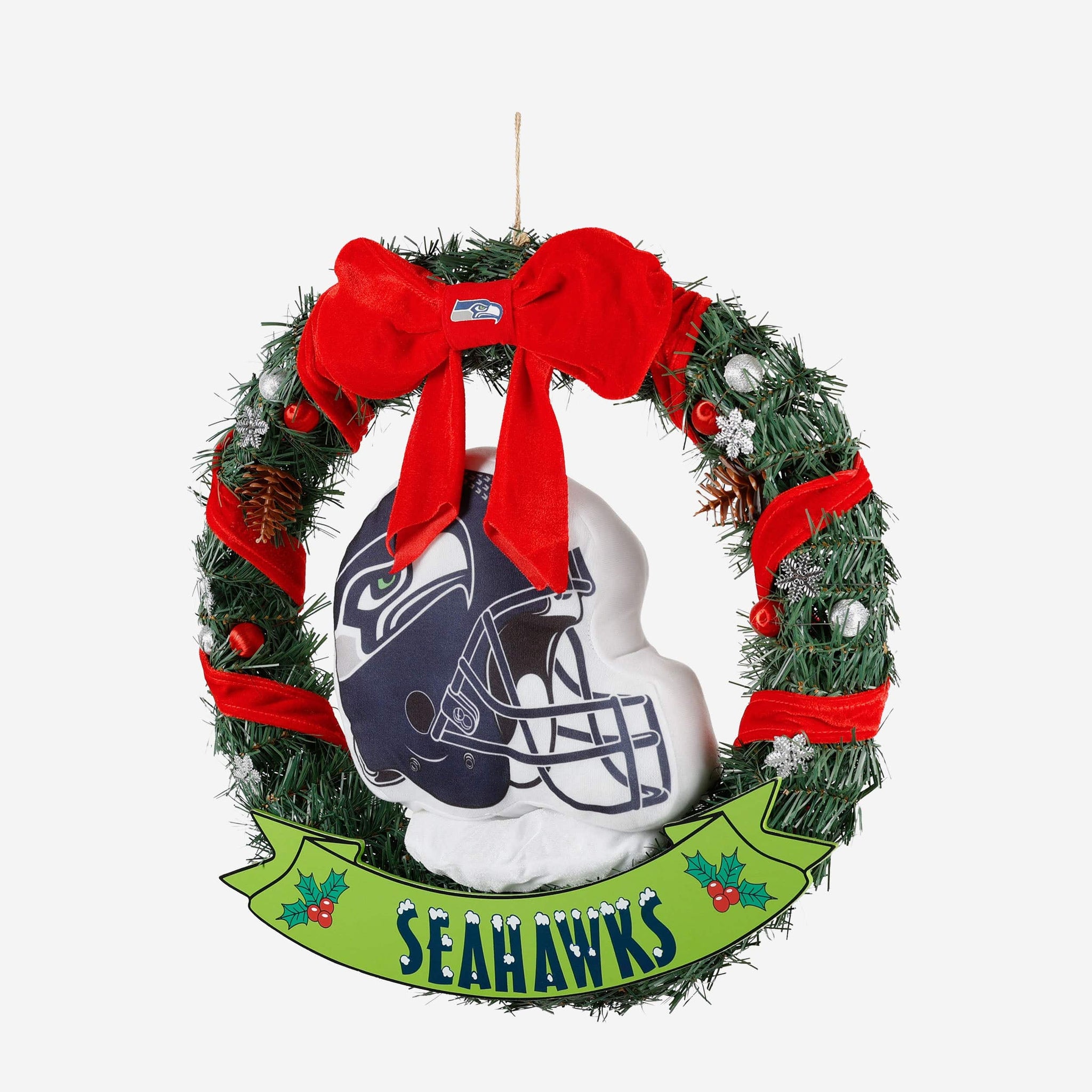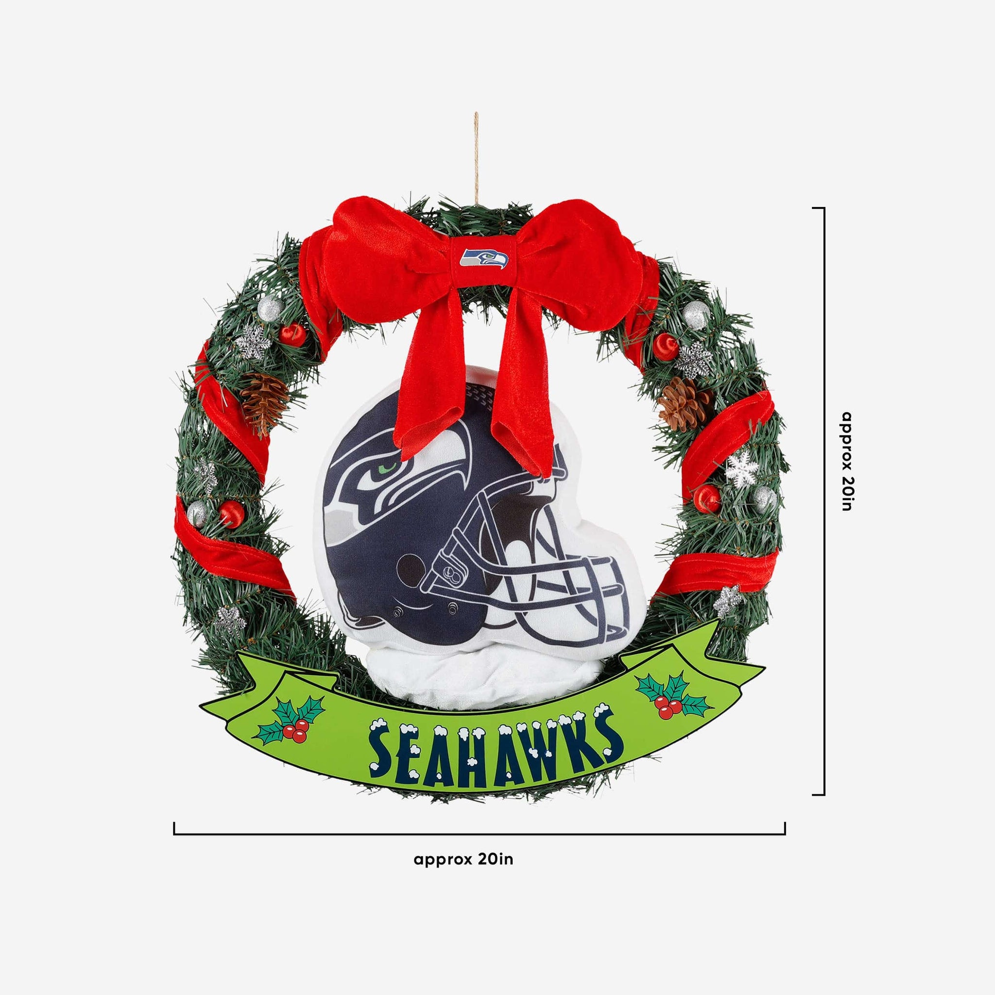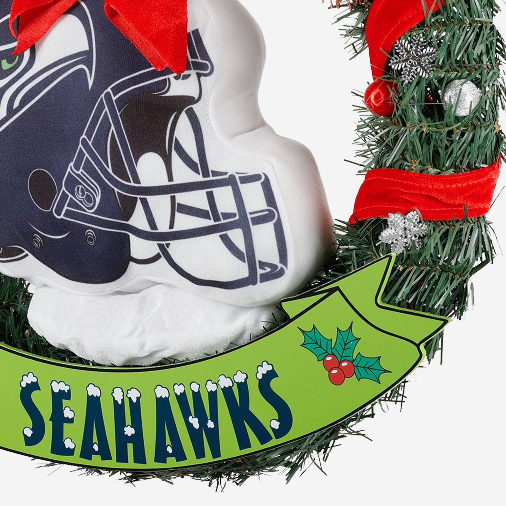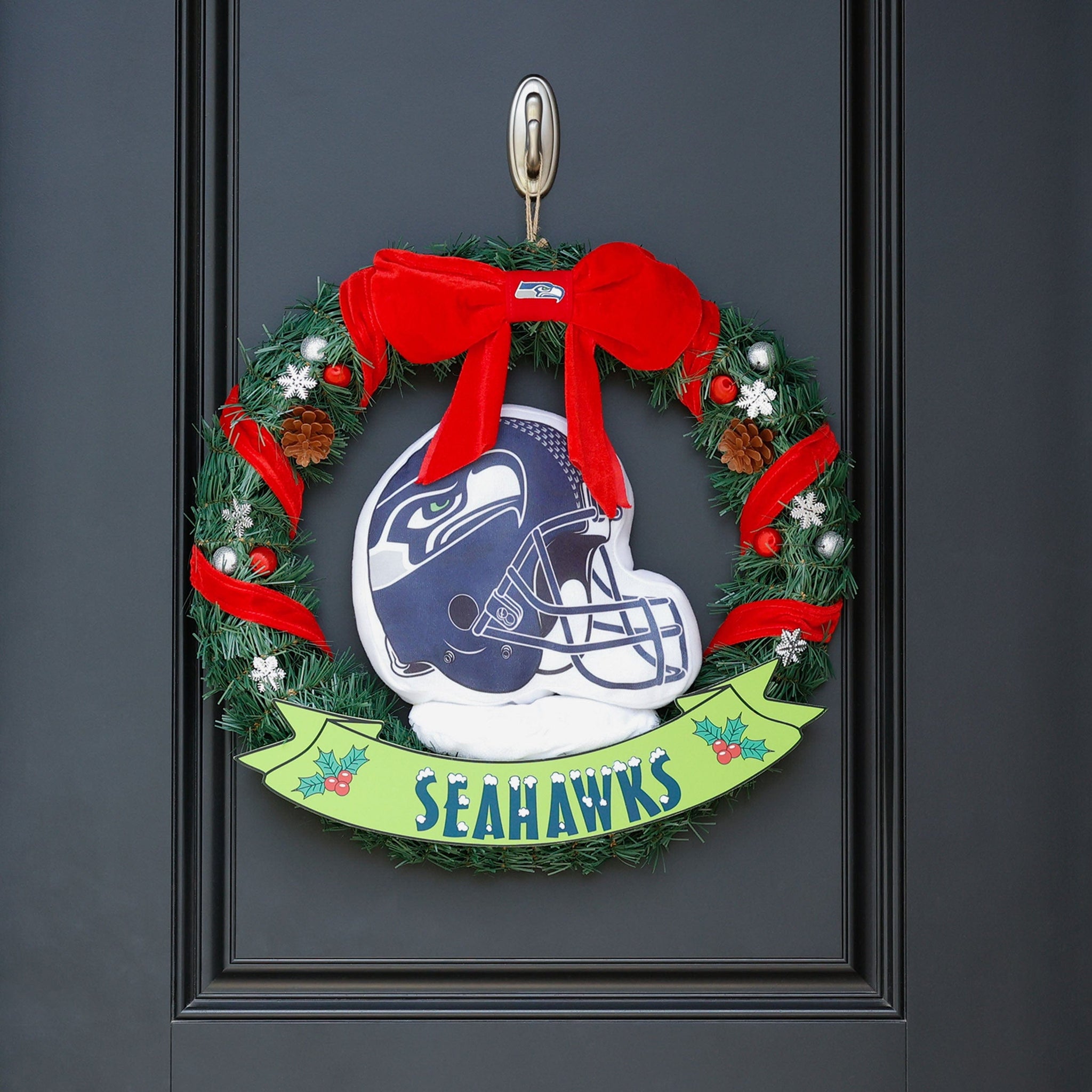 This holiday season, the Seattle Seahawks 20" Holiday Helmet Door Wreath is the perfect way to share some team spirit and holiday spirit with all your guests. Well, most of your guests. We know Santa isn't really keen on doors.