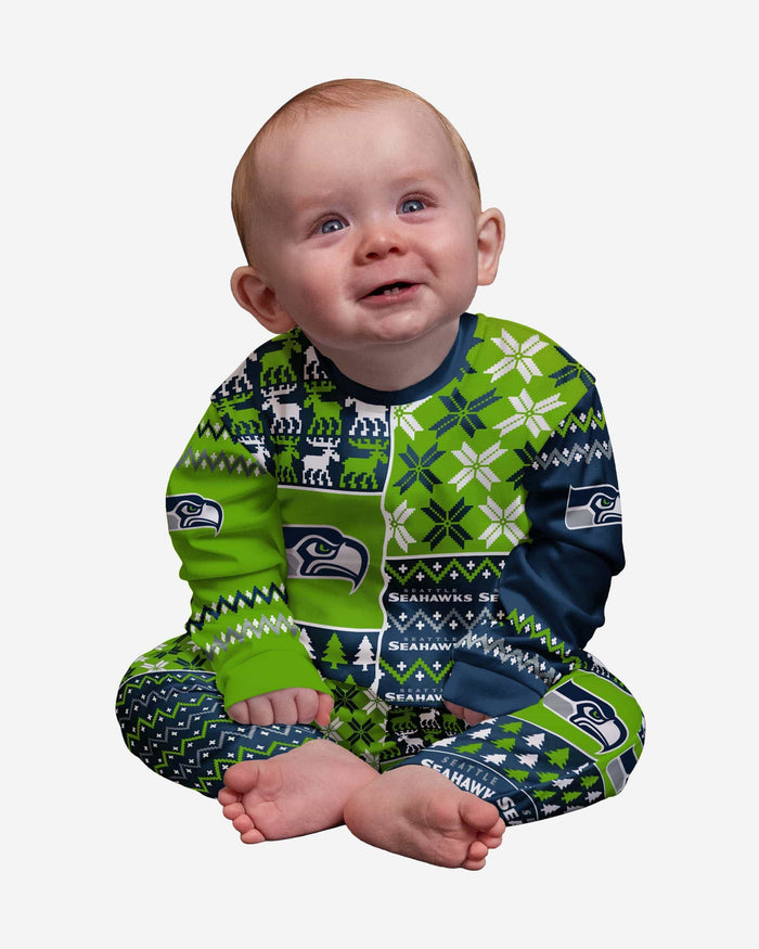 Get your young fan started early this holiday season in these Seattle Seahawks Infant Busy Block Family Holiday Pajamas! Your baby will absolutely love these matching Christmas pajamas! Make sure your infant enjoys sweet dreams filled with holiday joy by having them sleep in infant pajamas. Don't forget to take your holiday photo with the whole family wearing matching Christmas pajamas!