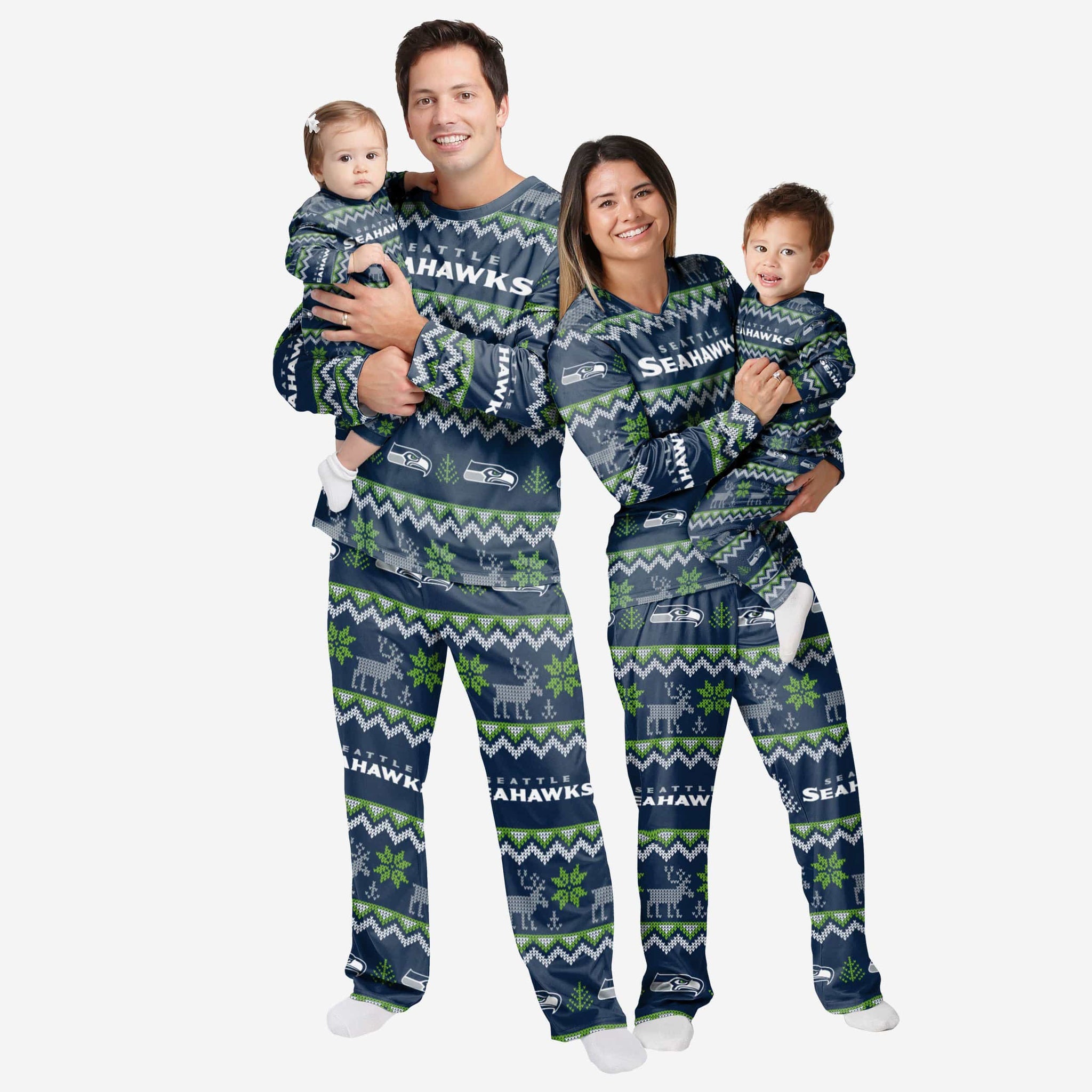 Seattle Seahawks Infant Ugly Pattern Family Holiday Pajamas FOCO - FOCO.com