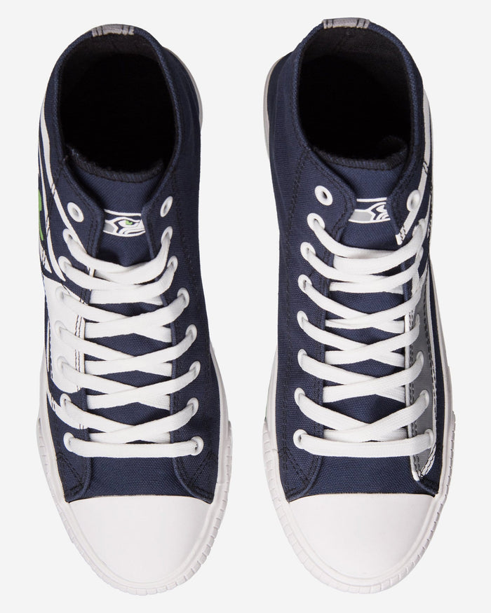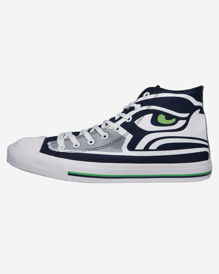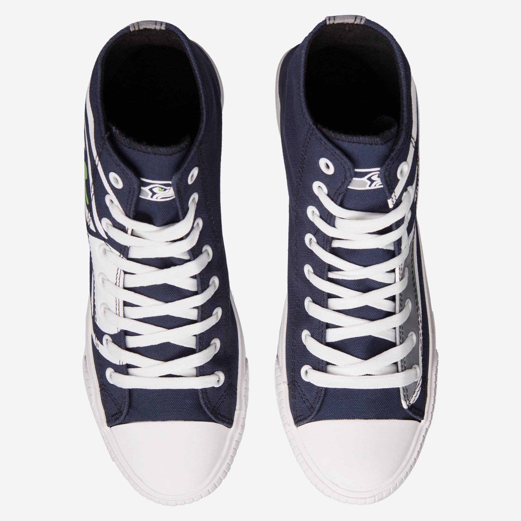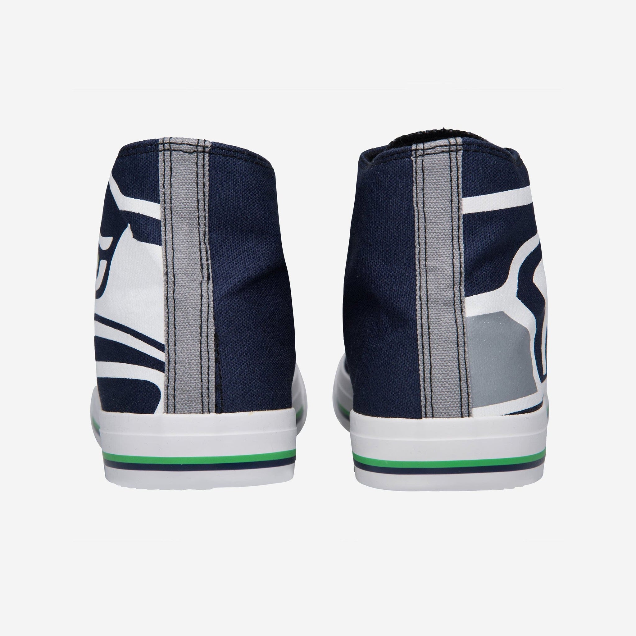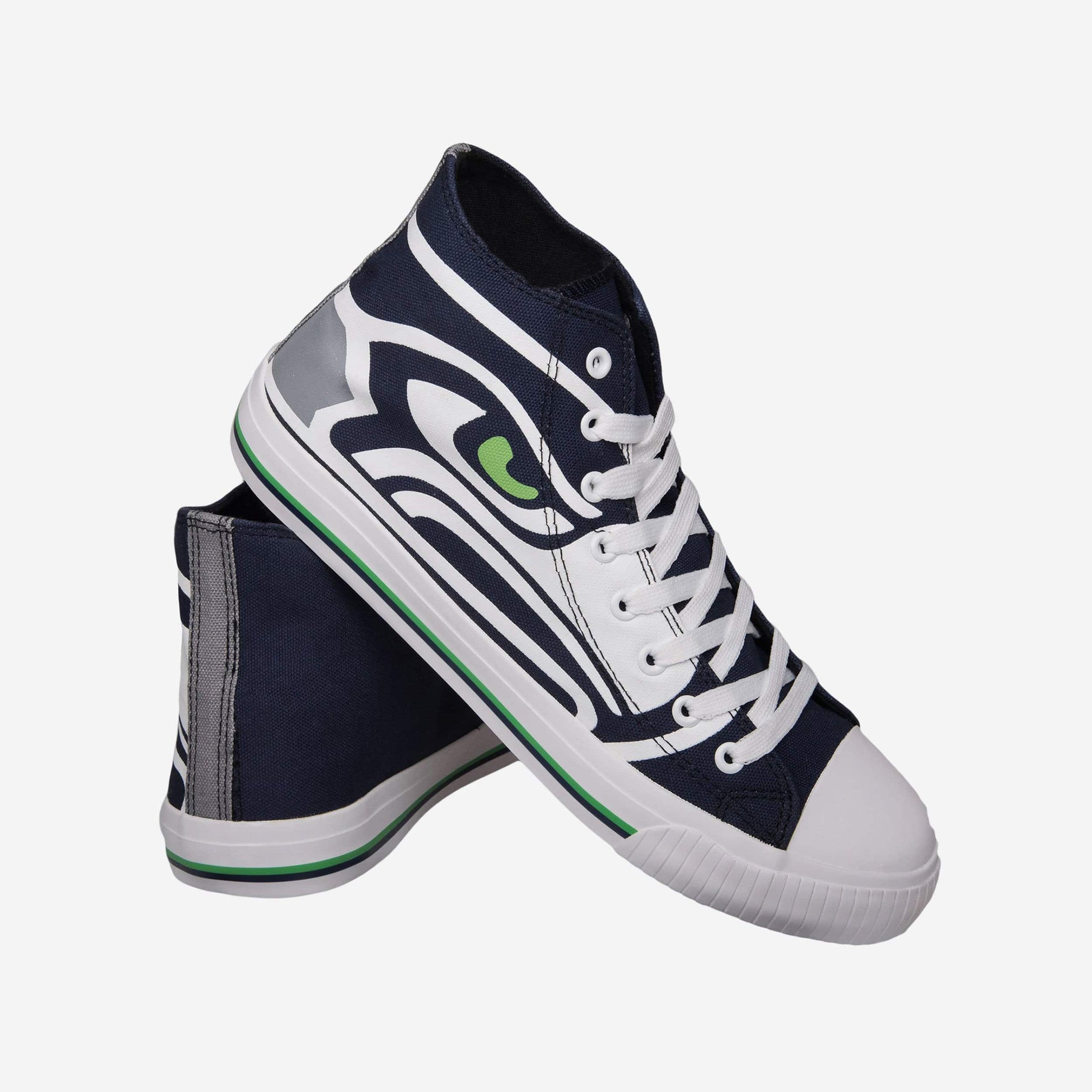 Right now, it's a day ending in "y", which means it's a beautiful day to be a fan. Get ready and get on your feet - a task made much easier when your feet are in these Seattle Seahawks Mens High Top Big Logo Canvas Shoes. No one will be questioning where your allegiances lie.