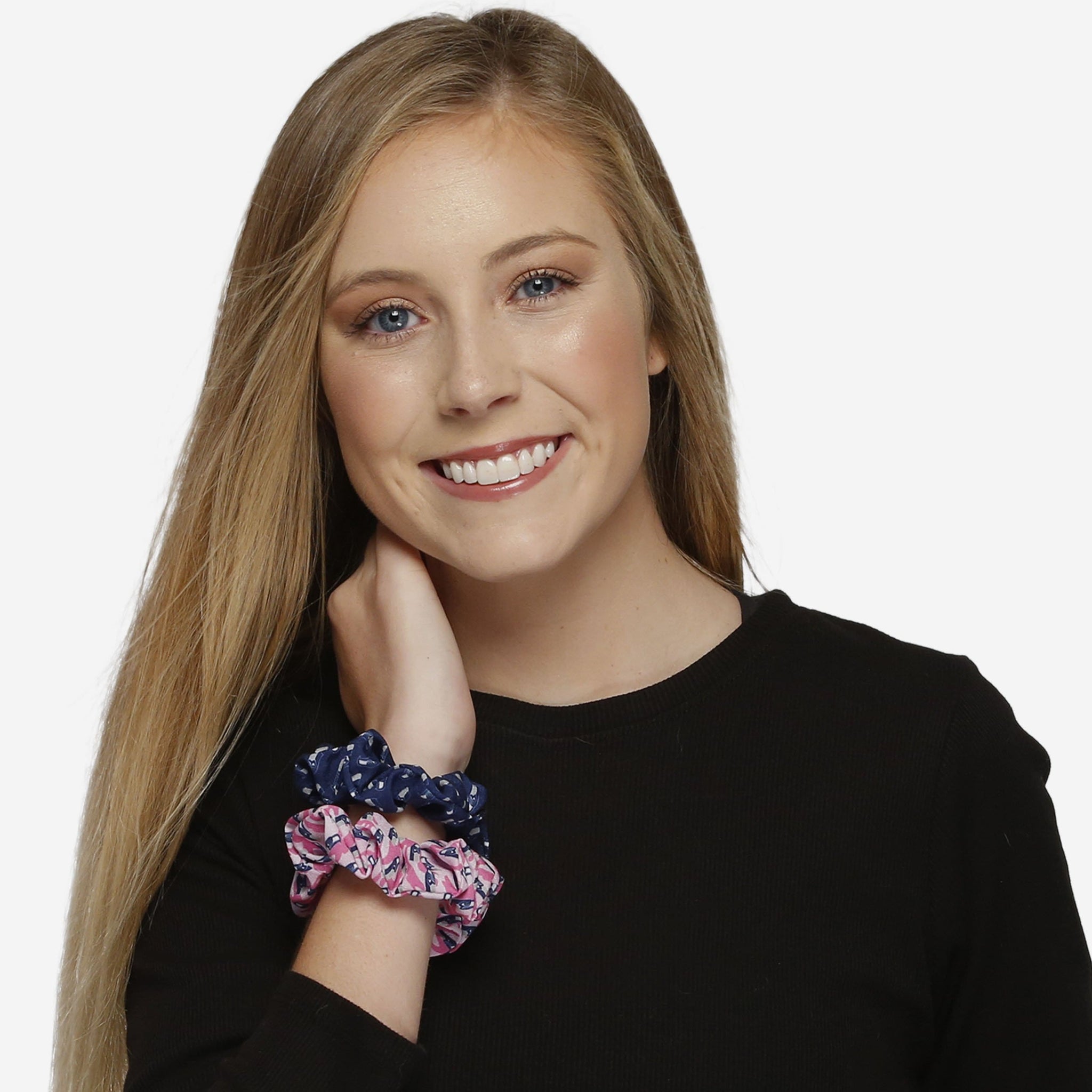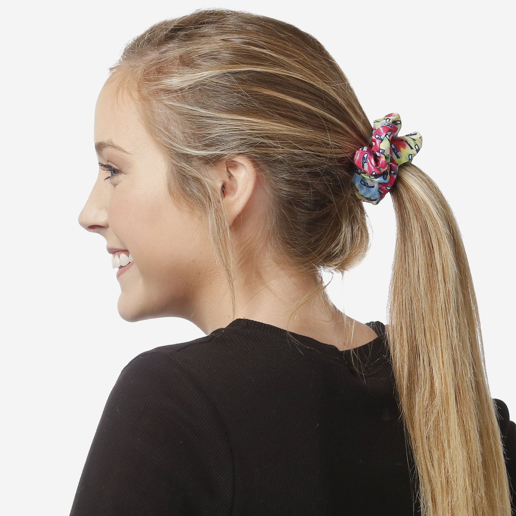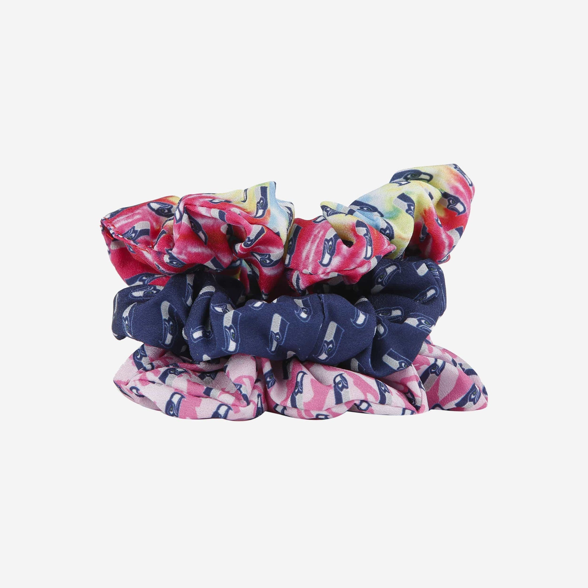 - Three-pack of hair scrunchies with unique designs, because three scrunchies are better than one