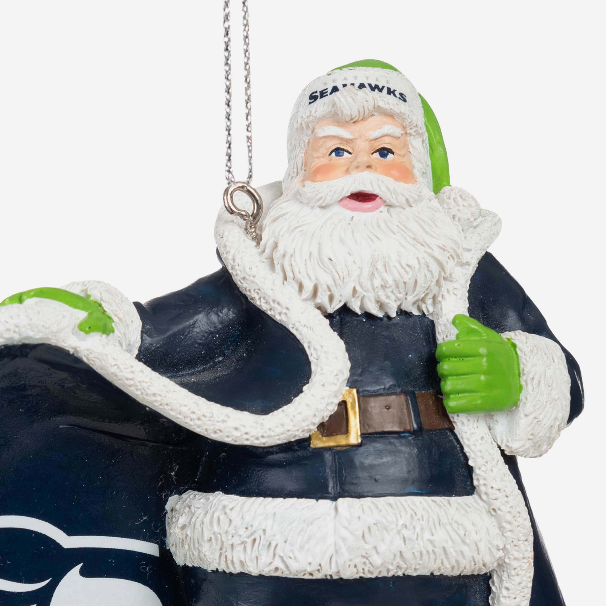 Here comes Santa Claus! Add jolly ol' St. Nick to your Christmas tree's lineup with this Seattle Seahawks Photoprint Santa Ornament!