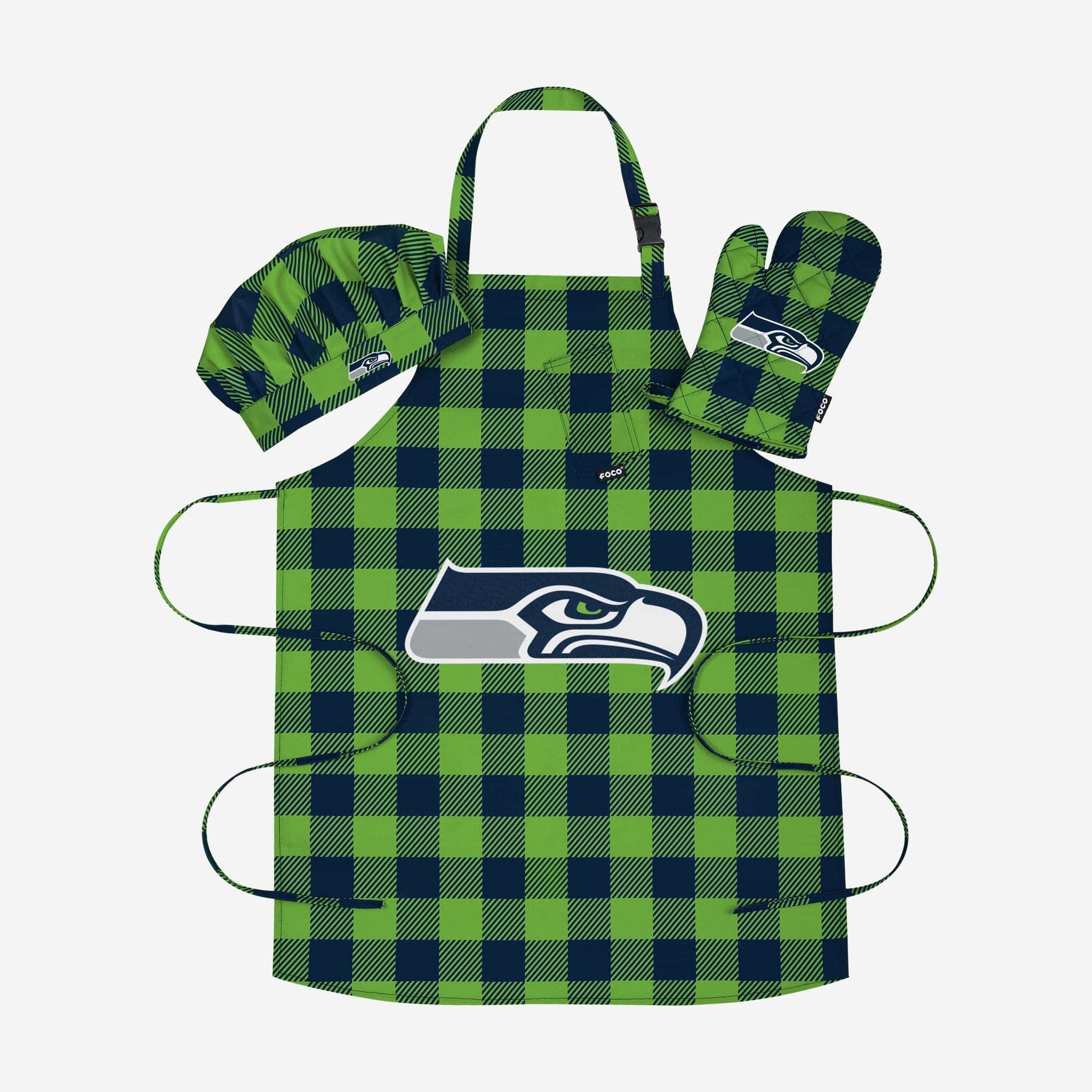Get ready to serve up the best food in the greatest fan fit. From the kitchen, to the table, to game day, do it all in style with the Seattle Seahawks Plaid Chef Set.