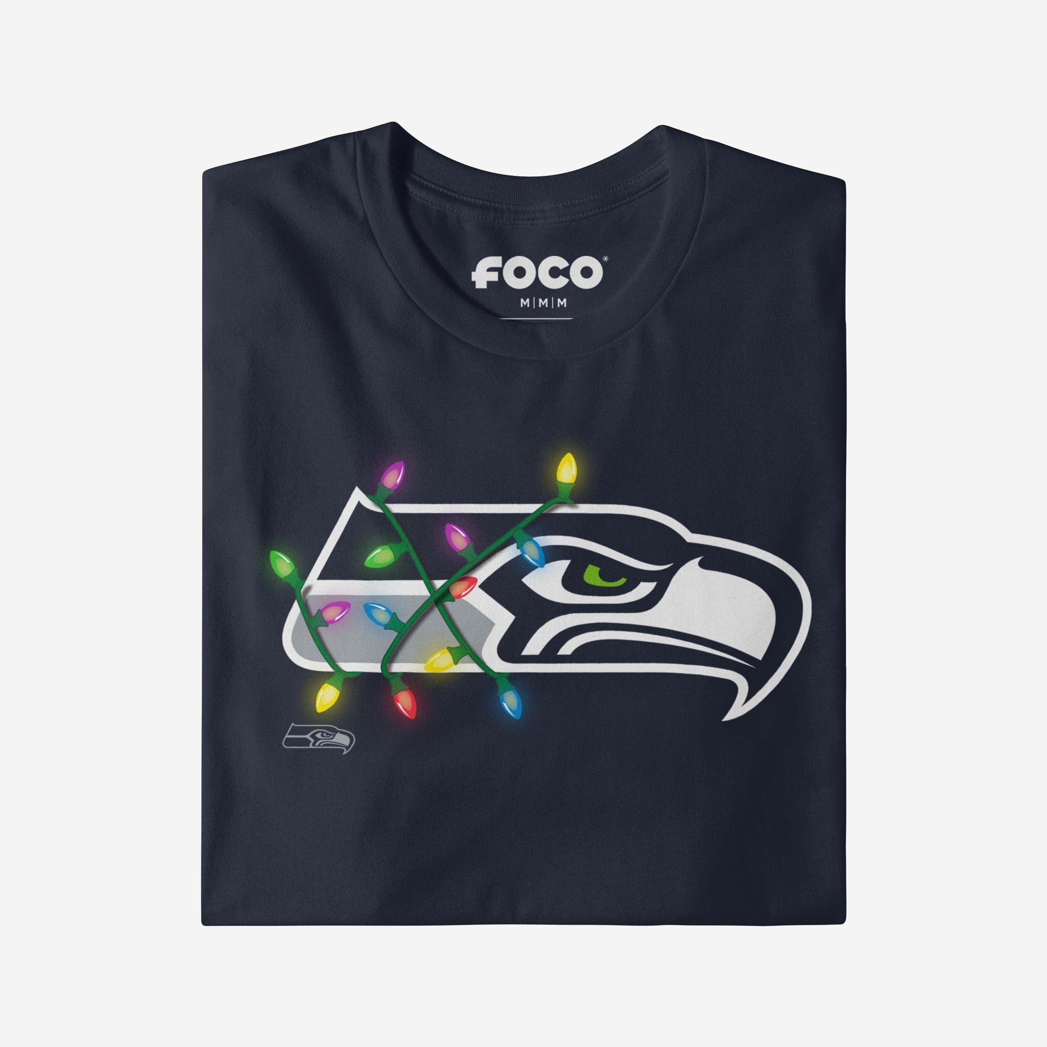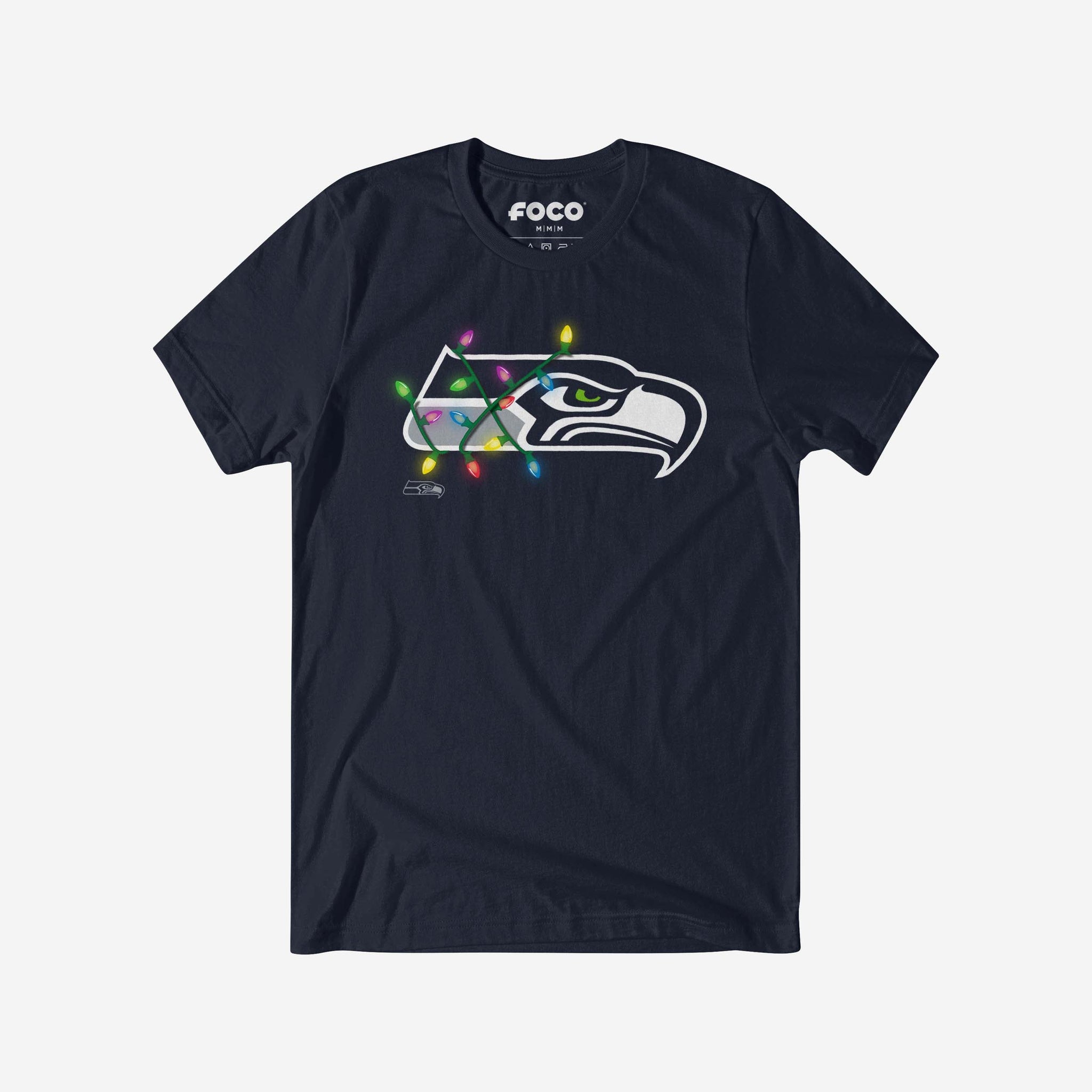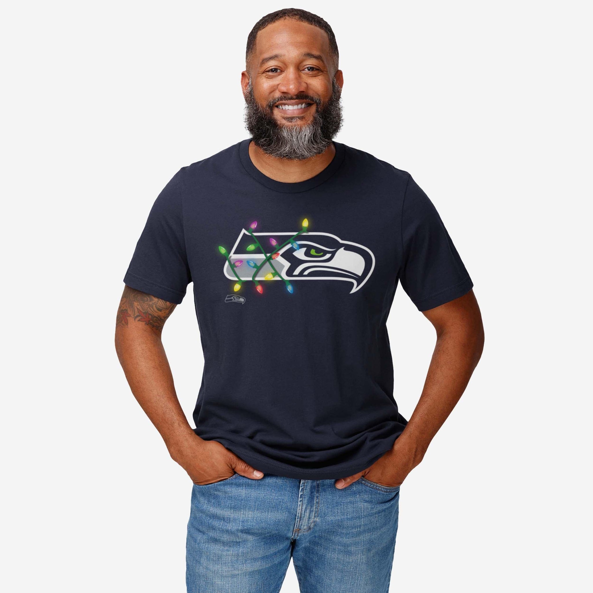 Merry, bright, and full of team spirit! Let your fandom light the way to a legendary holiday season with this Seattle Seahawks Primary Logo Holiday Lights T-Shirt.
