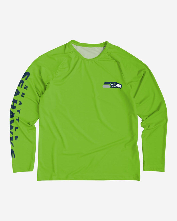 Summer style has never looked so good. Keep your cool and enjoy a day of fun, sun, sand, and surf in this Seattle Seahawks Rash Guard Long Sleeve Swim Shirt!