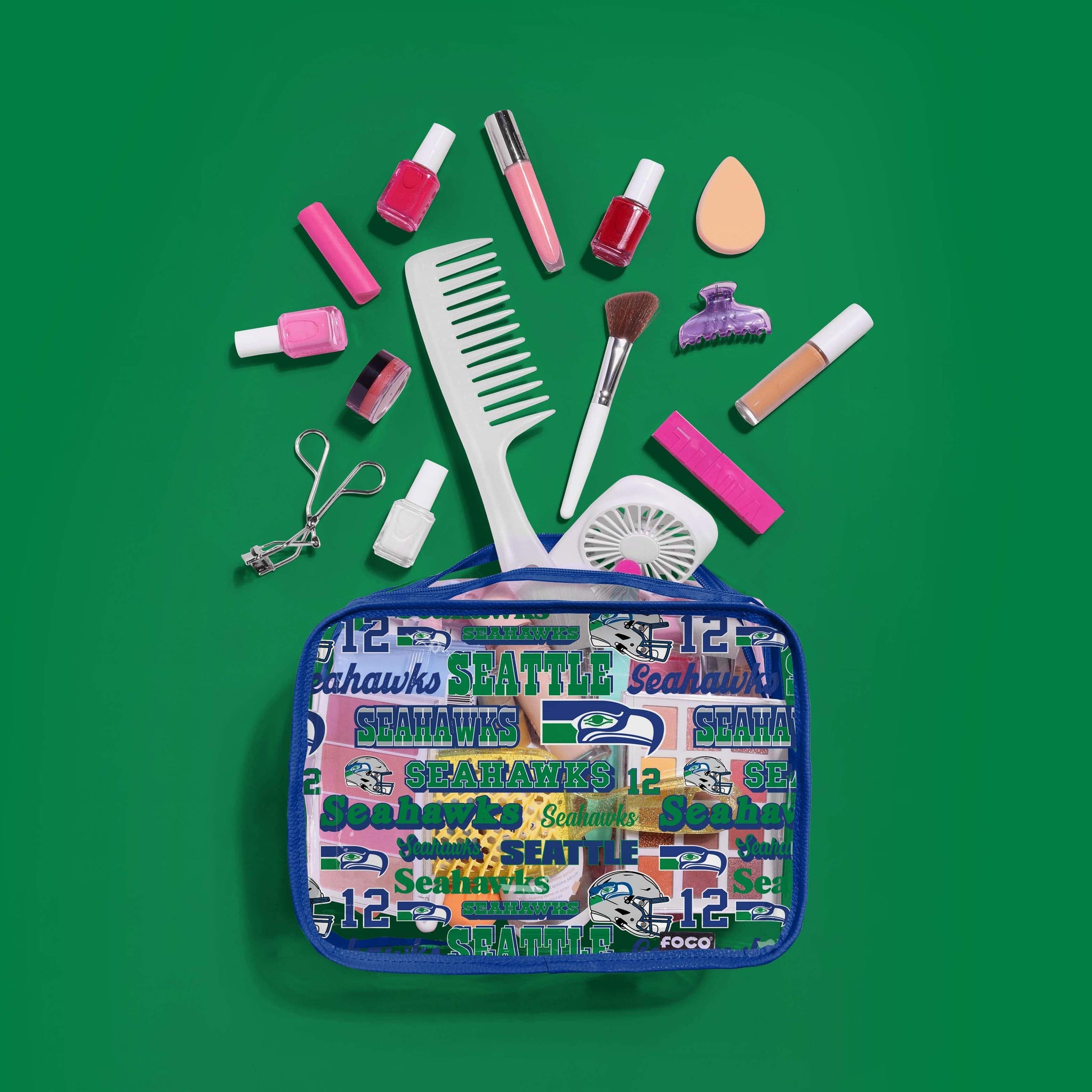 Lipstick. Hair care. Fandom. Get ready to carry it all! Wherever you go, let everyone clearly see which team you root for with a Seattle Seahawks Repeat Retro Print Clear Cosmetic Bag.