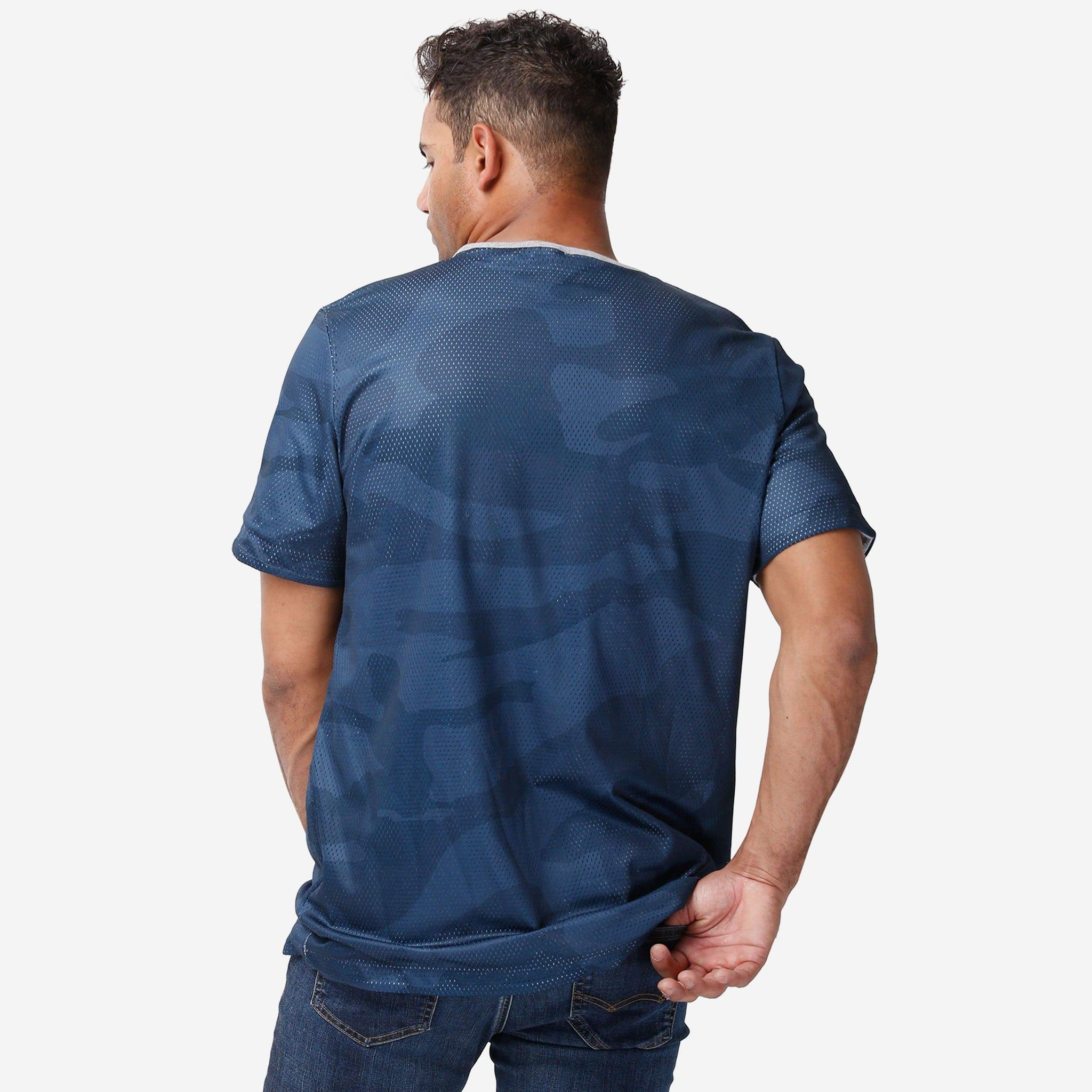 - Side two features team-colored camo mesh design with team logo display on left chest for even more gameday goodness