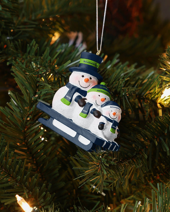 Seattle Seahawks Sledding Snowmen Ornament FOCO - FOCO.com