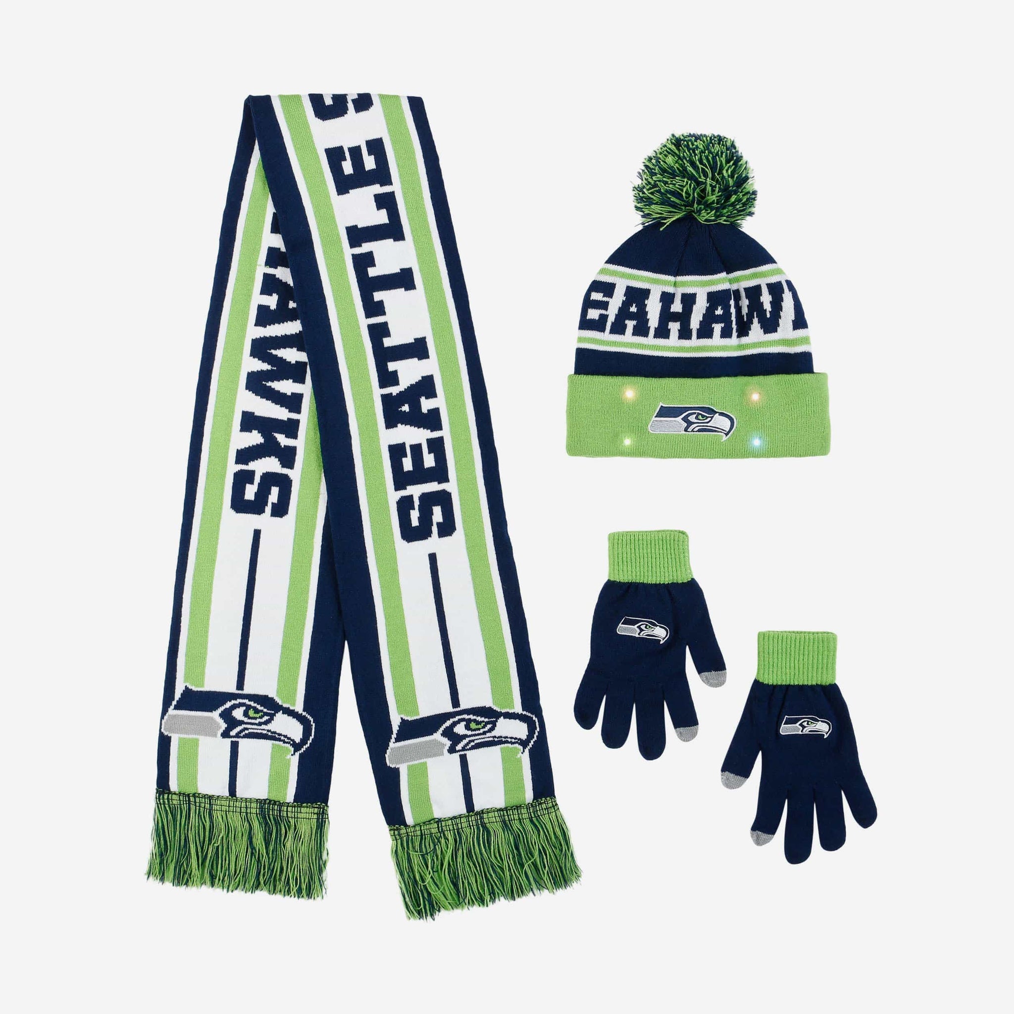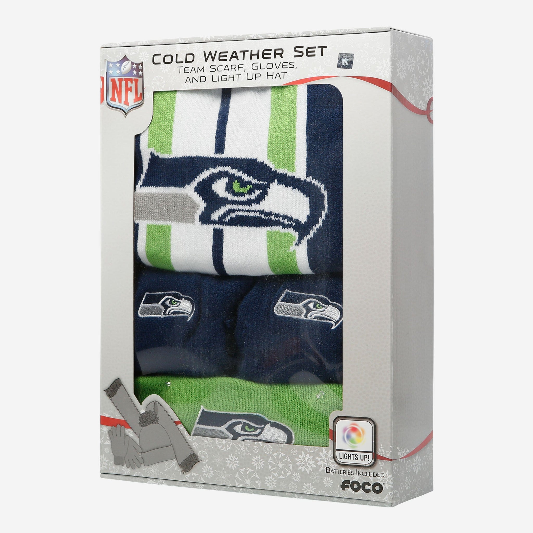 Scarf? Check. Gloves? Check. Light up beanie? You guessed it - Check. Show the snow who's boss with this Seattle Seahawks Snow Stealer Cold Weather Set!