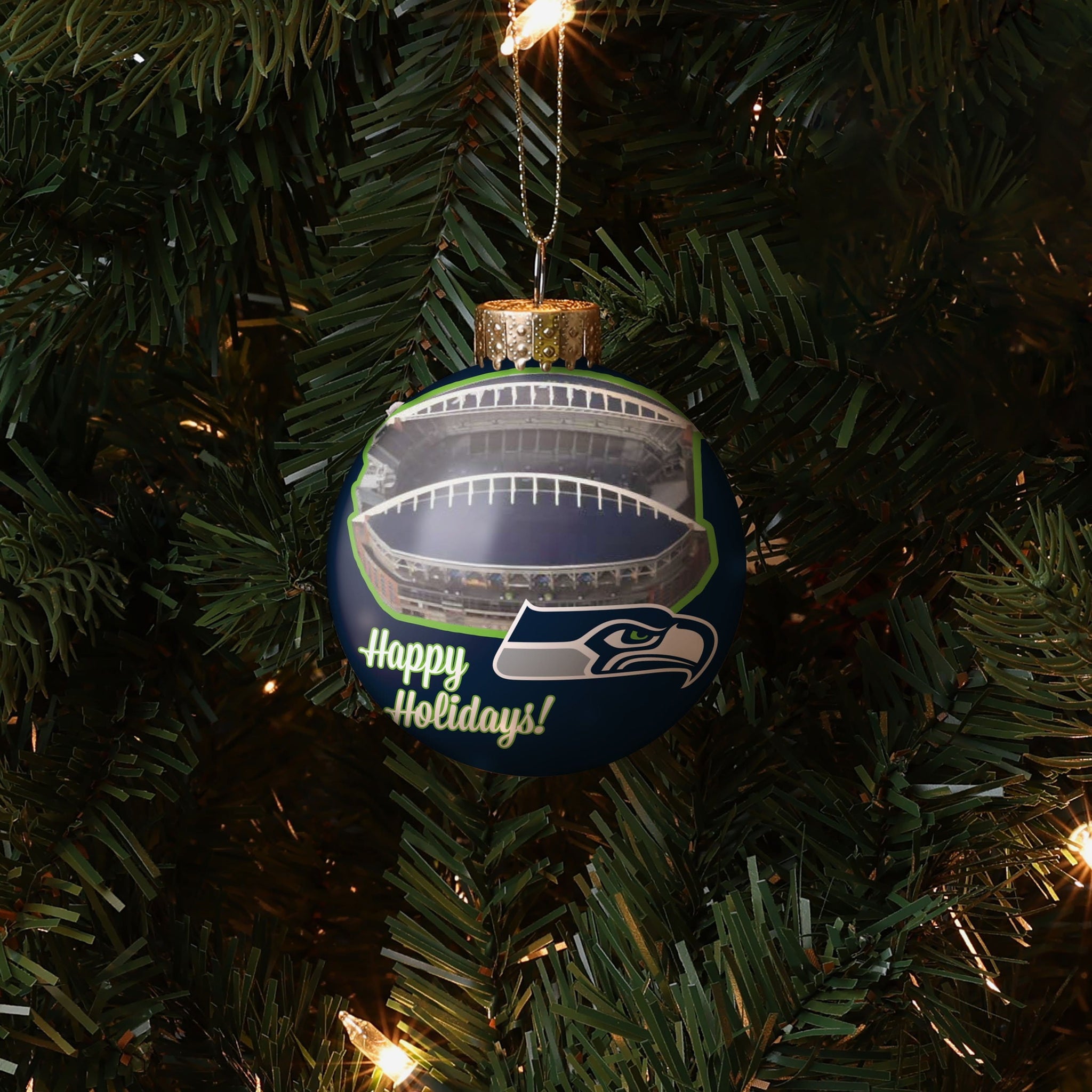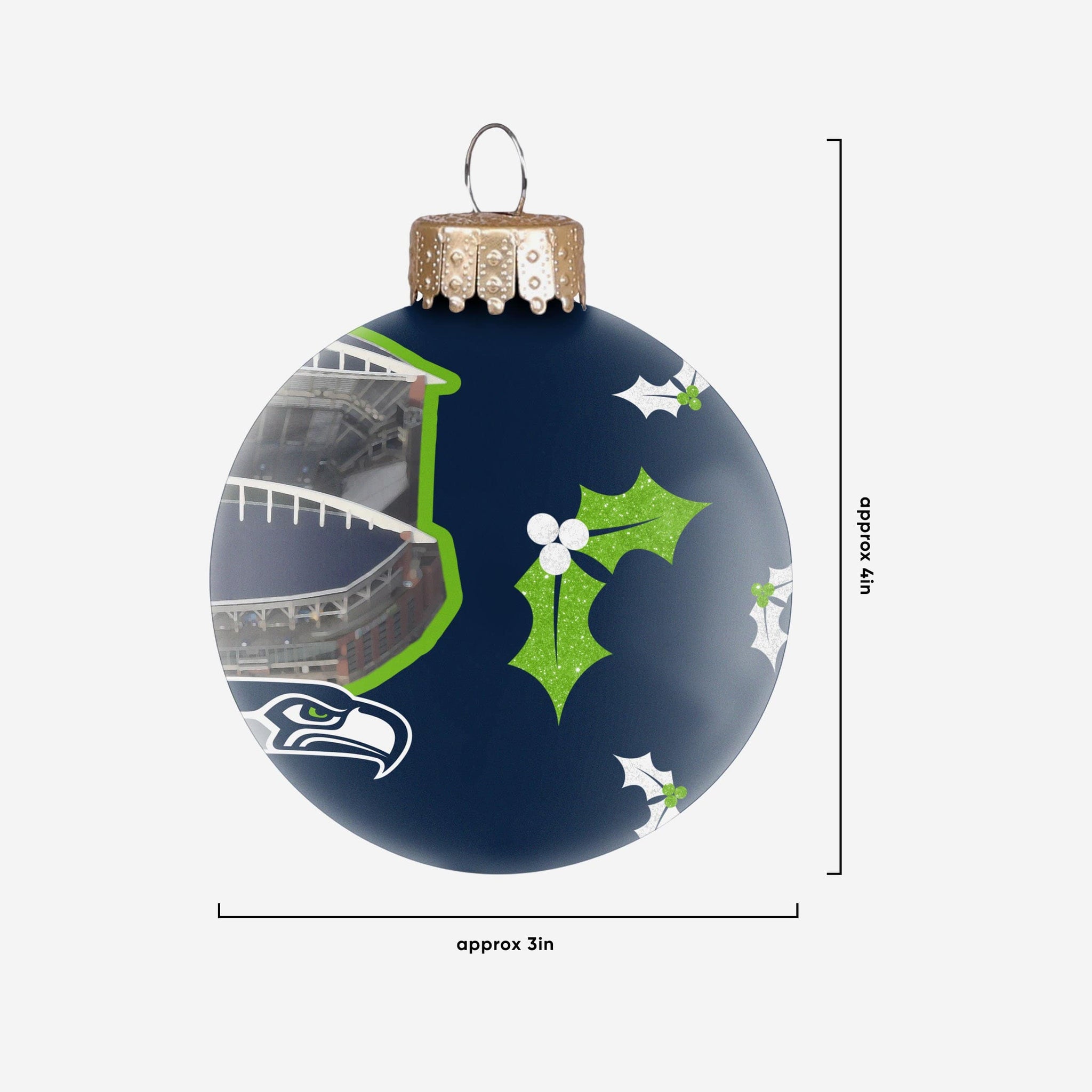 Bring some home field advantage to your home for the holidays. Now every day will feel like gameday during the holidays with this Seattle Seahawks Stadium Print Glass Ball Ornament on display!