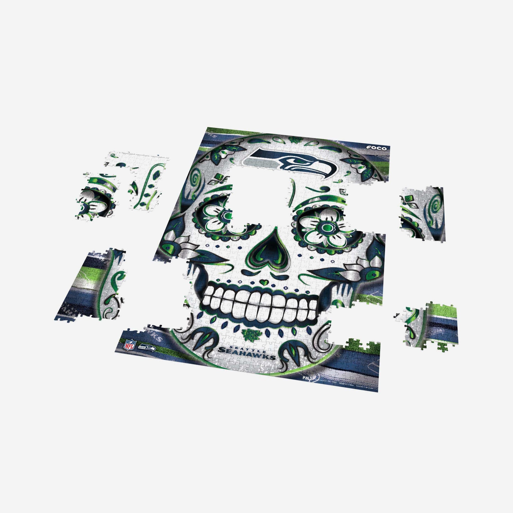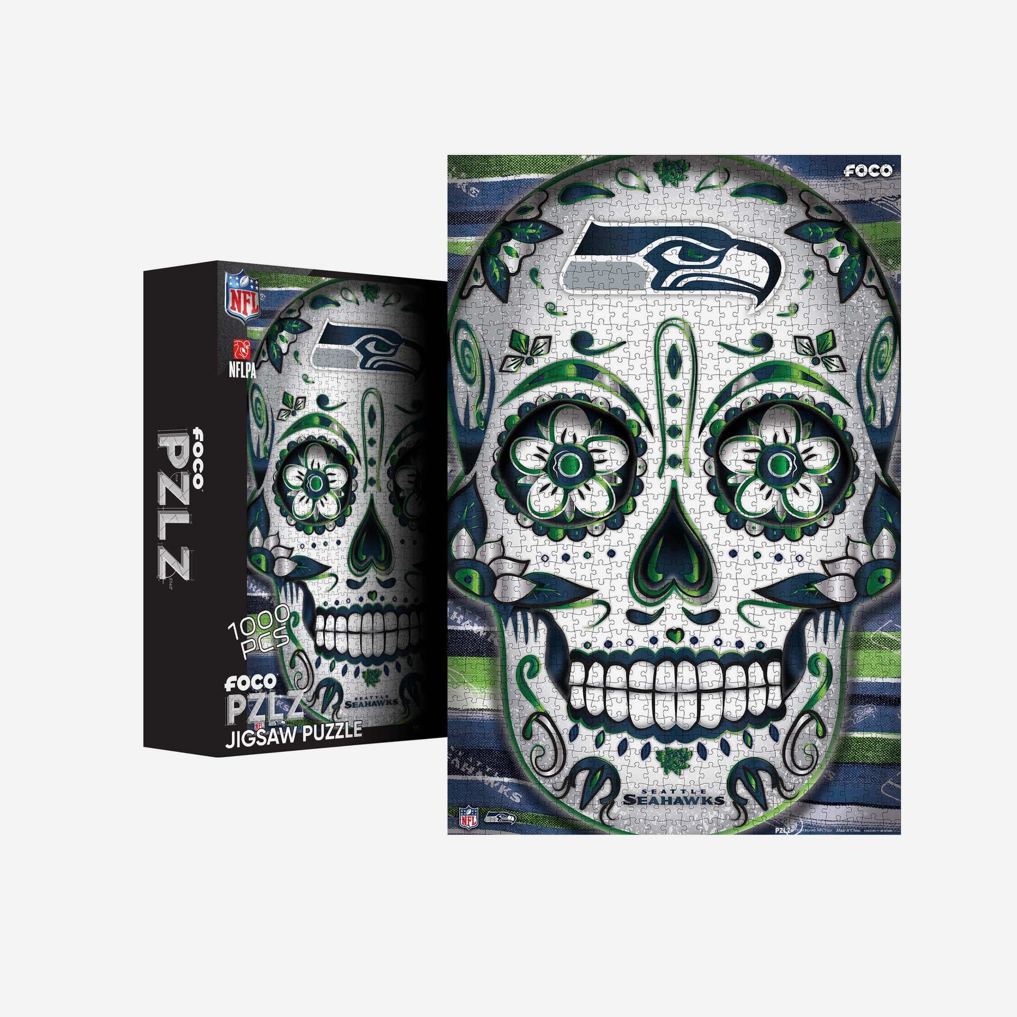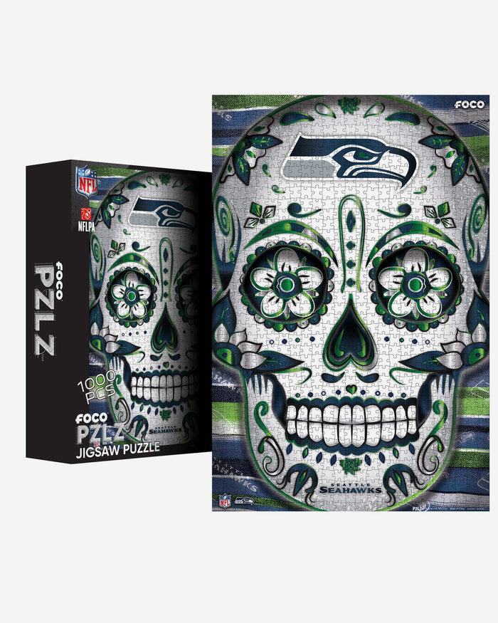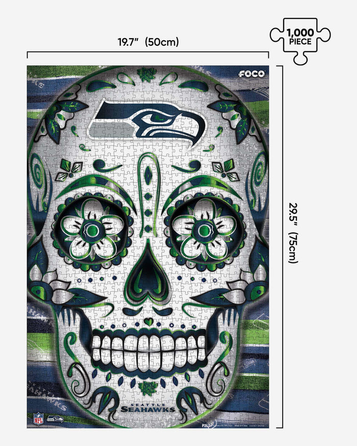 Piece and love! This Seattle Seahawks Sugar Skull 1000 Piece Jigsaw PZLZ is the perfect stay-at-home fun for the whole family.