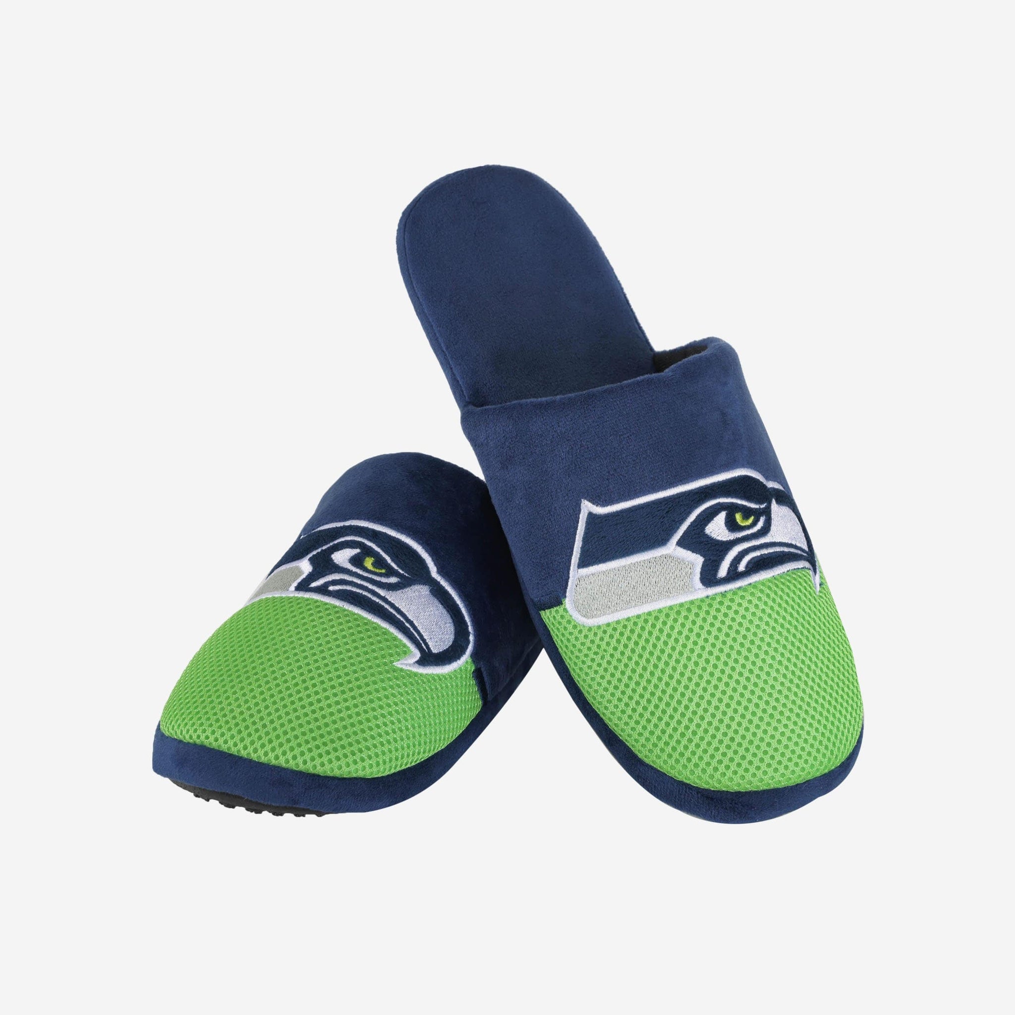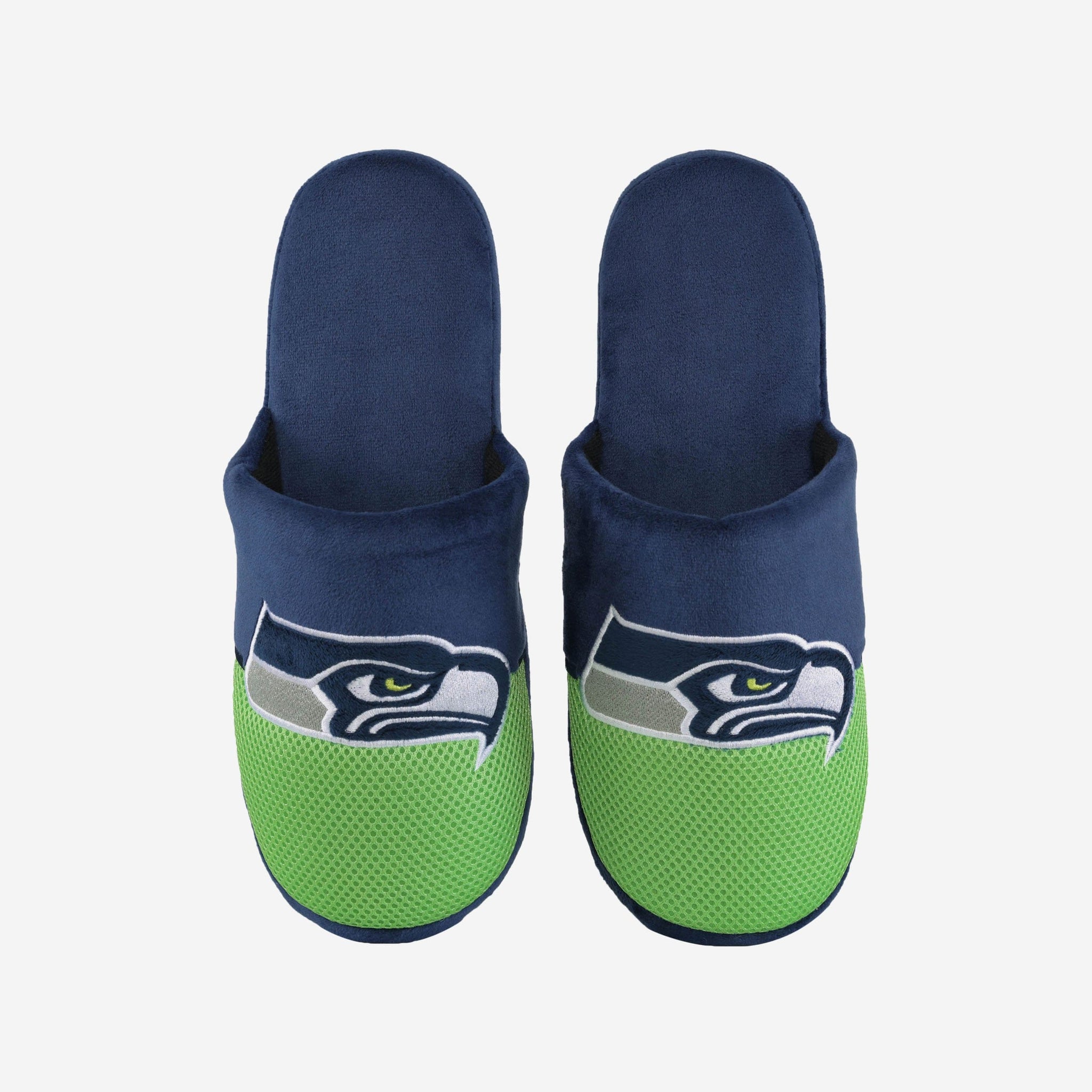 Staycation's all you ever wanted! Make every relaxing day at home feel like a day in paradise by rocking these Seattle Seahawks Team Logo Staycation Slippers!