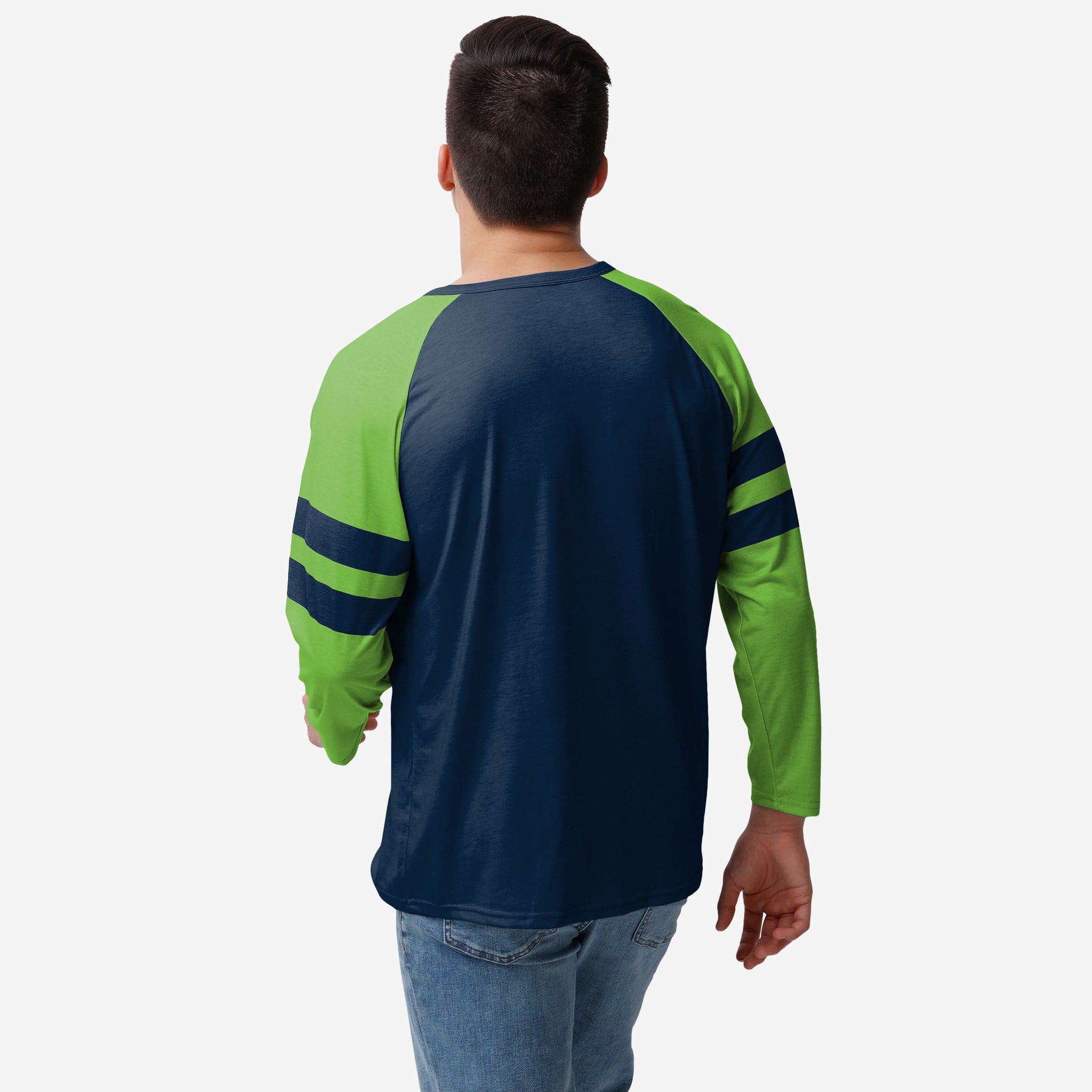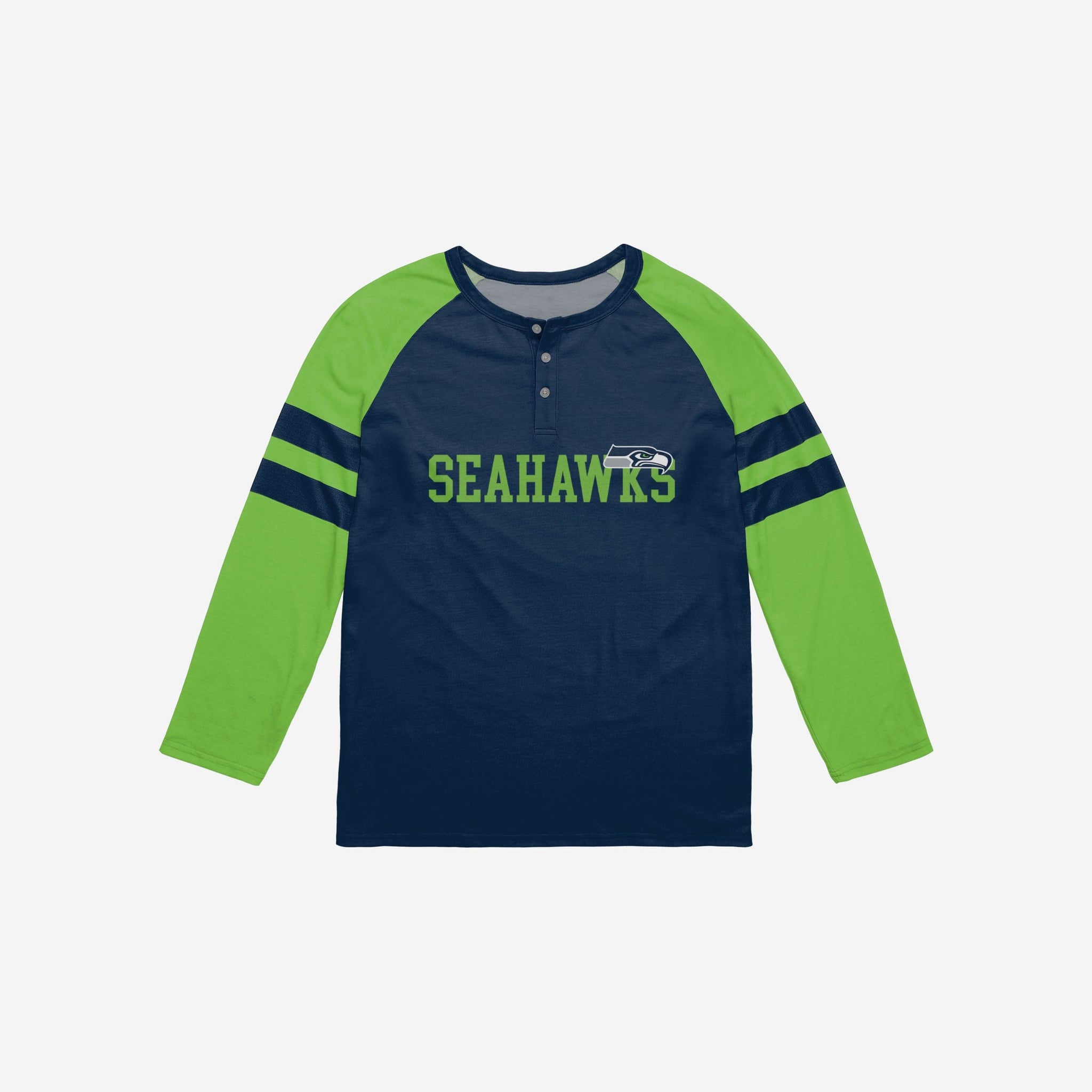 Long sleeves to keep you warm. Sleek style to keep you cool. Bring some sensational style to the game or wherever your team spirit takes you with this Seattle Seahawks Team Stripe Wordmark Long Sleeve Henley.