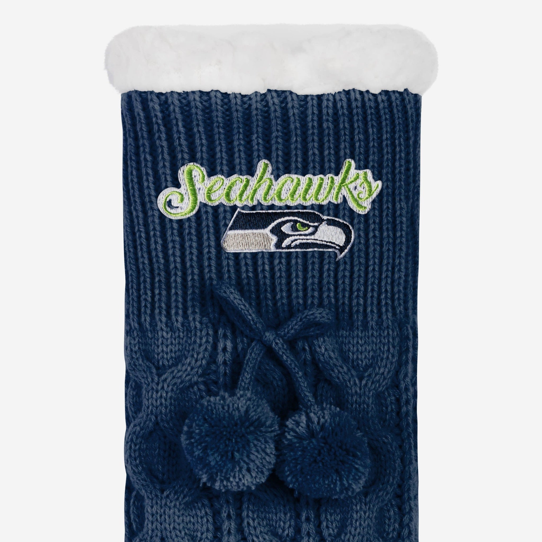 Get ready to rock your socks. Stay warm and cozy on those cold winter days in these Seattle Seahawks Women's Cable Knit Footy Slipper Socks!
