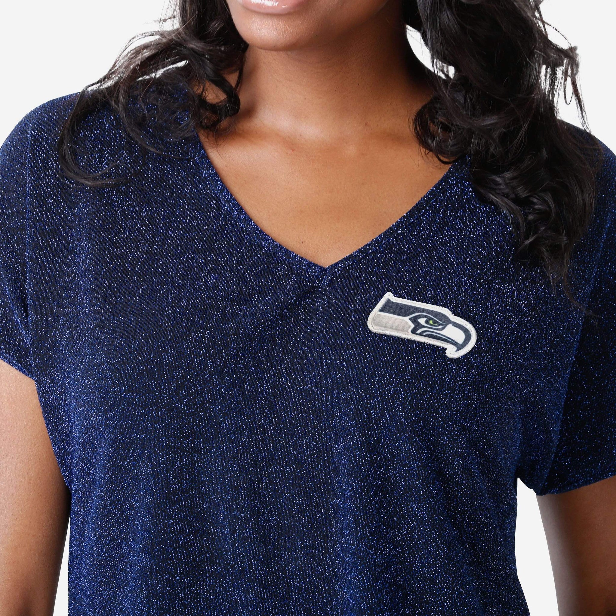 Seattle Seahawks Womens Gametime Glitter V-Neck T-Shirt FOCO S - FOCO.com