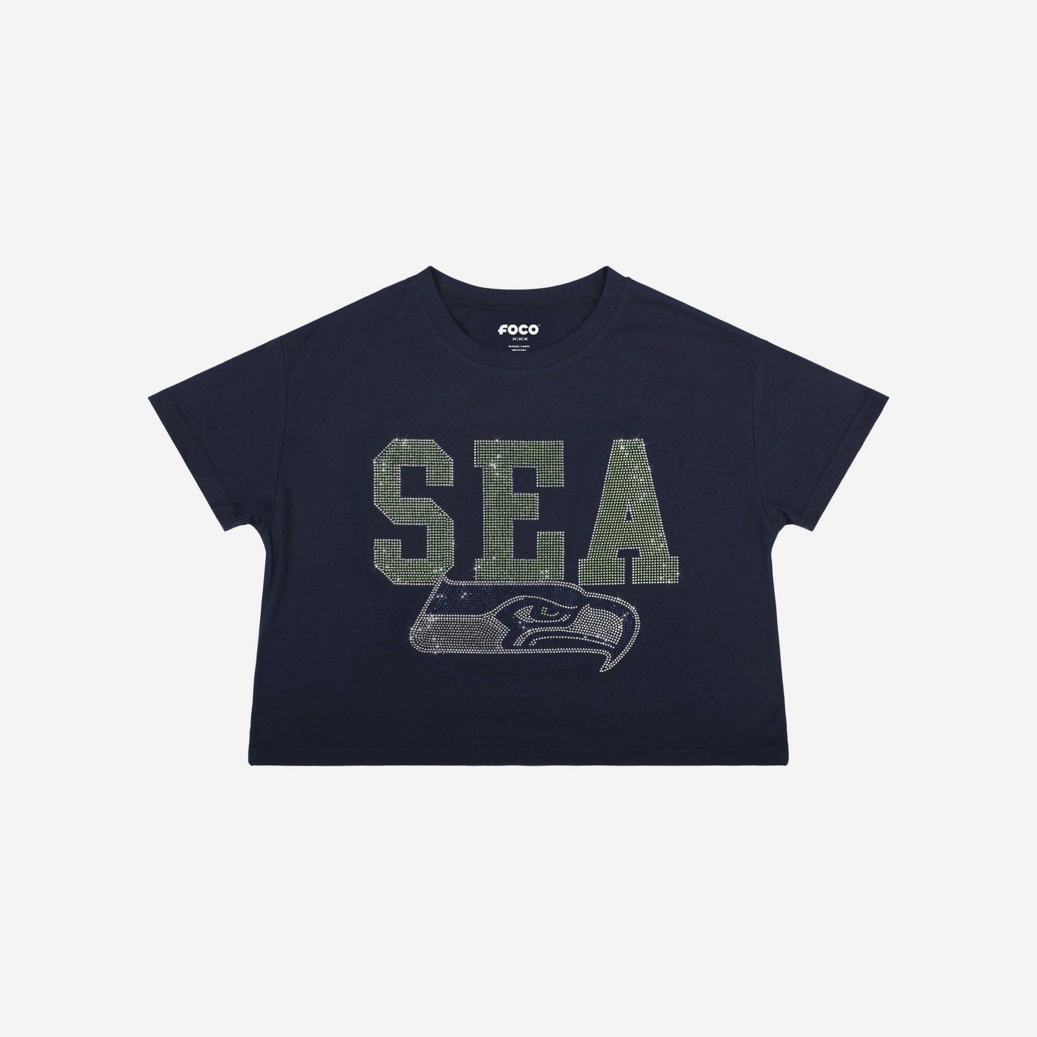 Seattle Seahawks Womens Rhinestone Logo Crop Top FOCO S - FOCO.com