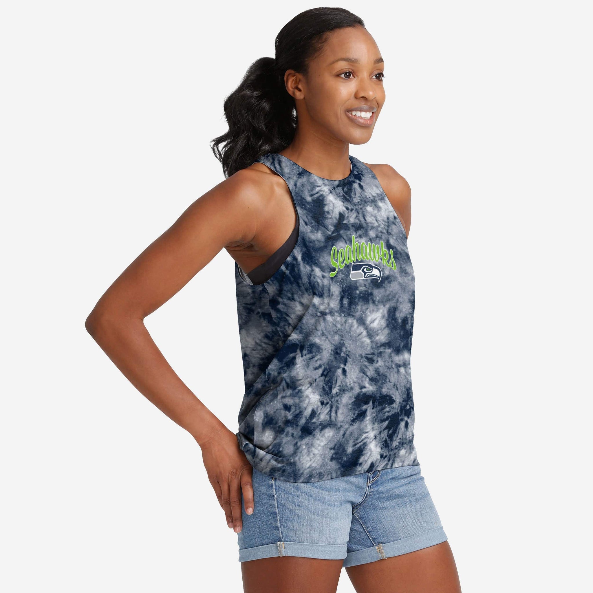 Seattle Seahawks Womens Script Wordmark Tie-Dye Tie-Breaker Sleeveless Top FOCO S - FOCO.com