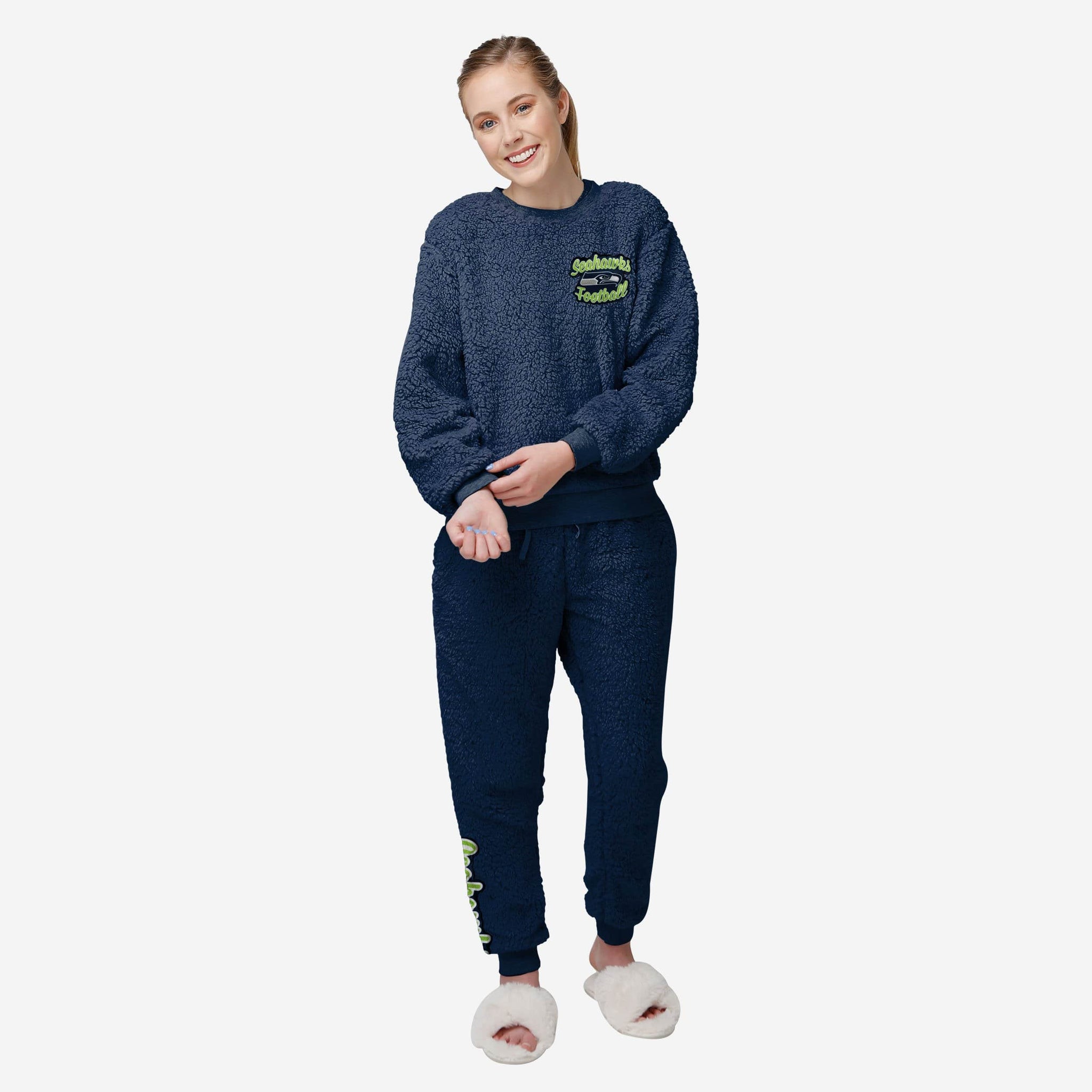 Ready, set, RELAX! Stay in and fan on from the comfort of your couch with this Seattle Seahawks Women's Sherpa Lounge Set.