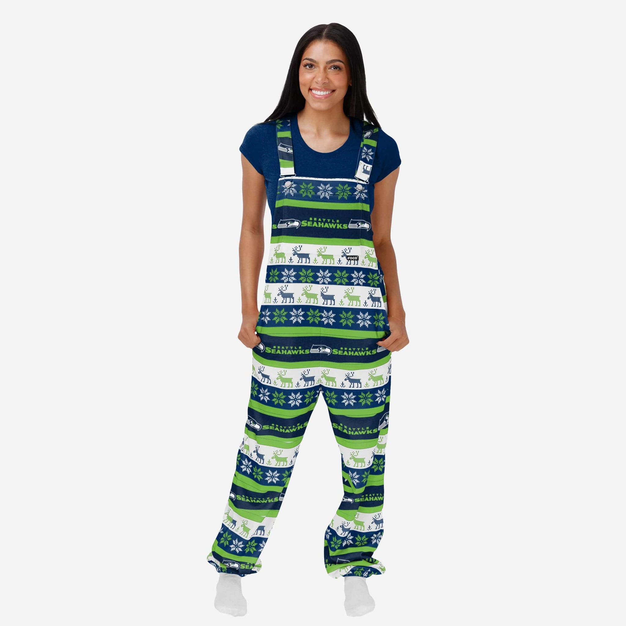 Seattle Seahawks Womens Ugly Home Gating Bib Overalls FOCO XS - FOCO.com
