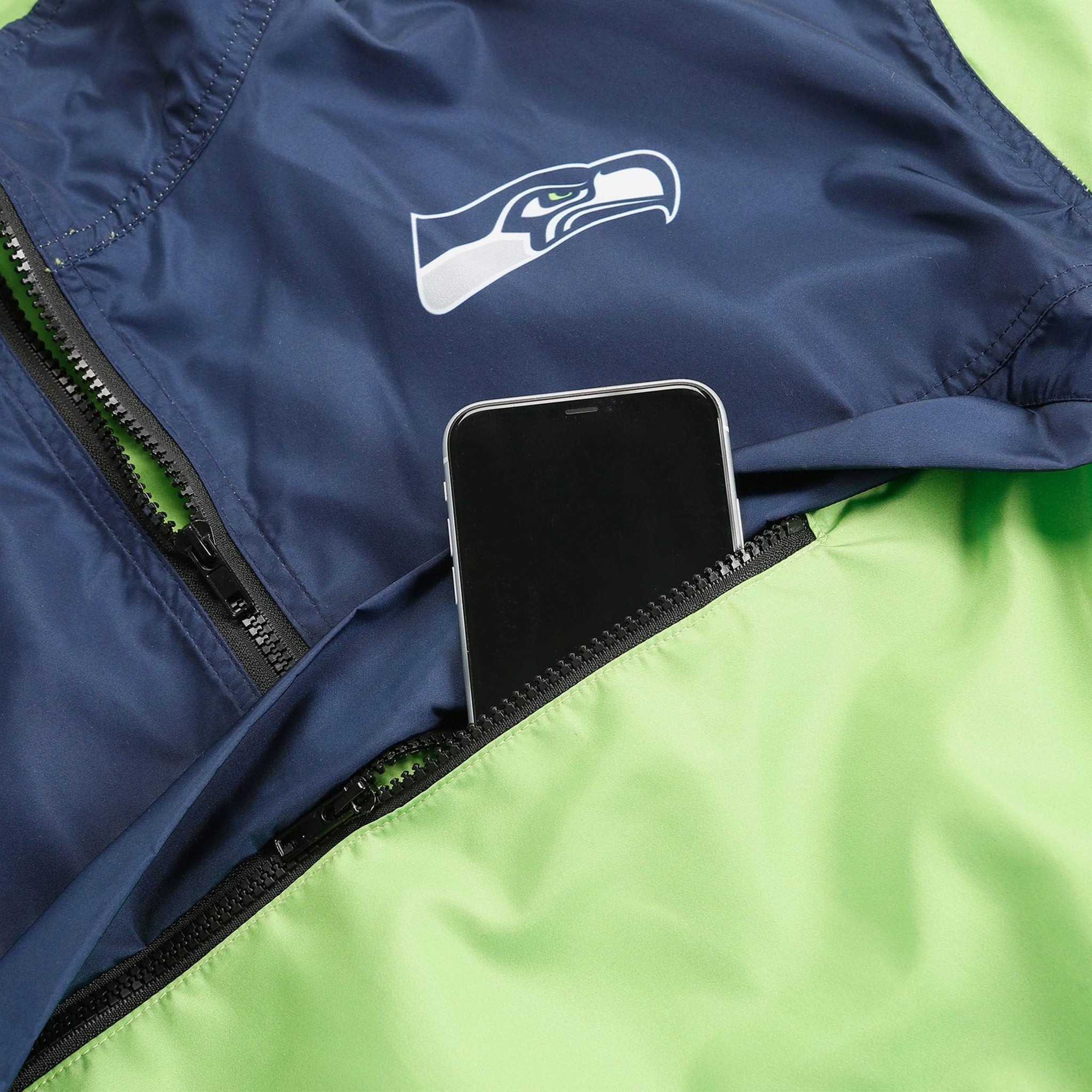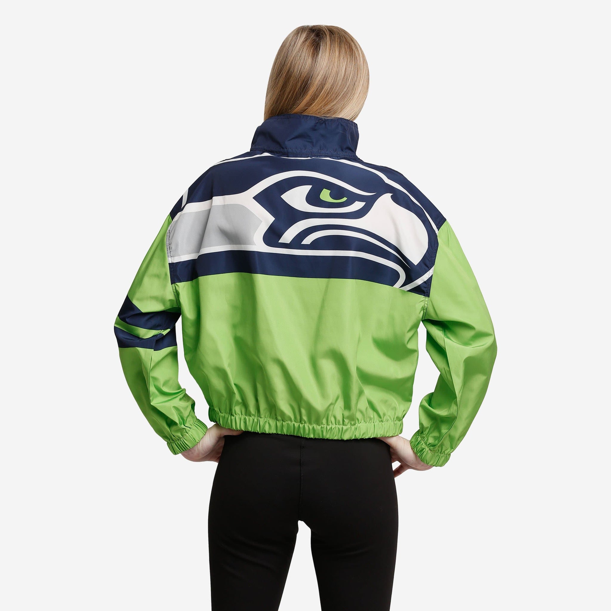 This Seattle Seahawks Women's Winning Play Windbreaker has a bold team logo on the back, so you can show off your team spirit to everyone you leave in the dust while you run the track.