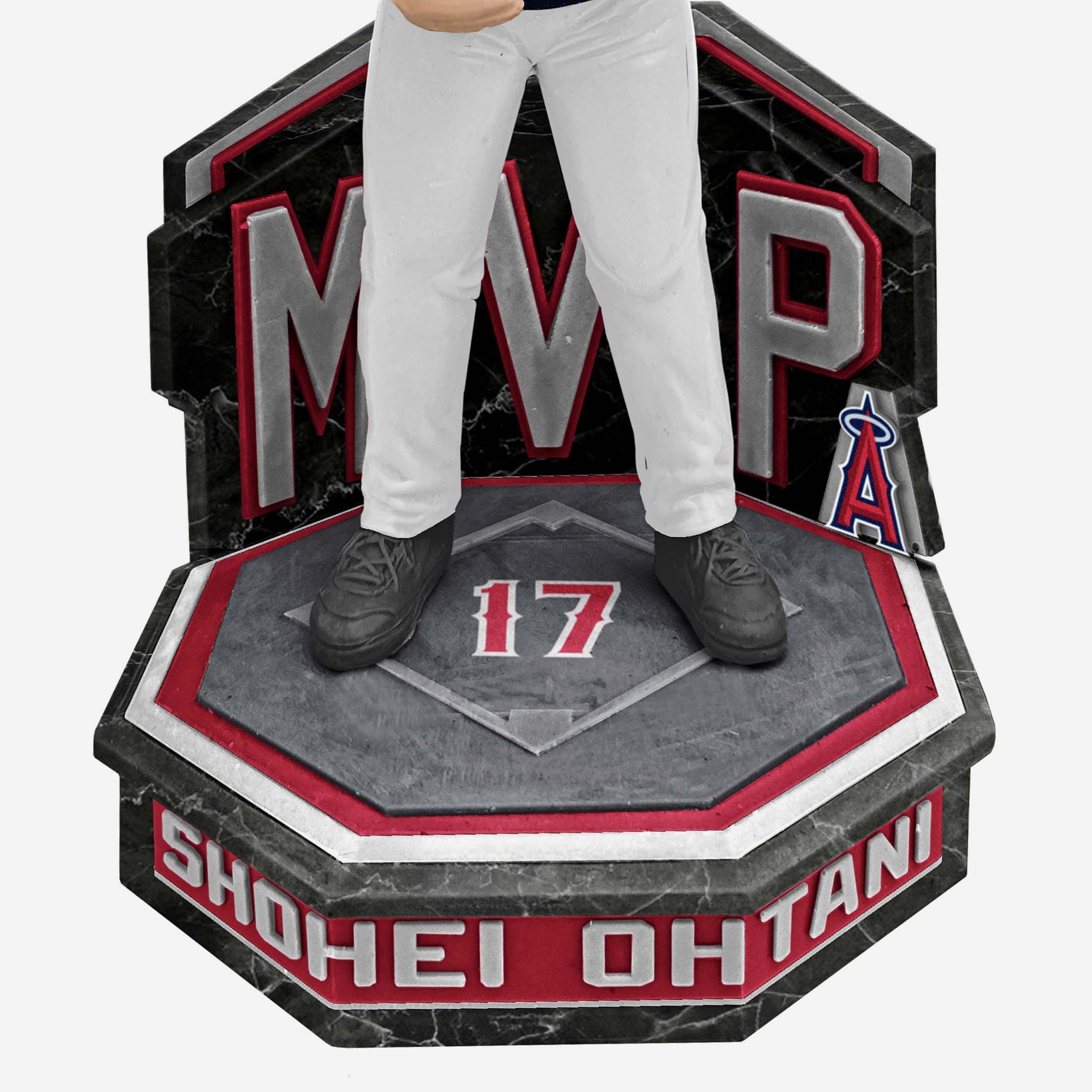 - Portrays Ohtani wearing his gameday uniform and holding his American League MVP plaque, because a season like that deserves some hardware