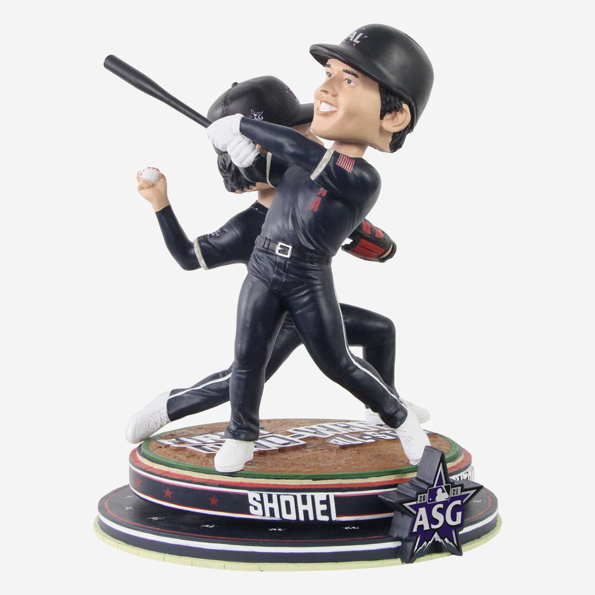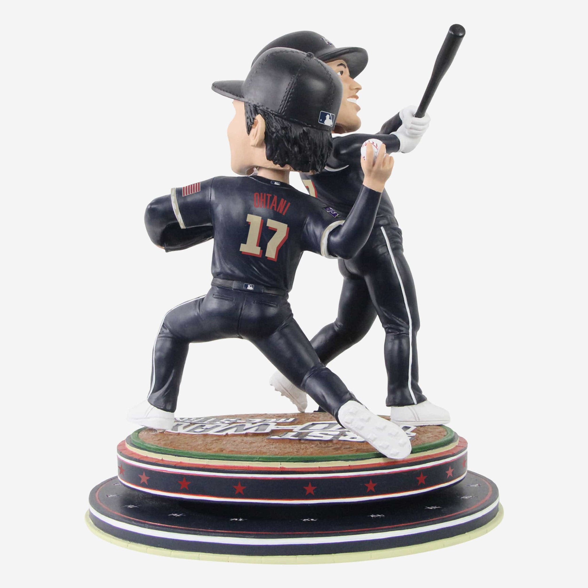 - Portrays two figures of Ohtani wearing his blue All-Star gameday uniform, one pitching and one hitting for a double dose of awesomeness