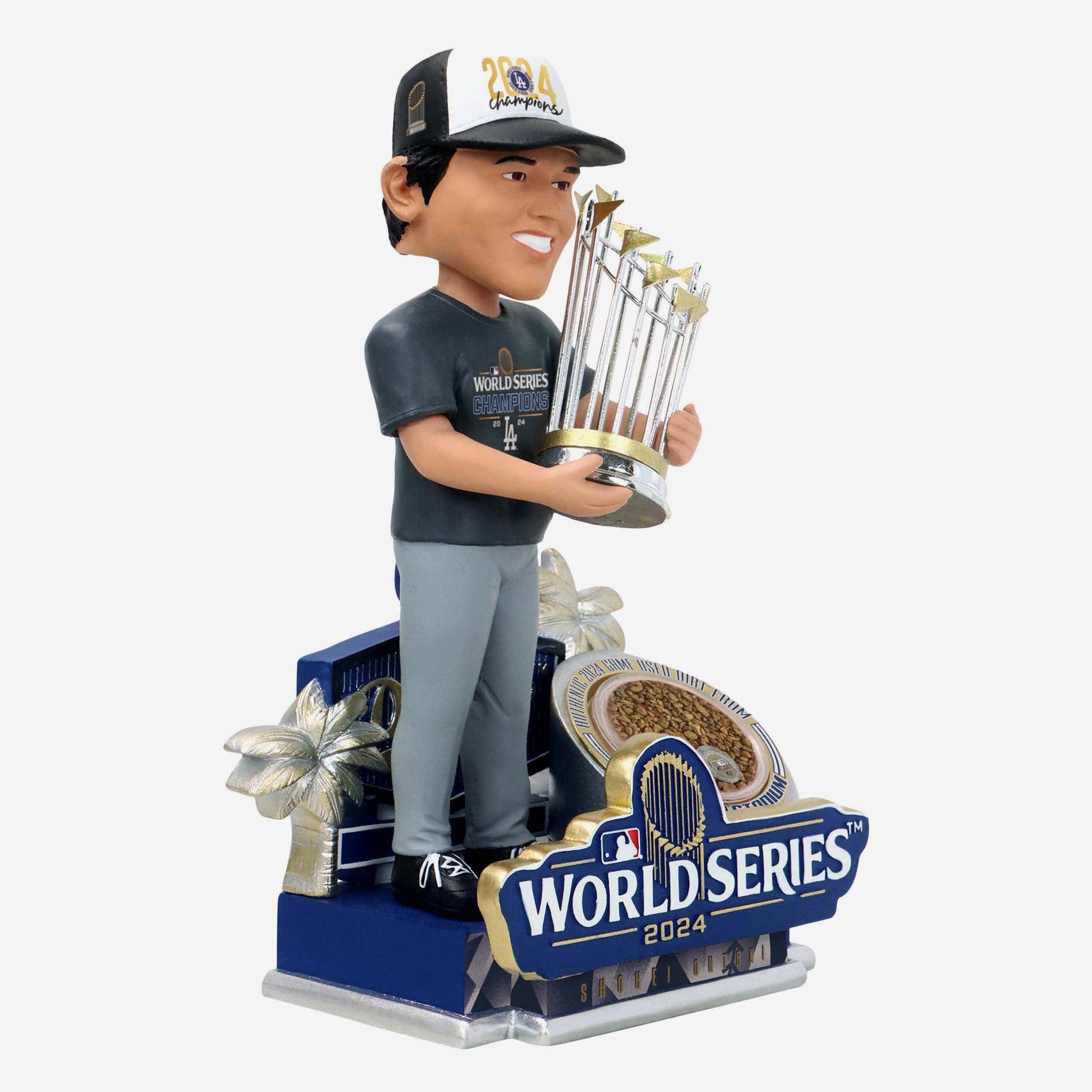 The Dodgers' 2024 World Series championship was legendary, and now you can own a piece of the diamond where it all happened! Hold history in your hands with this Shohei Ohtani Los Angeles Dodgers 2024 World Series Champions Authentic Dirt Bobblehead, featuring real authenticated dirt from the 2024 World Series.