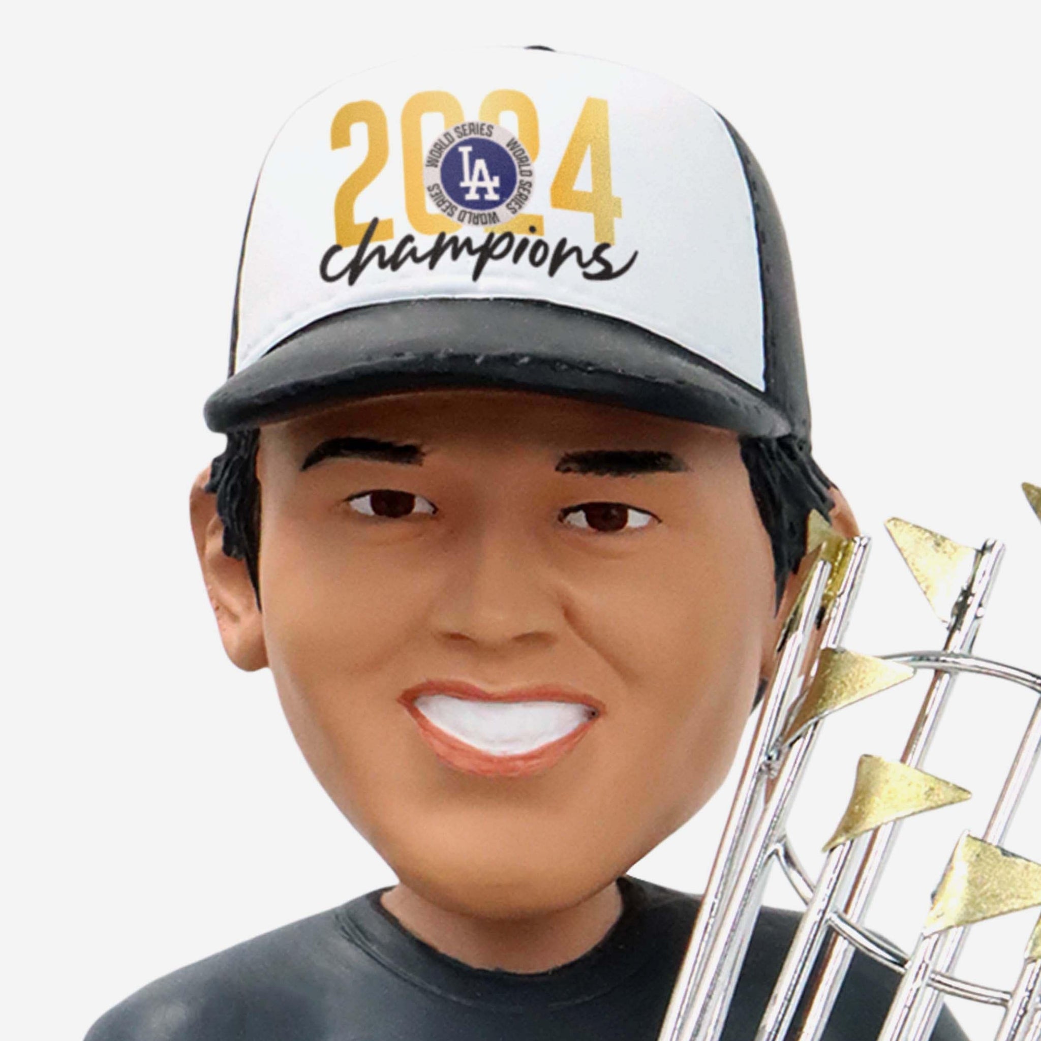 - Portrays Ohtani wearing his World Series celebration outfit and holding the 2024 World Series Trophy so you can showcase the hardware in your fancave