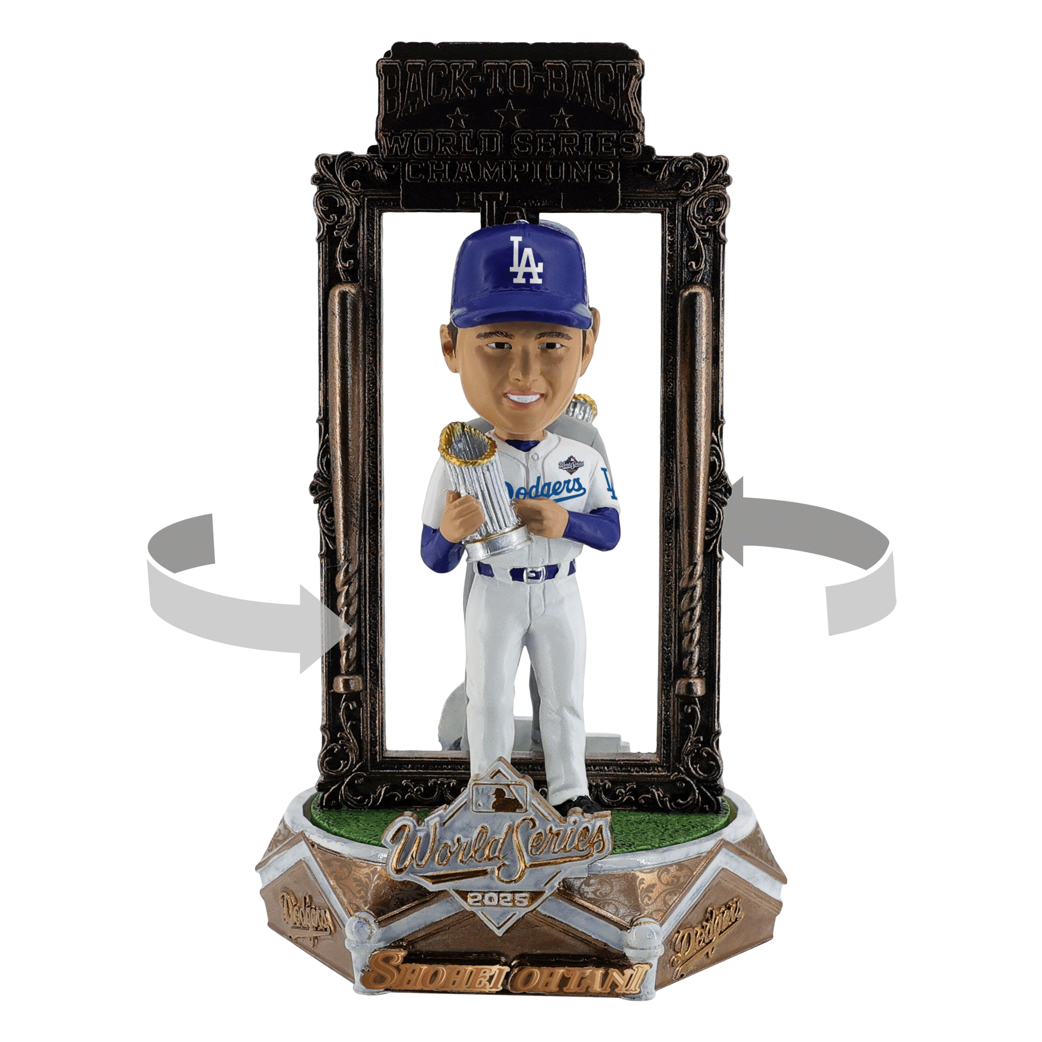 Winning once is special. Going back-to-back? That’s legendary. Celebrate Los Angeles’ championship dominance with this Shohei Ohtani Los Angeles Dodgers 2025 World Series Back to Back Champions Dual Spinner Bobblehead.