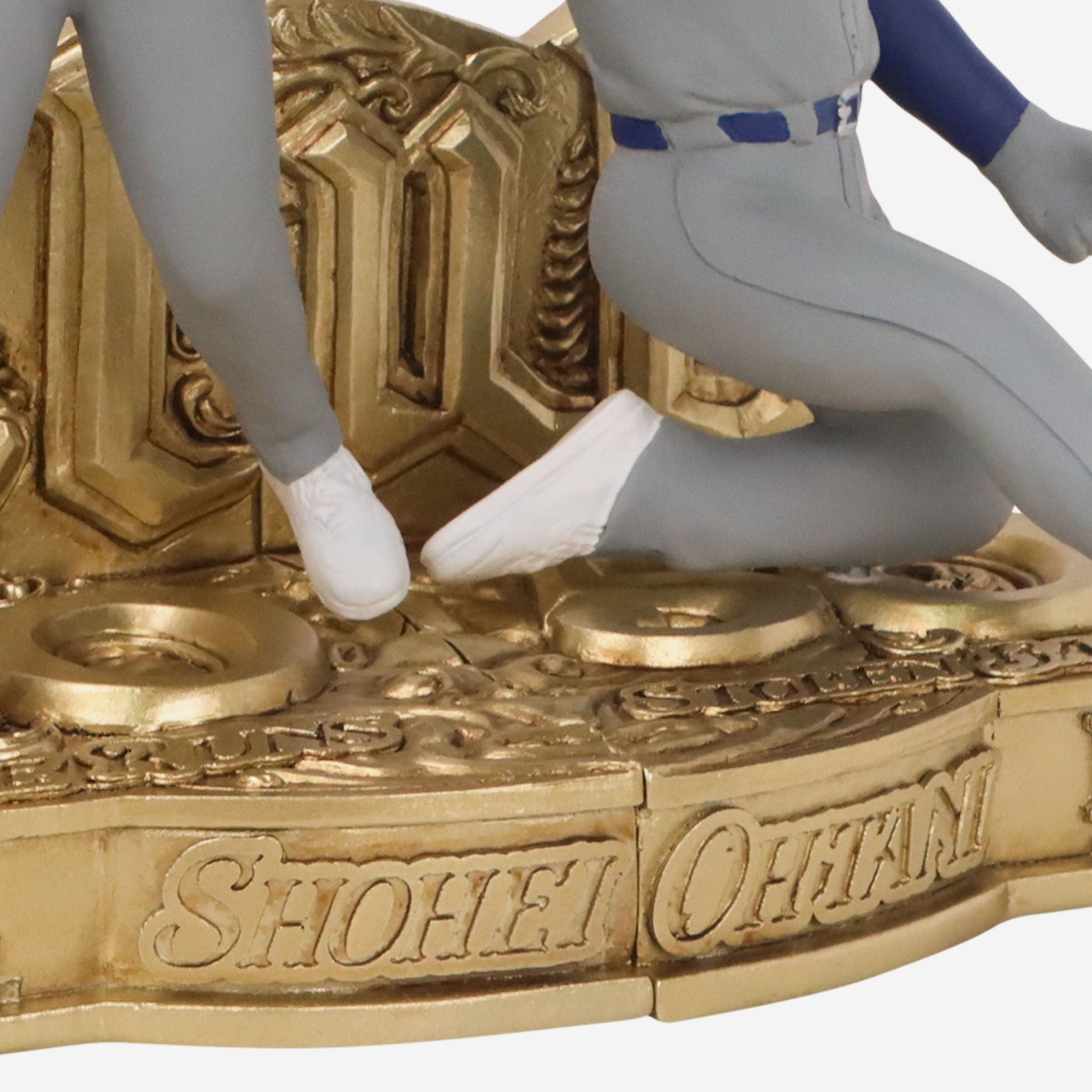• Portrays two figures of Ohtani wearing his gameday uniform in hitting and sliding action poses, ready to make the play of the game and the season